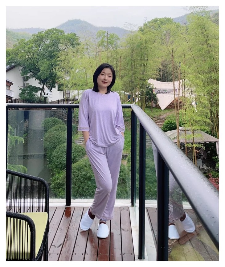 这么多套穿下来,我对这款的样式是感觉到比较惊喜的,它的舒适度很好,面料很垂顺柔软,虽然相对来说比其他款厚一点,但是整体是七分短袖+七分裤的长度,所以穿起来还是很不错的~适合体寒一点的姐妹夏天去穿。