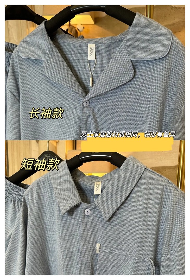 男士家居服这次准备的是长短袖两款,和上面介绍到的这款面料材质都是一致的,款式🈶一些区别~