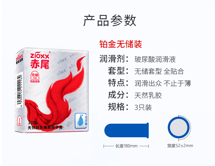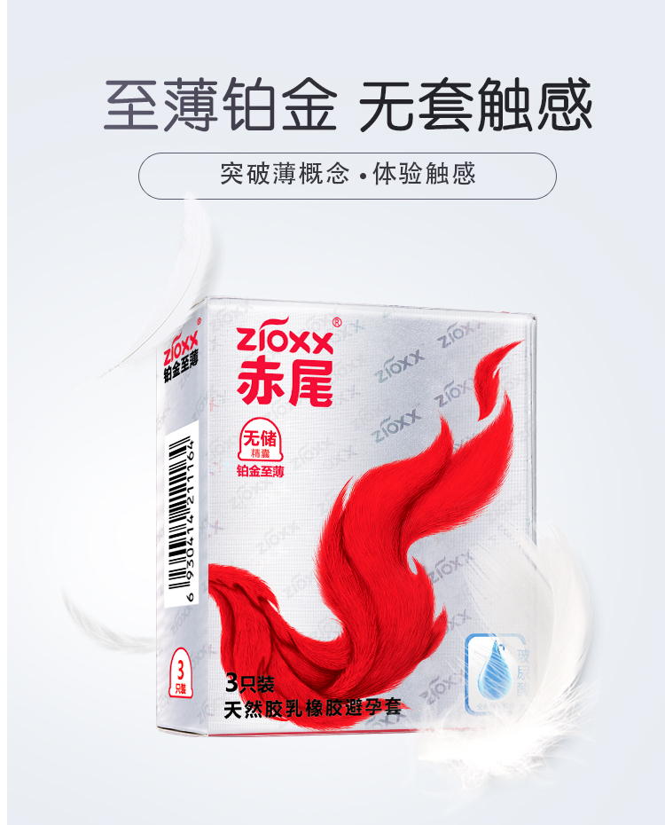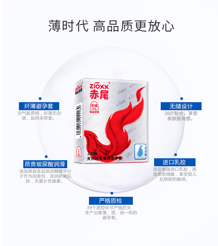 赤尾 zioxx 铂金至薄3只装 无储精囊设计 玻尿酸润滑安全套 男女用套套 成人计生用品