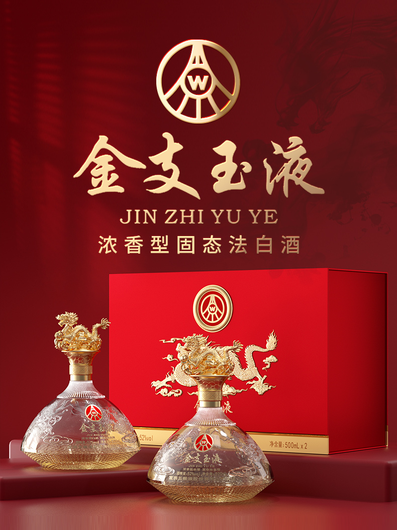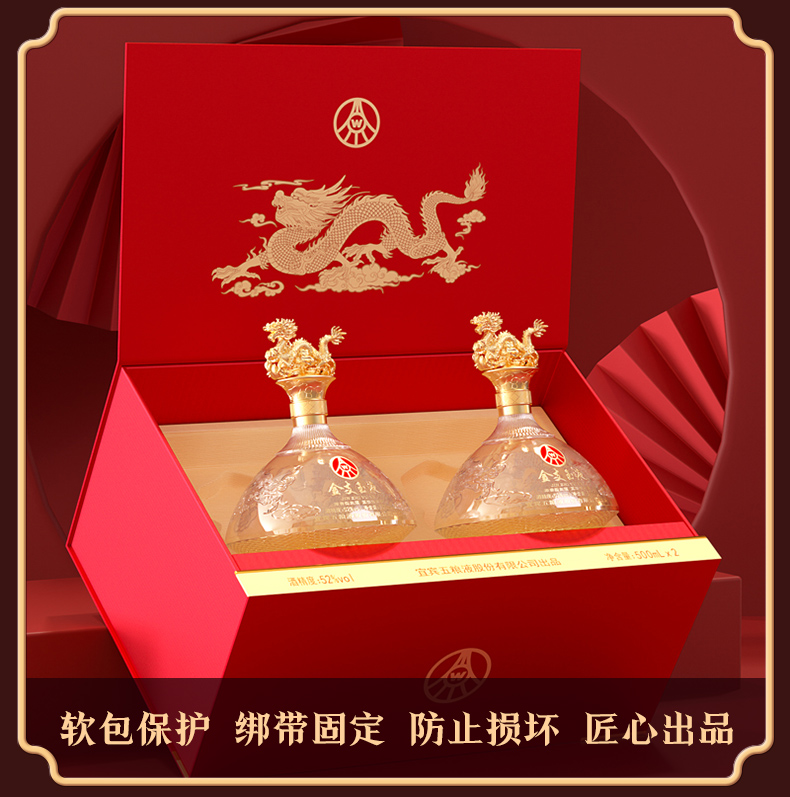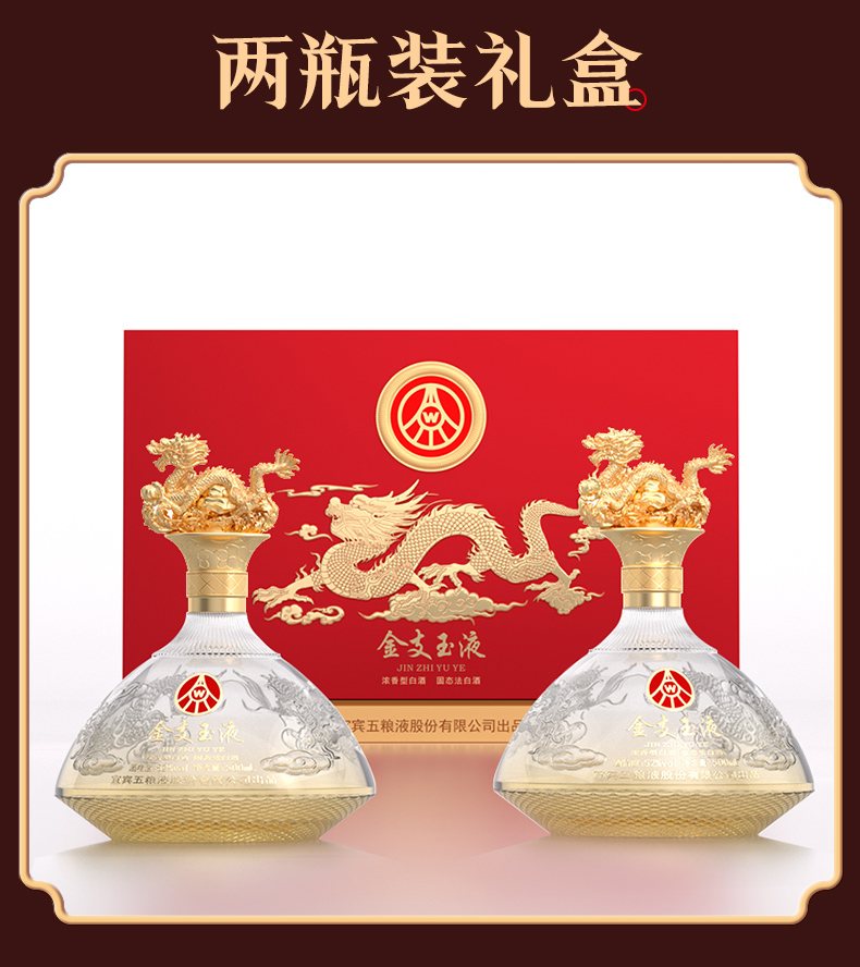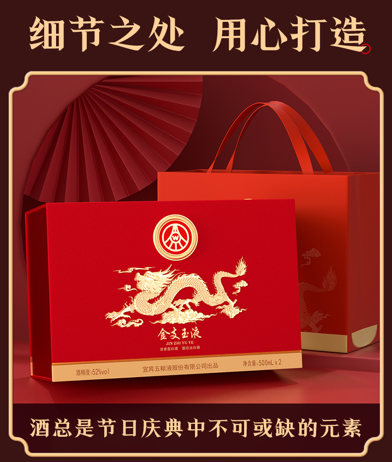 疯抢中!!过节送礼佳品❗宜宾五粮液股份出品 浓香型固态法白酒 金支玉液双支礼盒 52度500ml*2瓶礼盒装