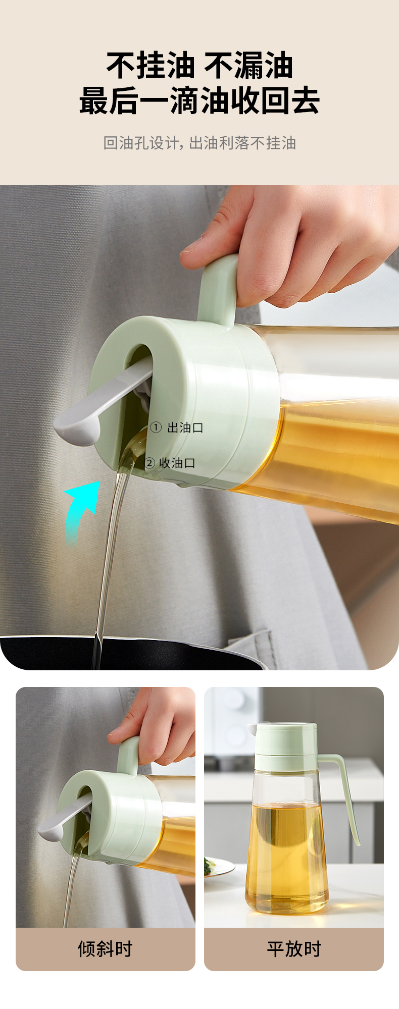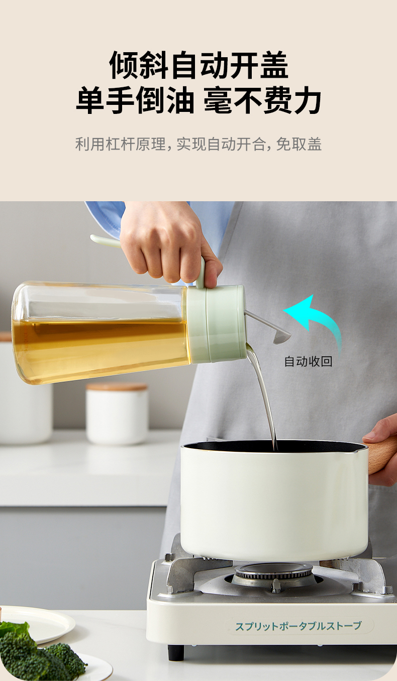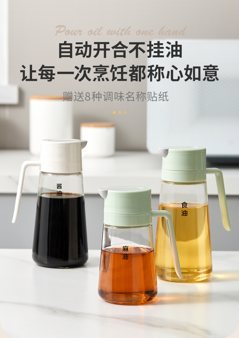自动开合玻璃油壶厨房调味品收纳罐不挂油储油罐