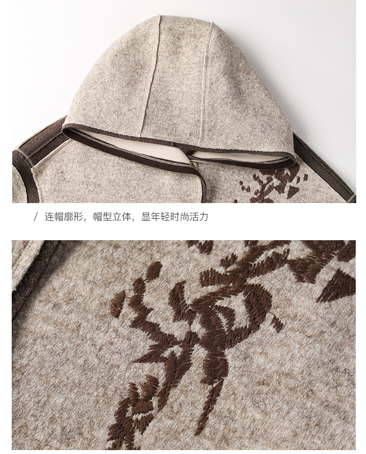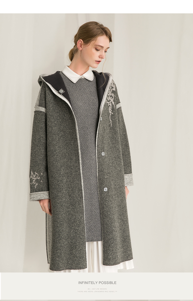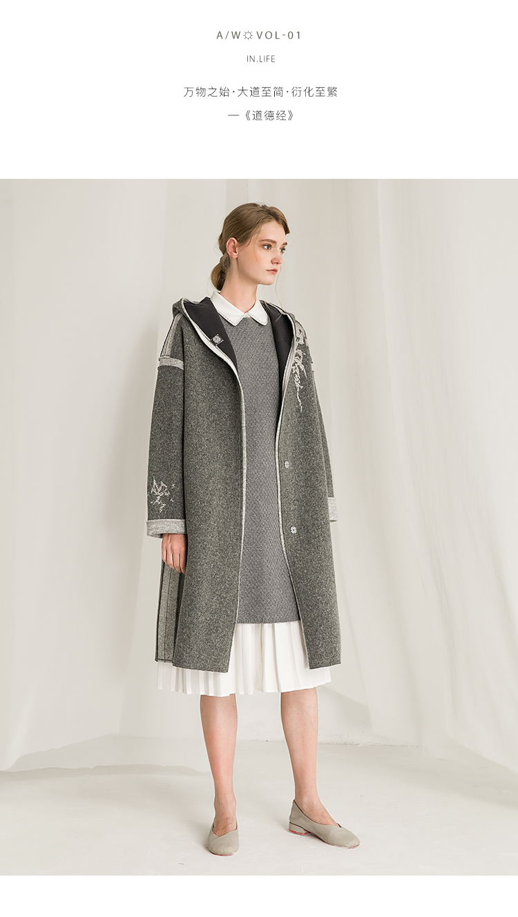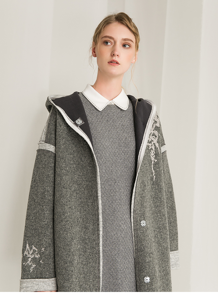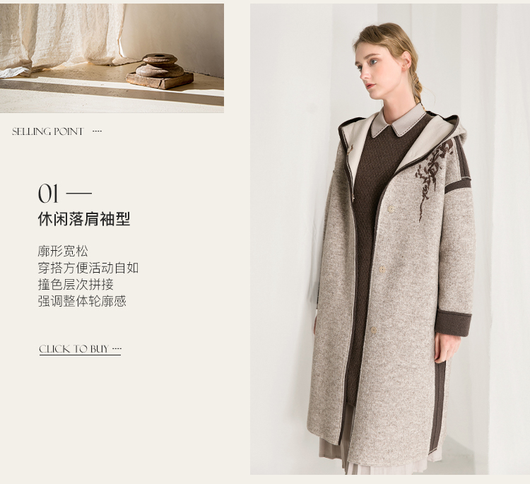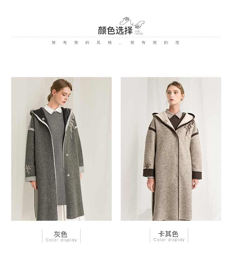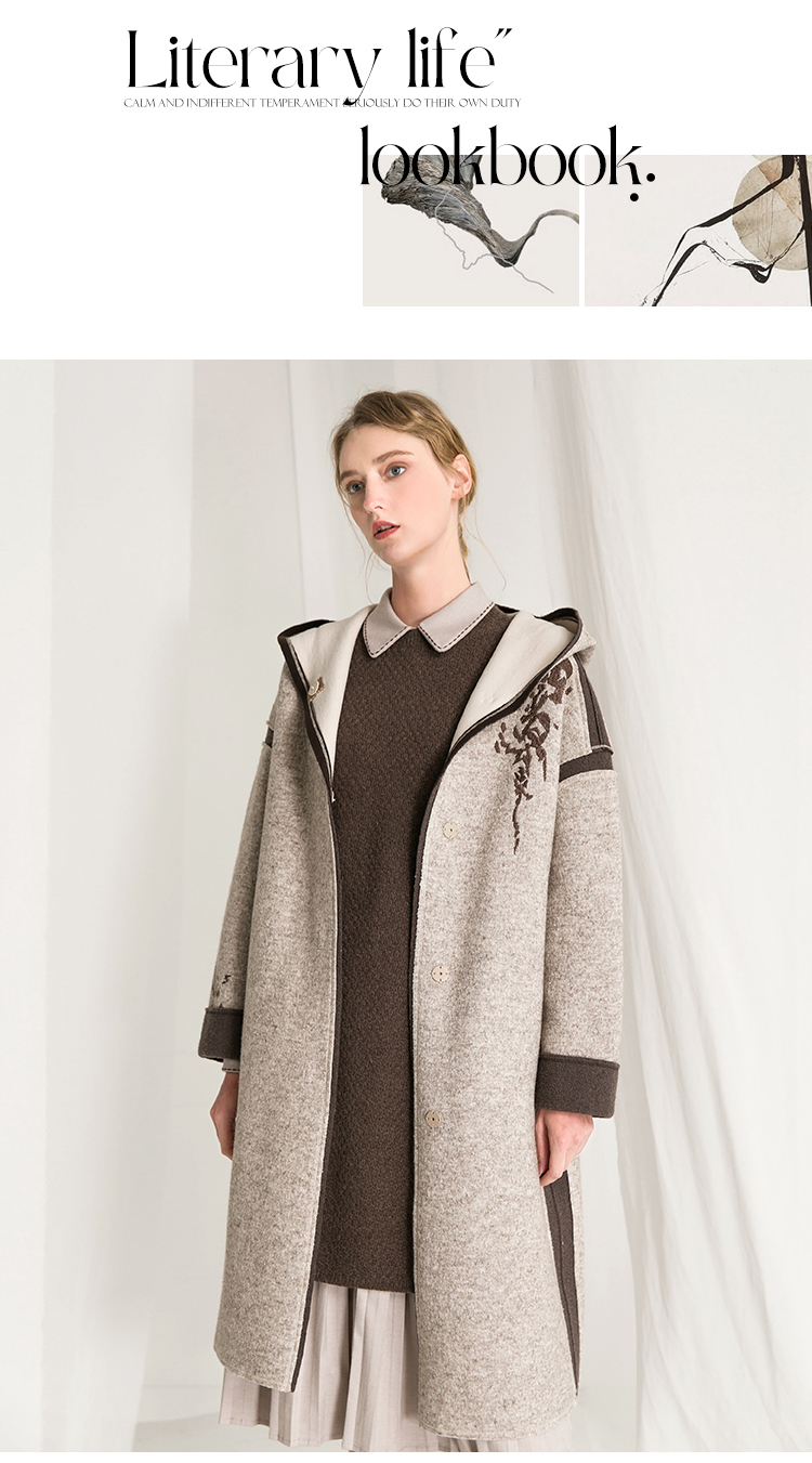 Famecoco范可儿毛呢大衣秋冬款连帽长款外套F218AC001
