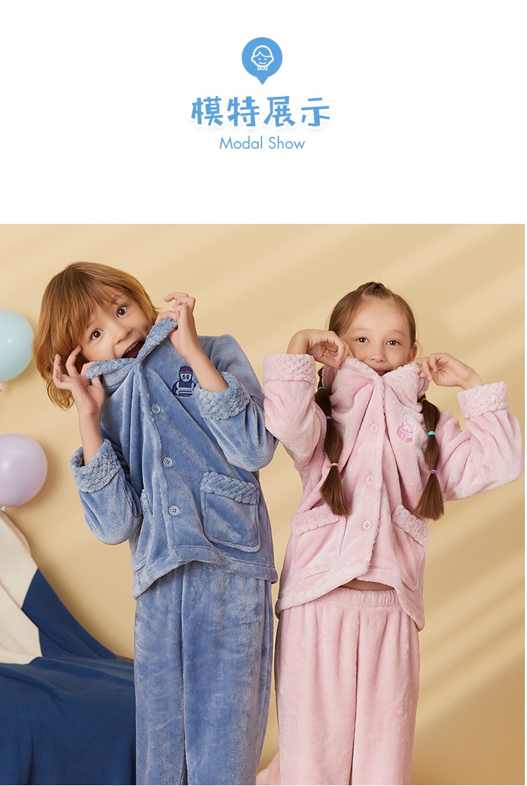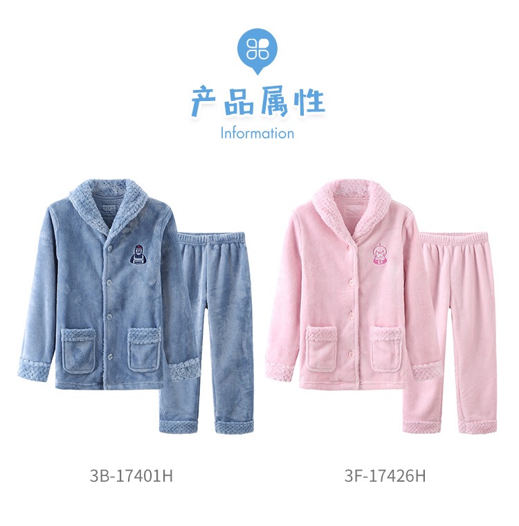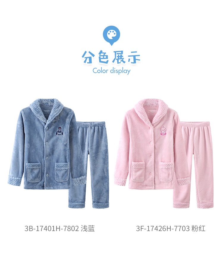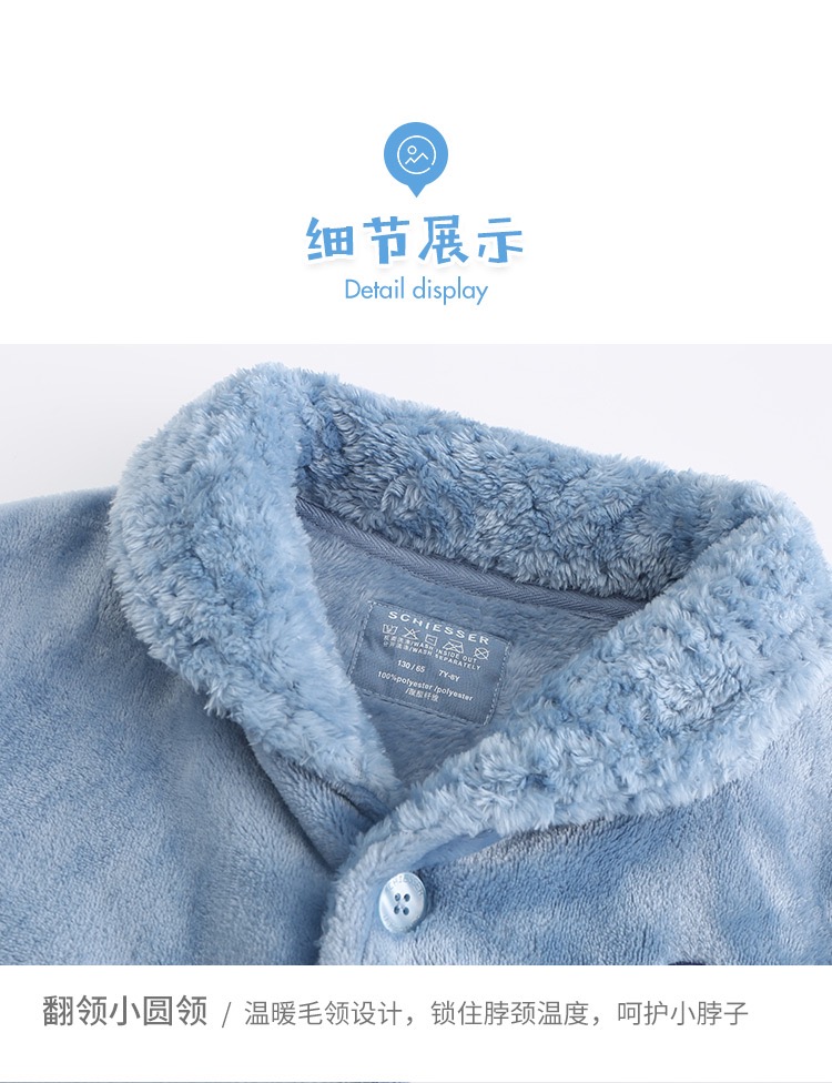 【珊瑚绒】SCHIESSER/舒雅童装男童珊瑚绒厚款毛绒翻领睡衣家居服套装3B/17401H