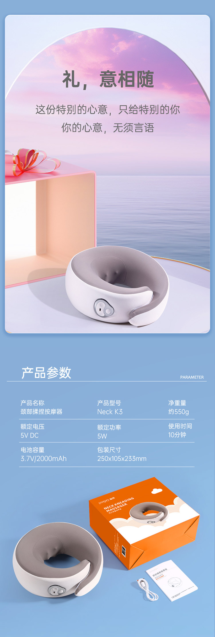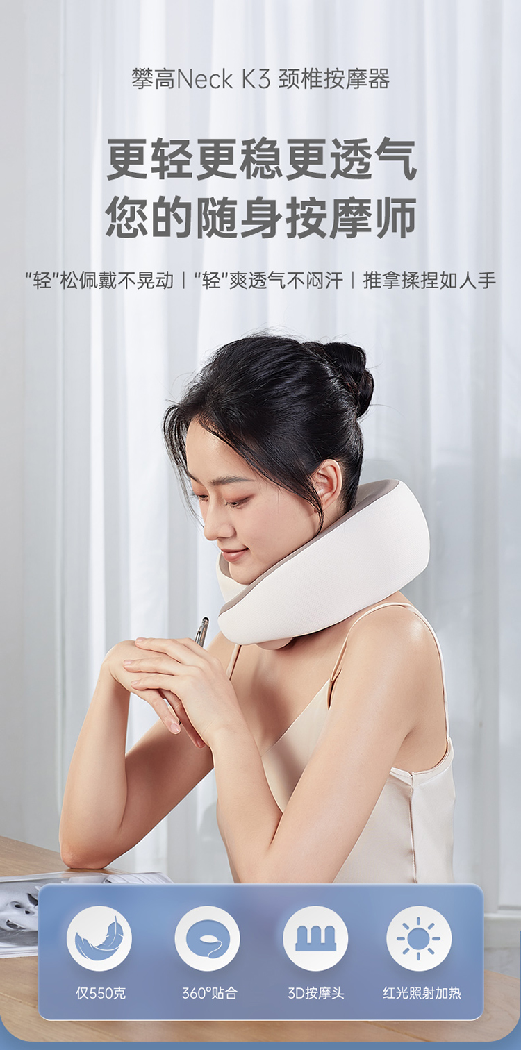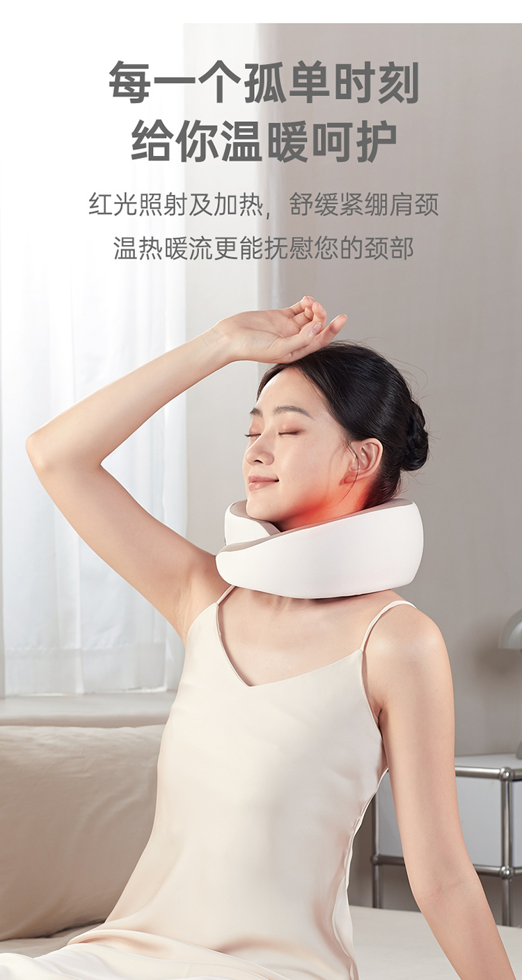 花粉专享价【颈部按摩仪】内长50厘米,需紧围一圈,够长!颈椎、斜方肌按摩,U型颈托肩颈按摩仪,很轻很稳很透气,推拿揉捏如人手,红光照射、热敷按摩、360°贴合,长短可调节、自动定时,快递常规三通一达