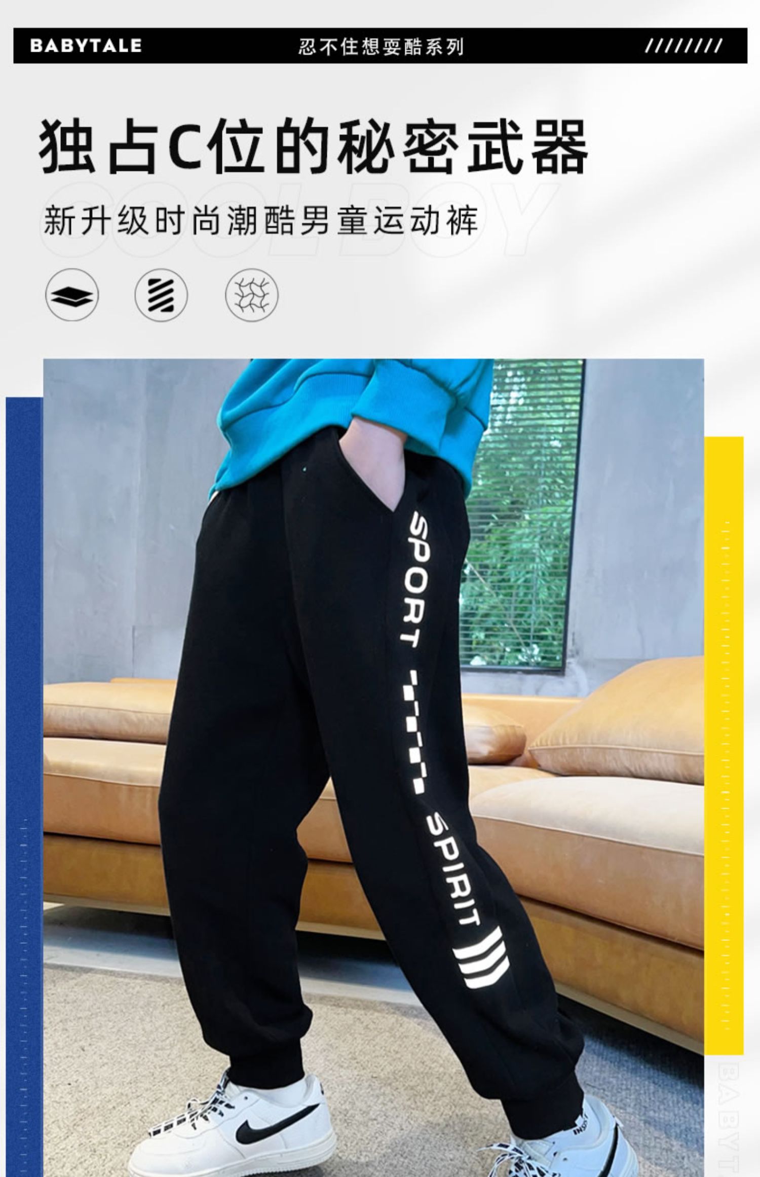 A69男童裤子春秋款儿童运动裤新款秋装男孩早秋大童休闲长裤