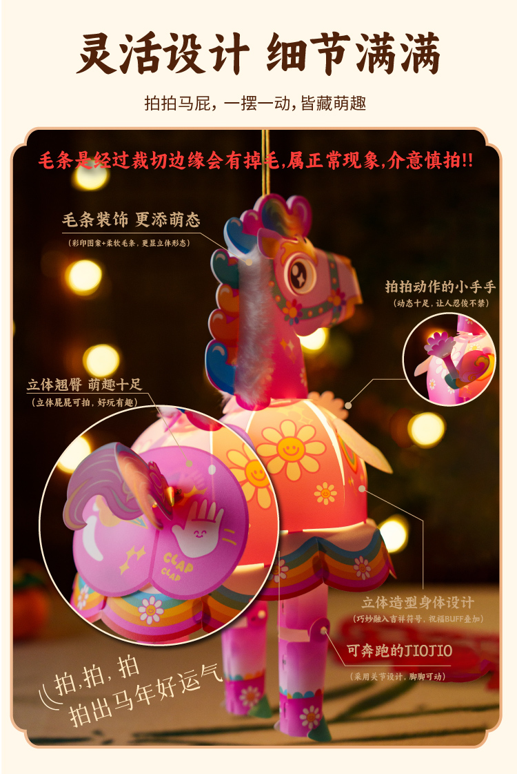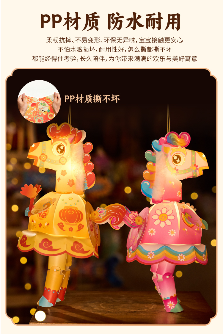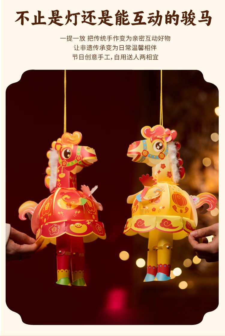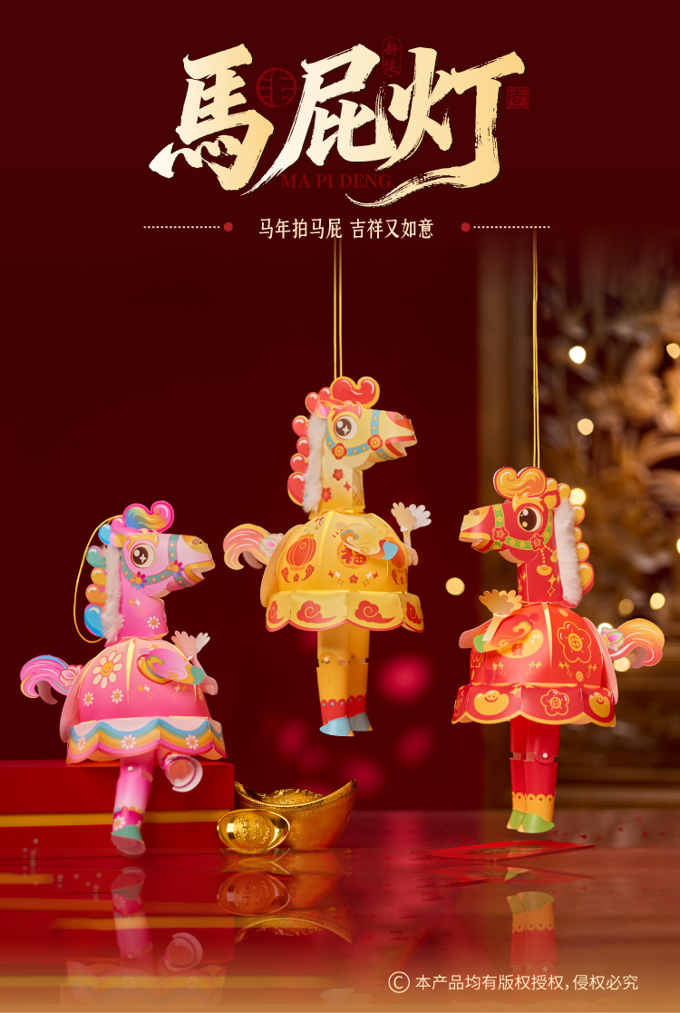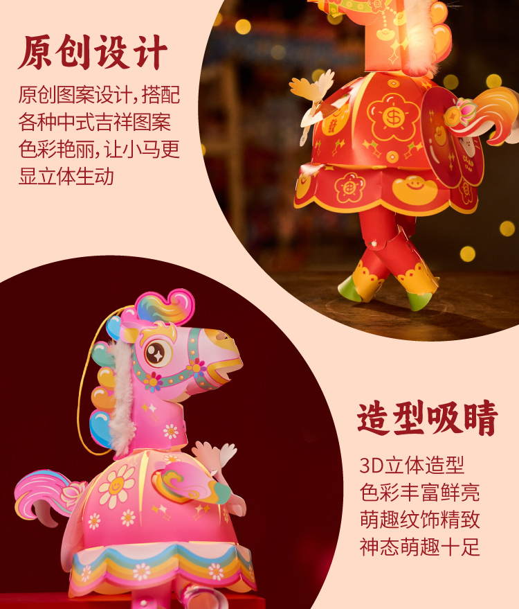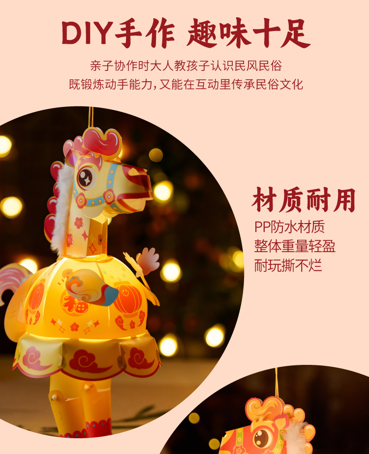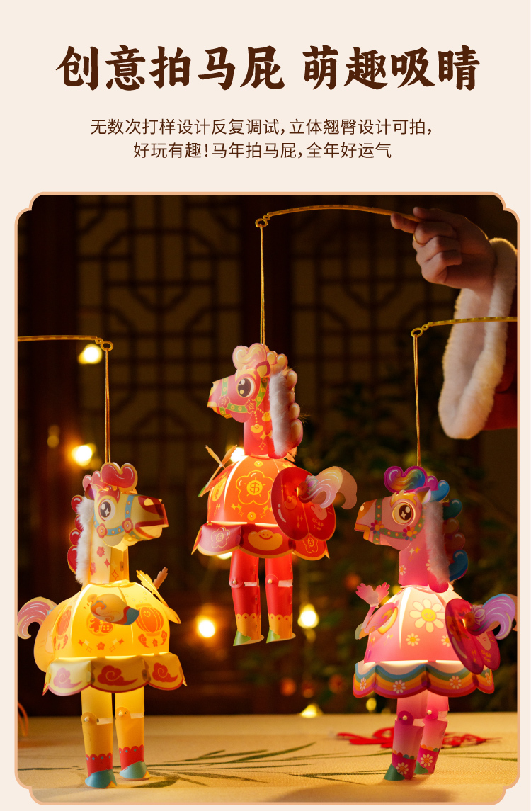 新年春节元宵马年马屁灯手工diy儿童灯笼材料包手提小马花灯装饰