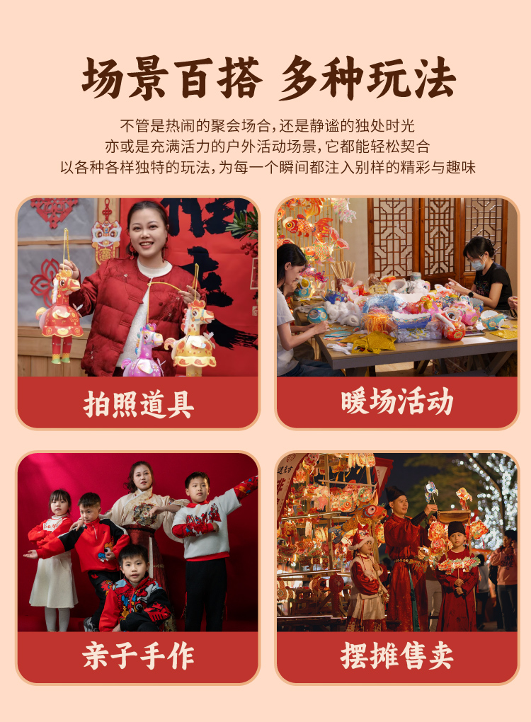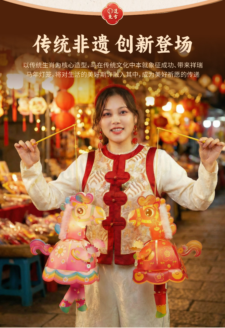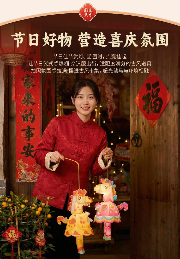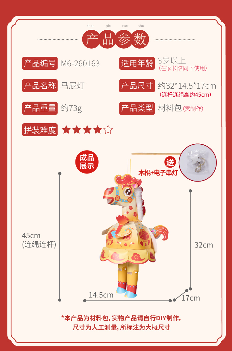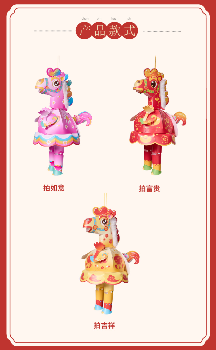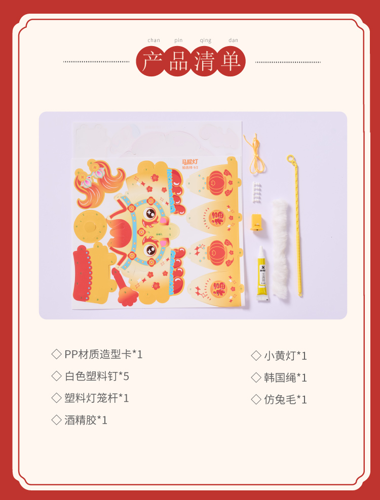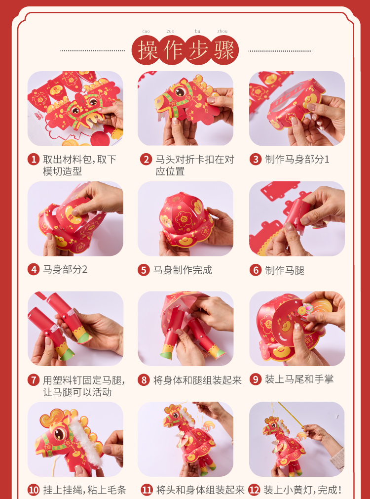 新年春节元宵马年马屁灯手工diy儿童灯笼材料包手提小马花灯装饰