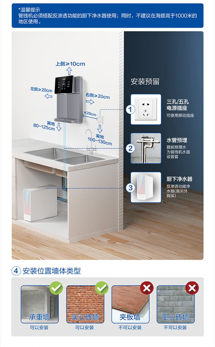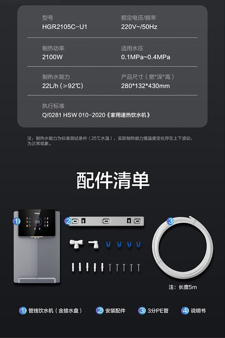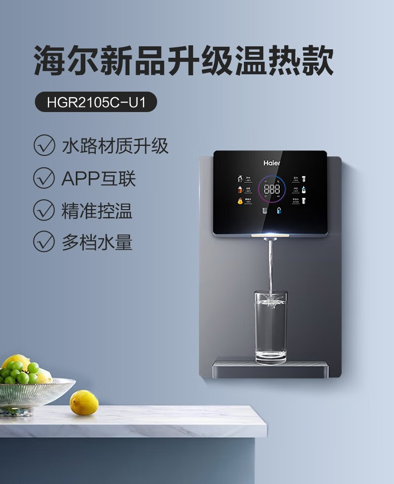 海尔(Haier)家用壁挂式饮水机加热即热直饮机壁挂式可搭配厨下净水器前置过滤器 HGR2105C-U1