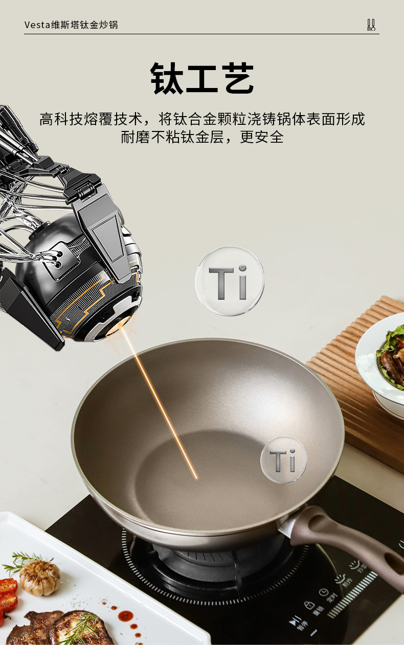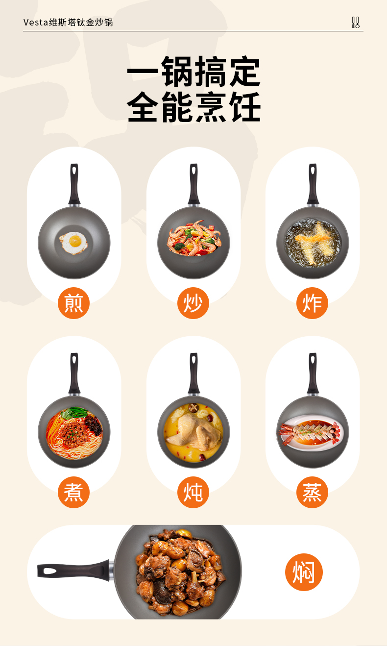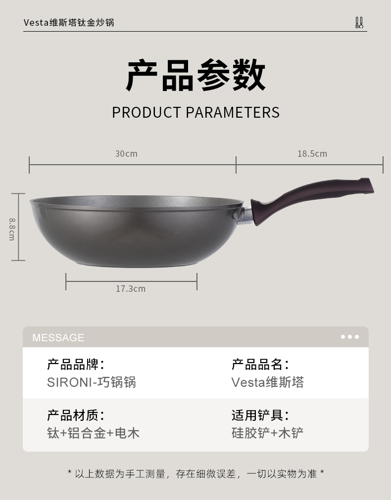 【欧标钛金锅】斯罗尼SIRONI巧锅锅维斯塔钛金炒锅 意大利品牌 耐磨不粘钛金层 不怕刮擦 煎炒炸煮炖蒸焖一锅搞定 30CM