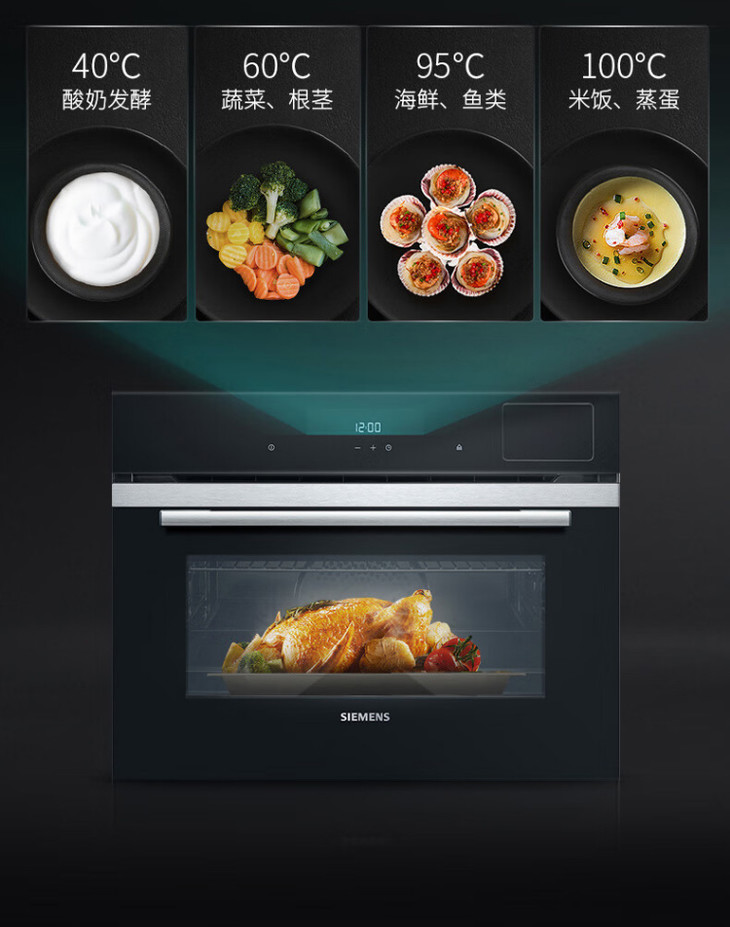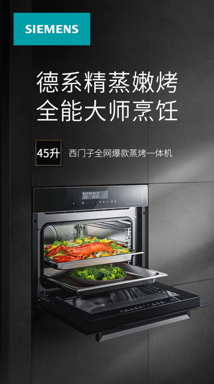 西门子(510336) 蒸箱45L精准控温亚沸锁蒸鲜20种自动烹饪程序家用中式大蒸汽智能蒸箱CD289ABS0W