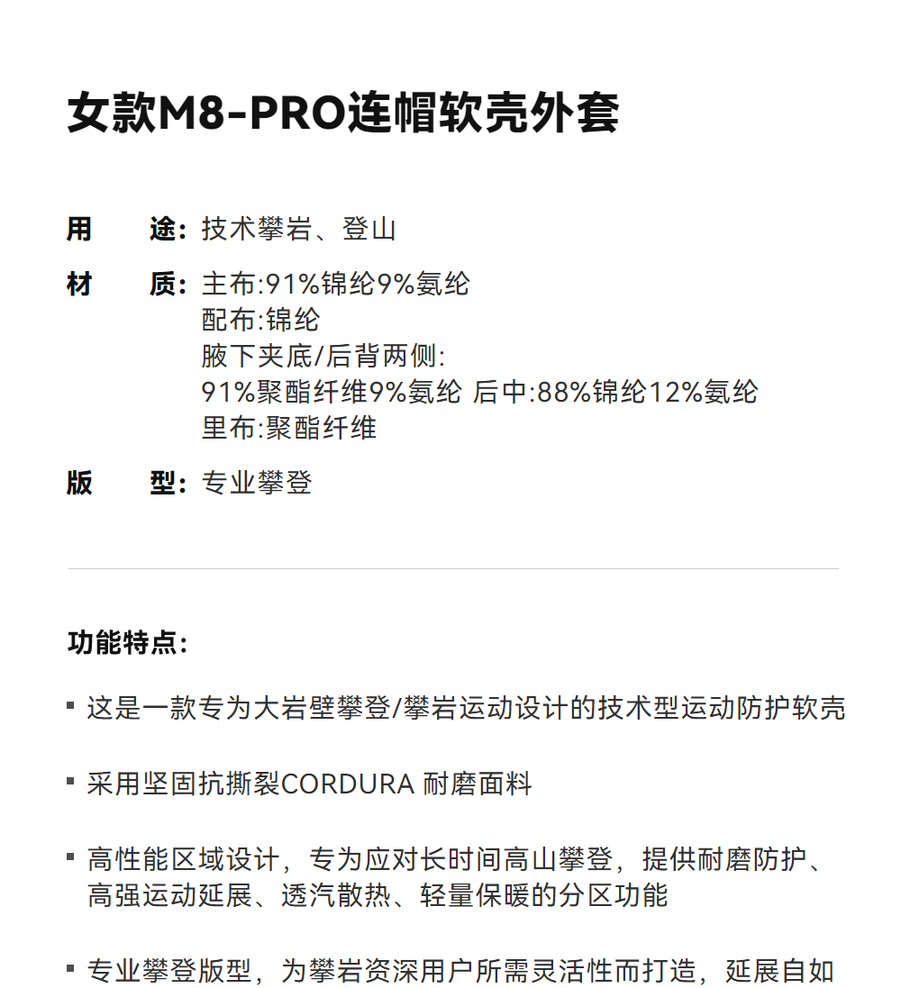 - 致力于推动登山及探险运动发展,为运动员及专业爱好者提供高性能的户外装备。