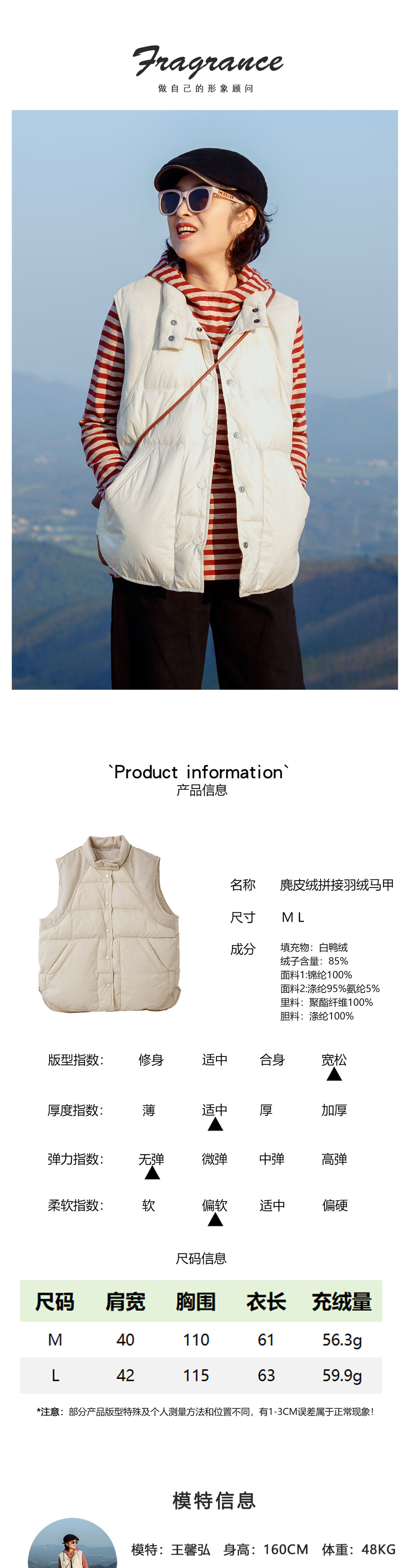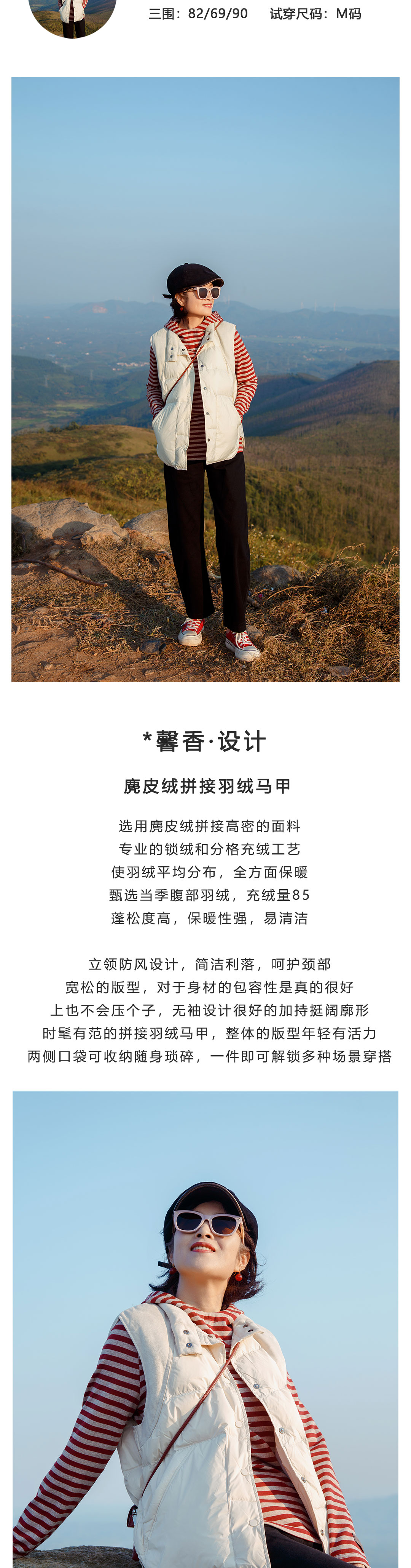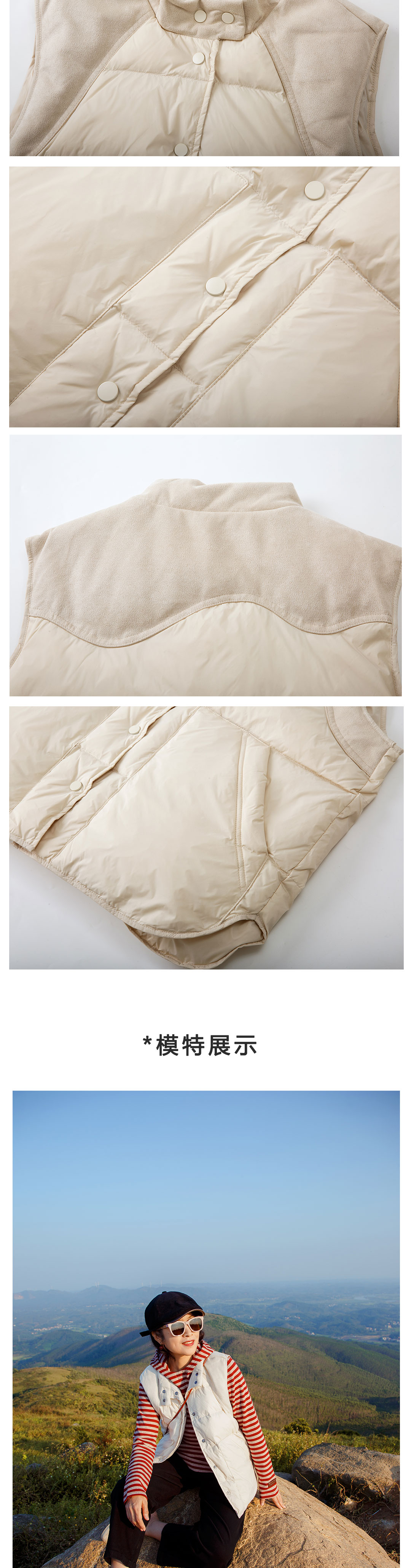 麂皮绒拼接羽绒马甲
