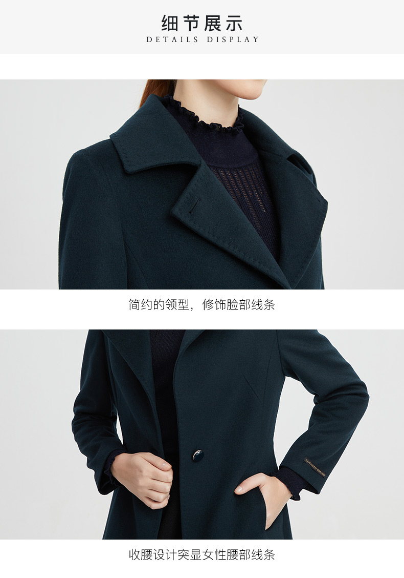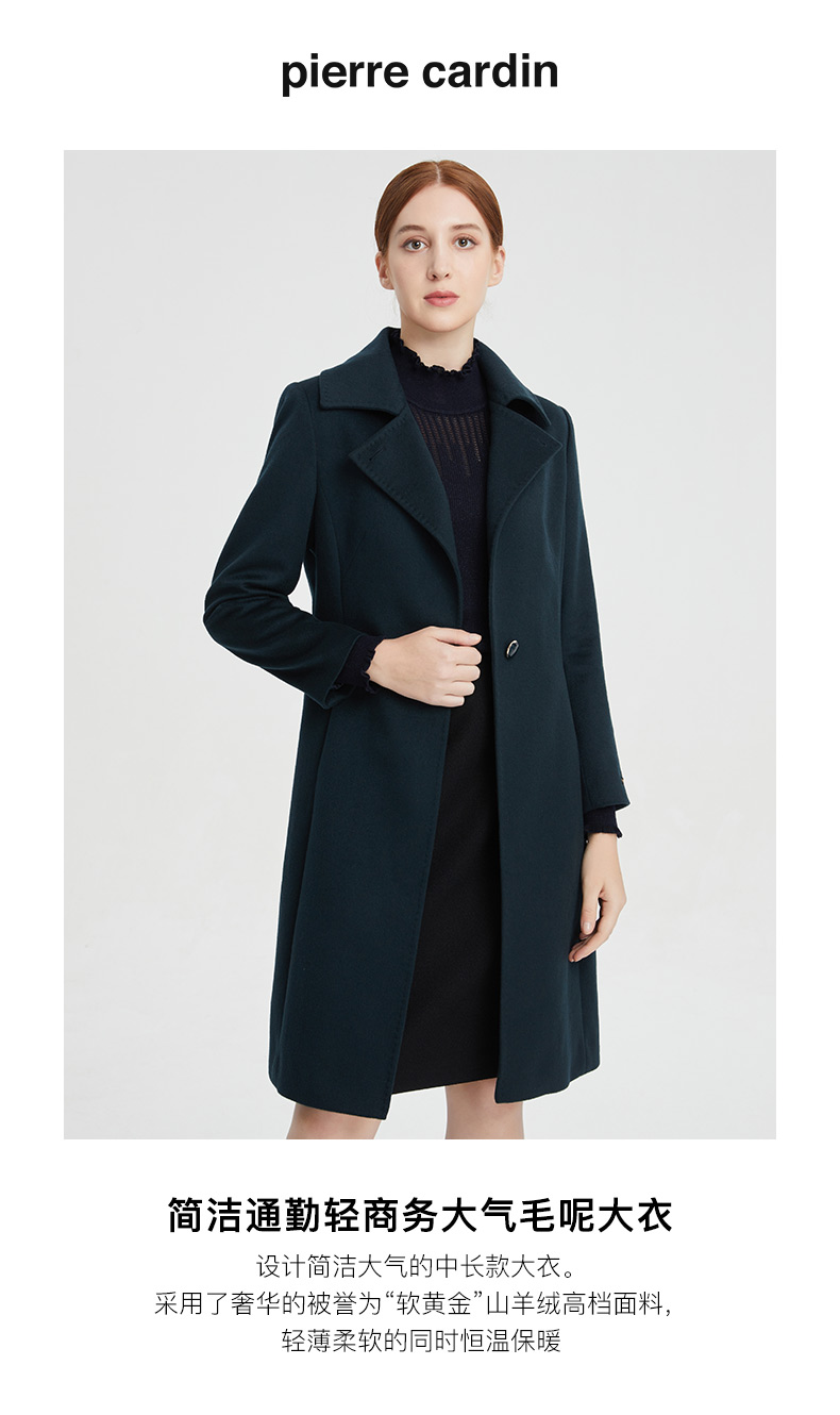 皮尔卡丹女装大衣高级感羊绒中长款商务通勤毛呢外套P1414C1978G2