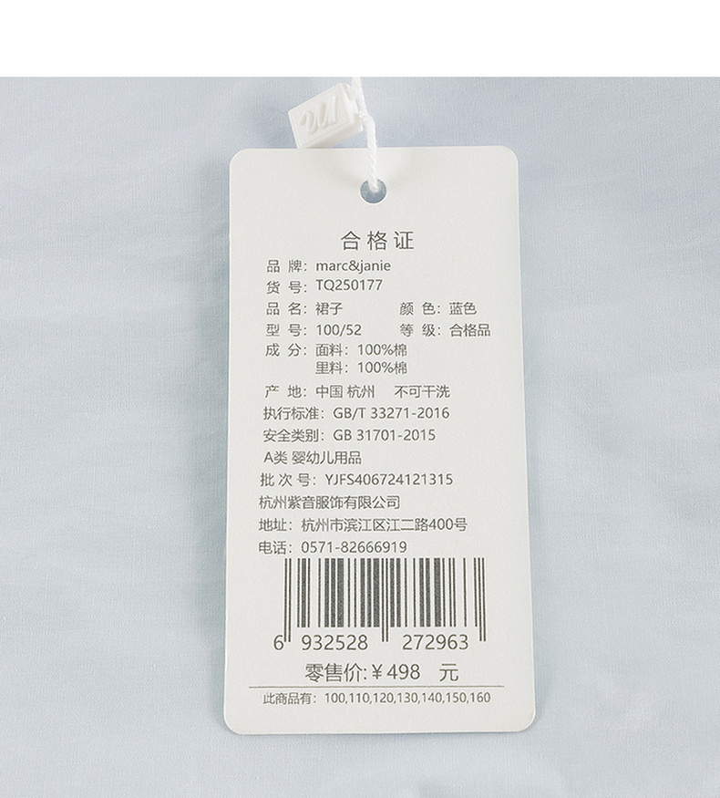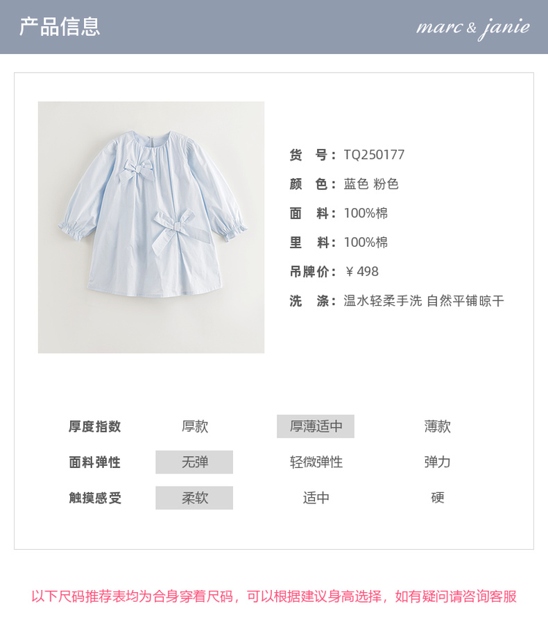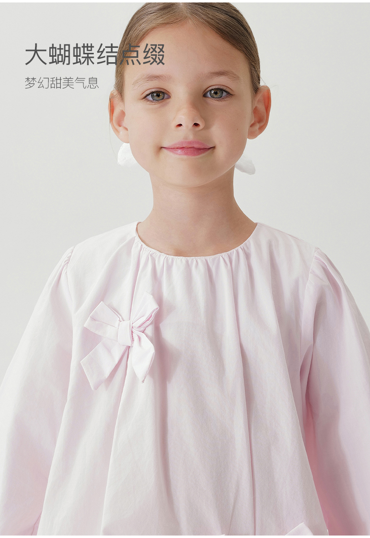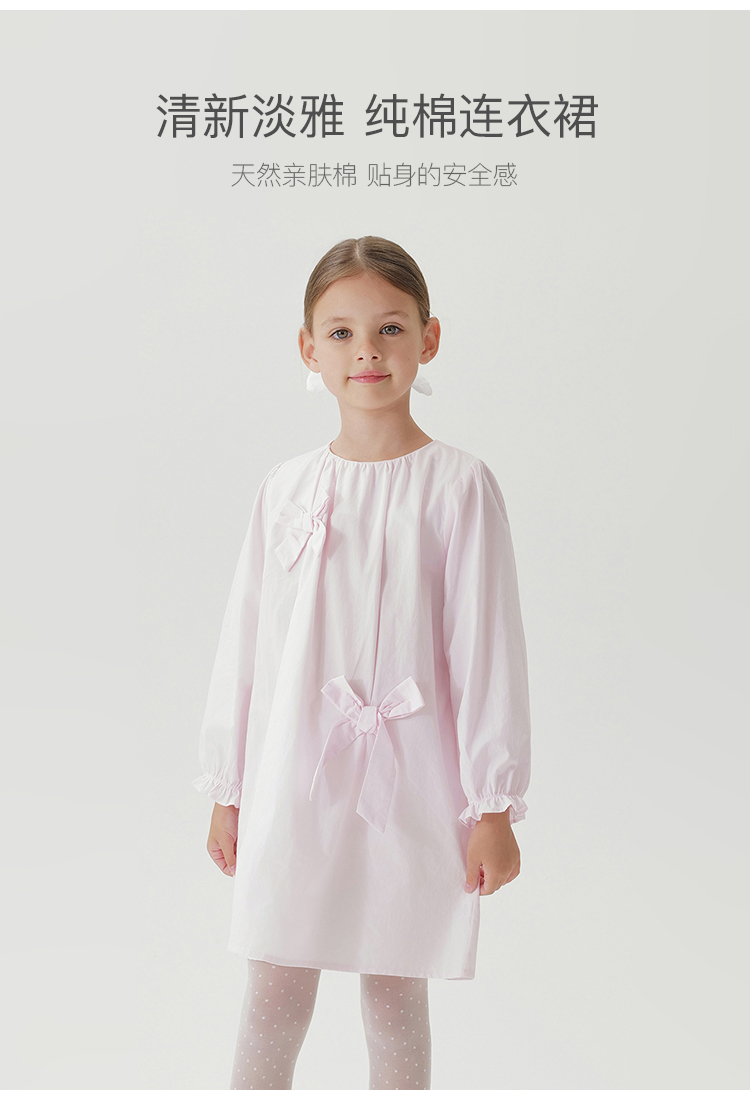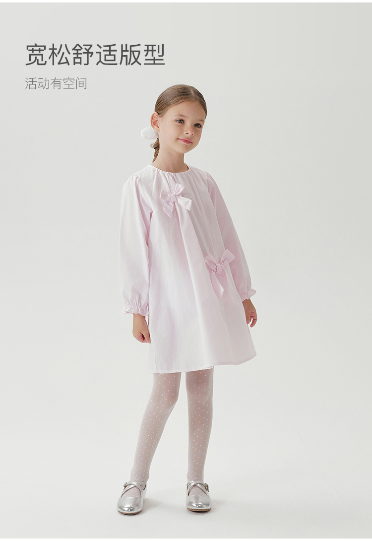 马克珍妮女童淡雅蝴蝶结宽松连衣裙儿童裙子2025年春装新款250177