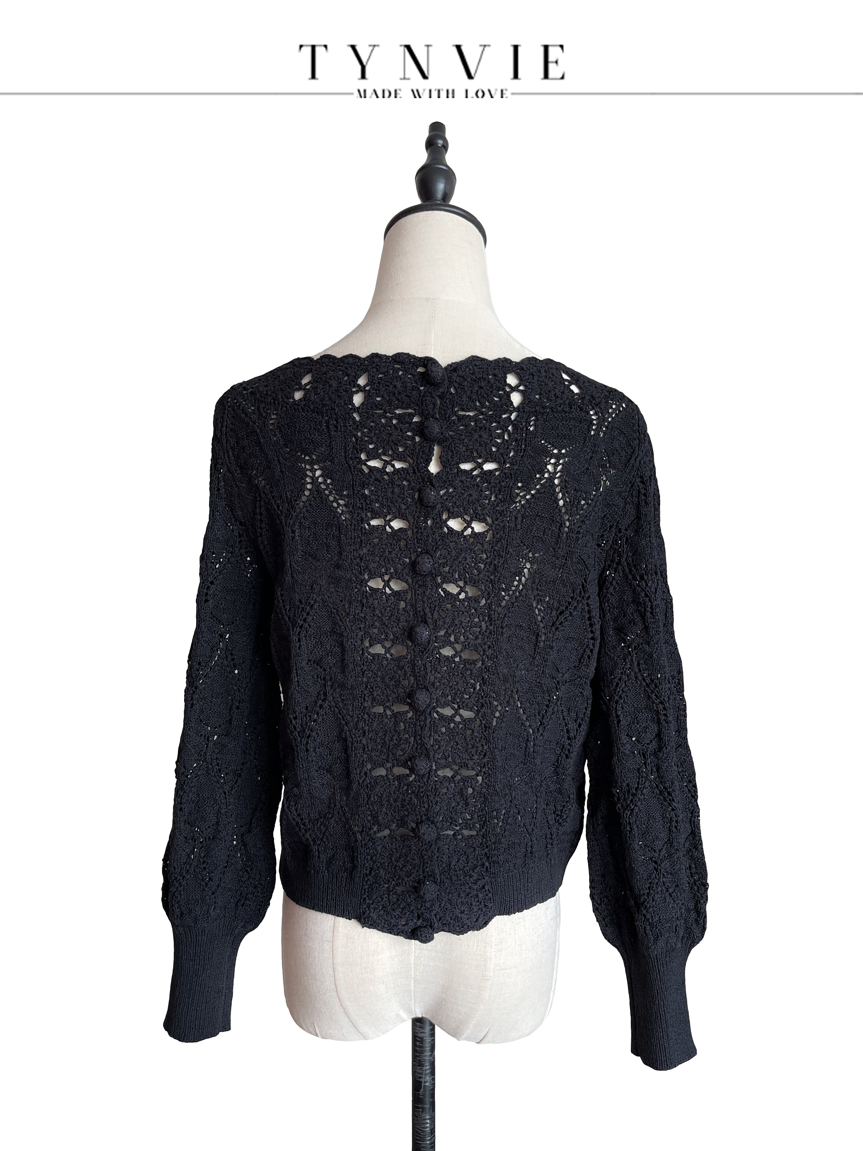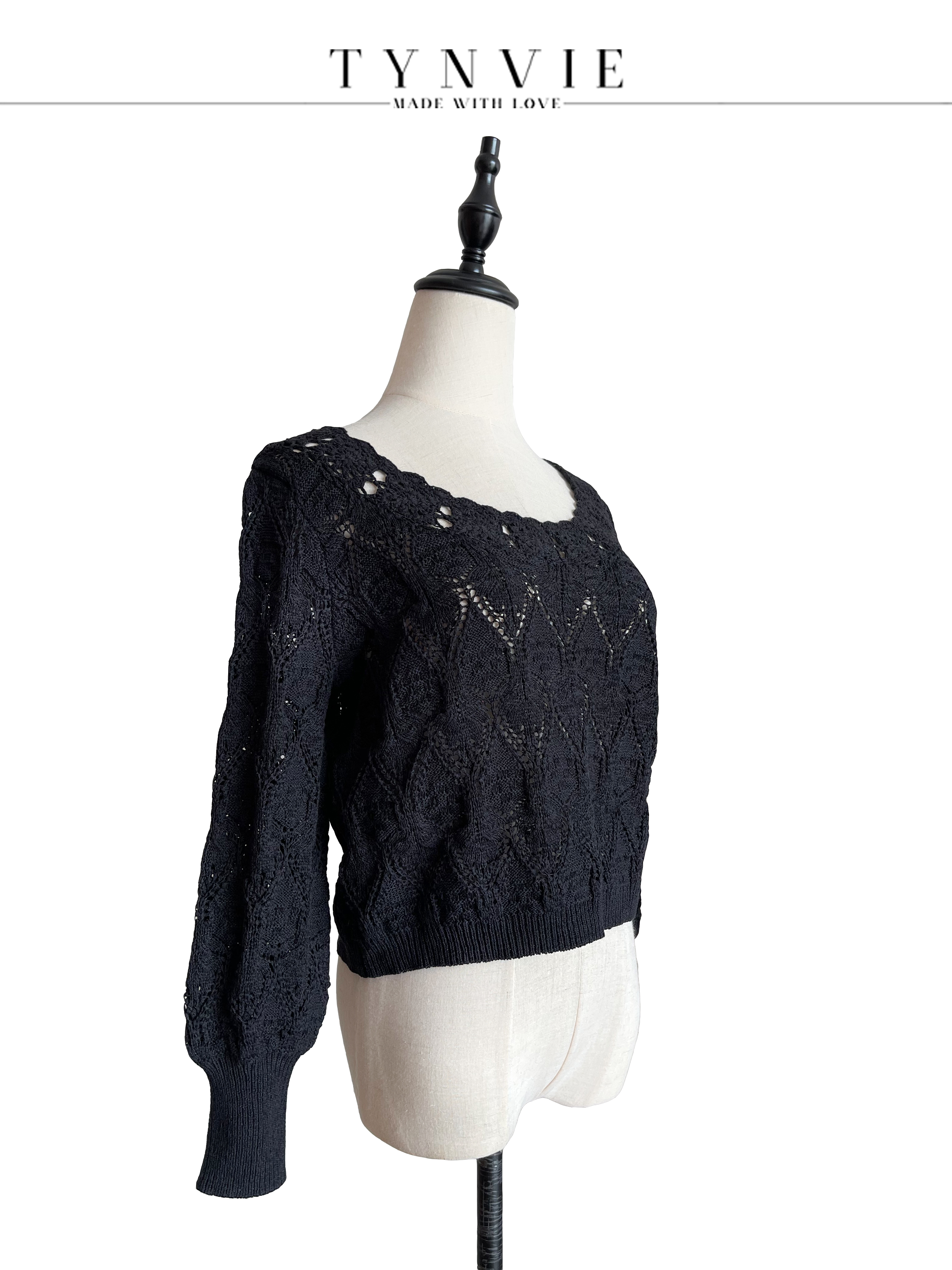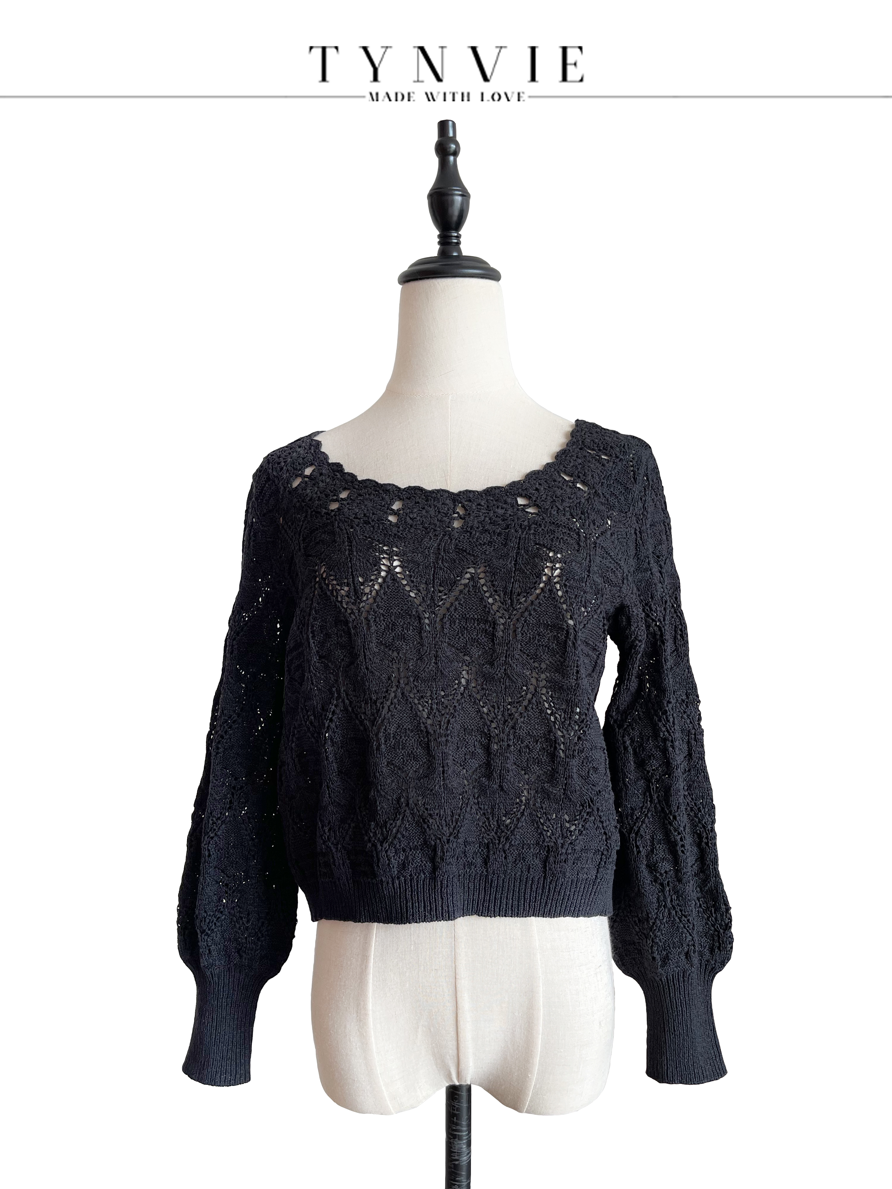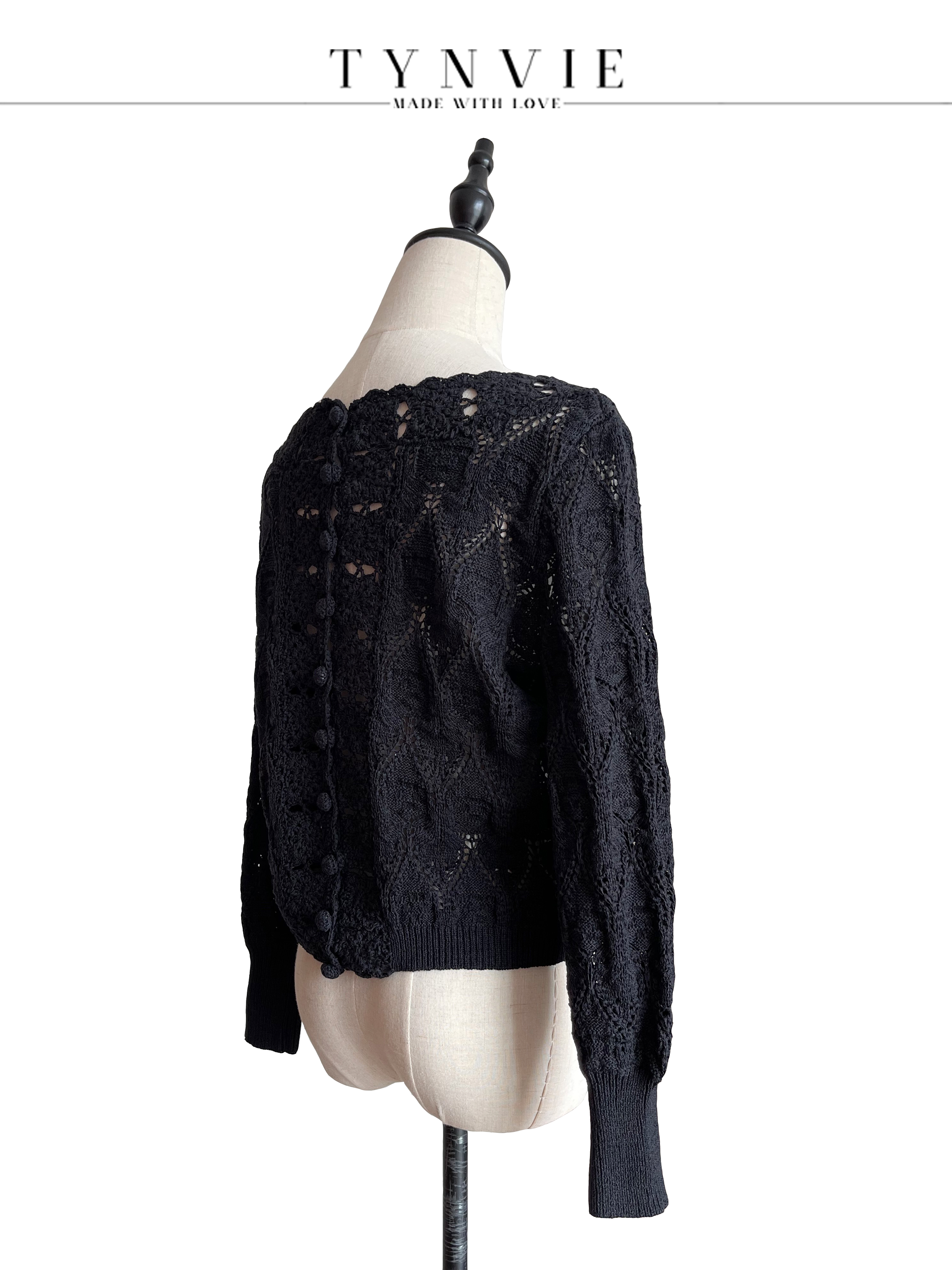 TYNVIE 大圆领两面穿长袖针织上衣-黑色