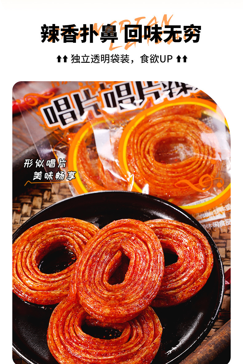 【超值50袋❗唱片辣条】一口秒回童年小卖部,油汁充沛辣而不燥,辣香扑鼻回味无穷,调味面制品休闲解馋办公室零食QQ