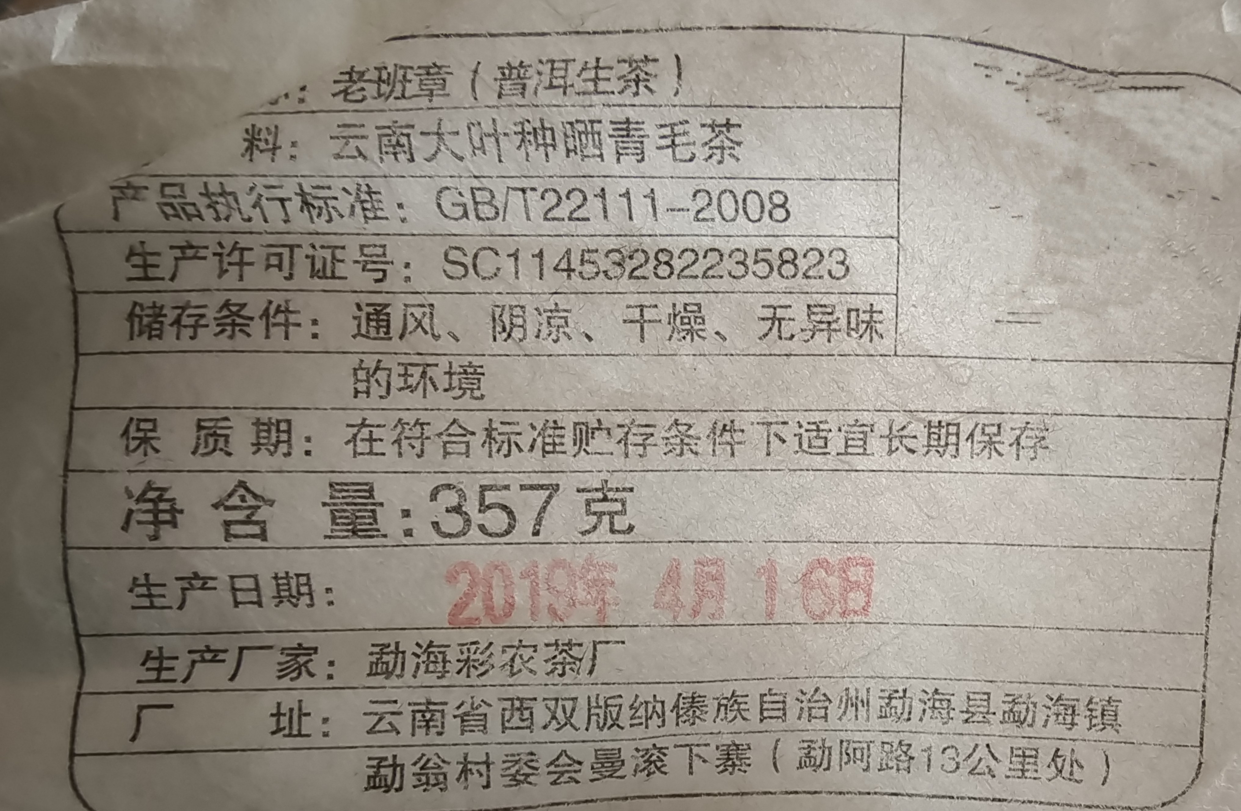 彩农茶|老班章2019头春古树纯料青饼
