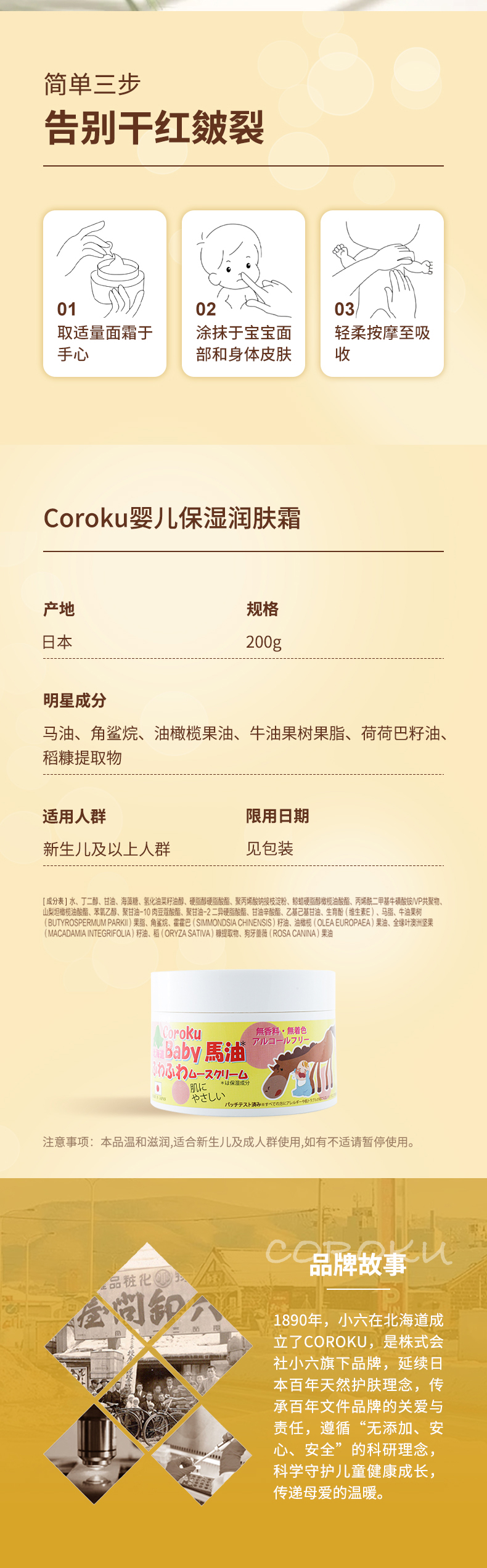 北海道小六宝宝保湿润肤霜/200g(包邮直发)