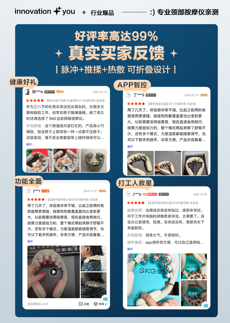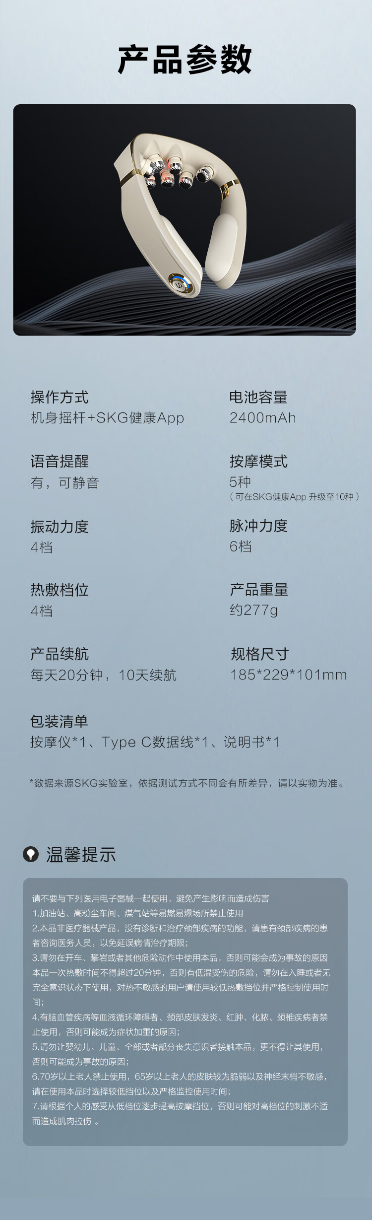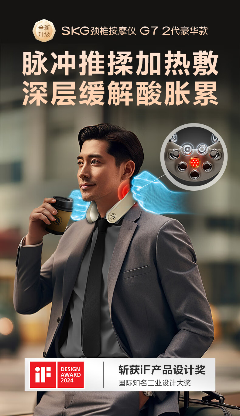 SKG 颈部按摩器 G7系列2代豪华款 颈部肩颈脖子 物理捶打热敷脉冲 智能护颈折叠按摩仪 实用生日送父母男女友老婆礼物