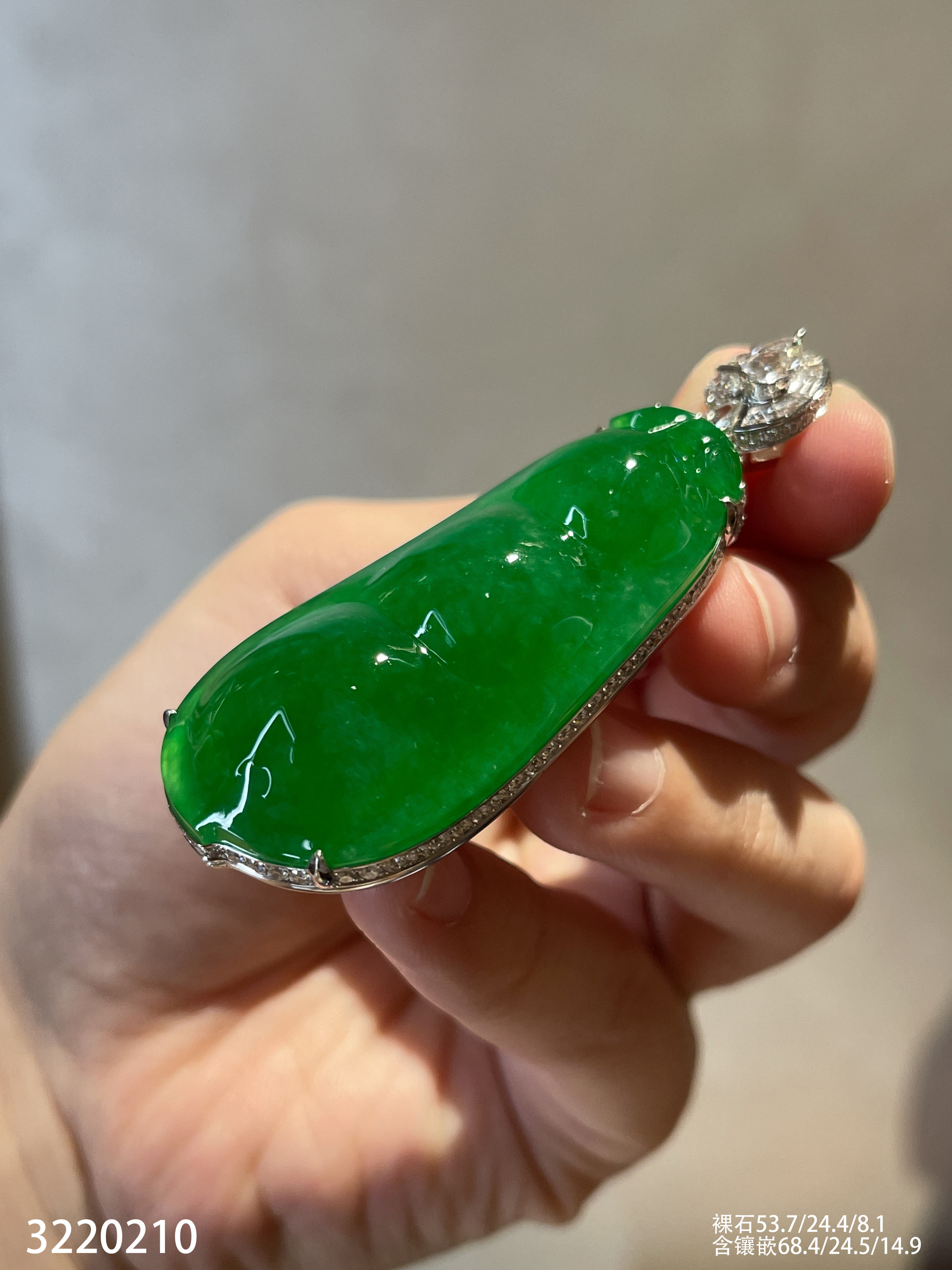 老坑艳绿富贵豆吊坠【3220210】具体价格微信咨询