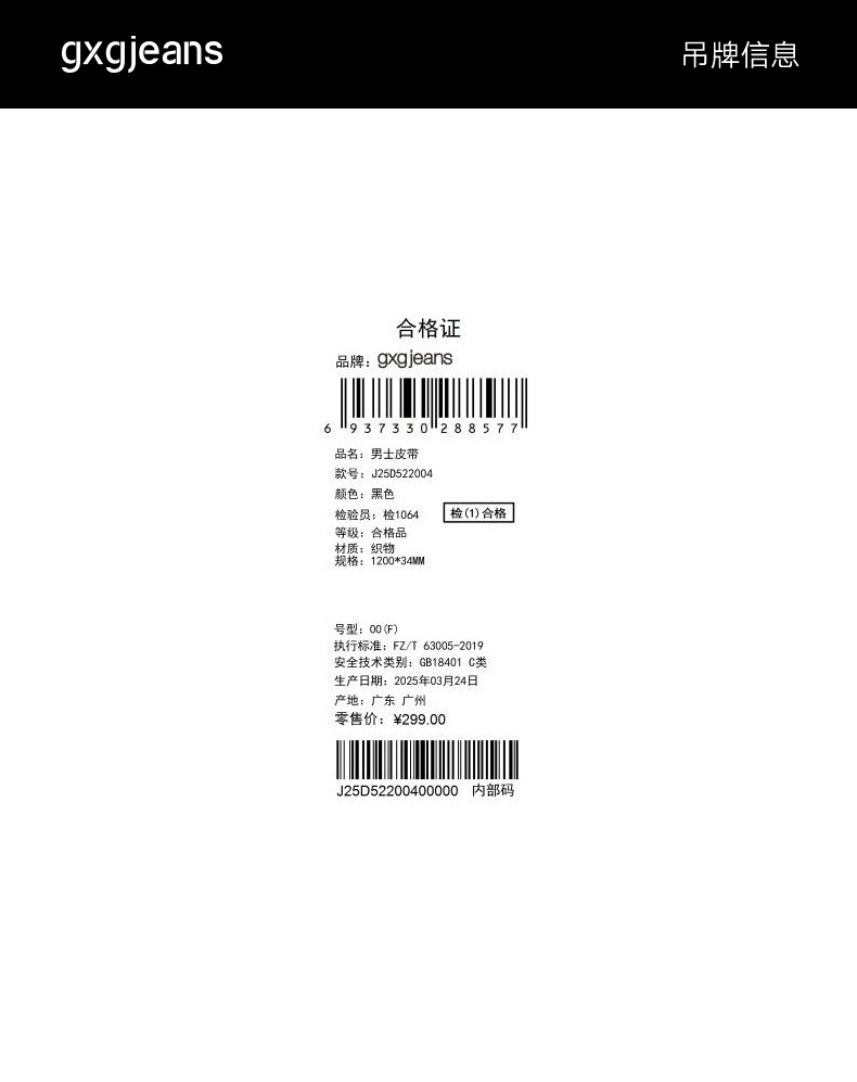 gxg.jeans 黑色商务休闲编织腰带男士皮带腰带 25年夏热卖