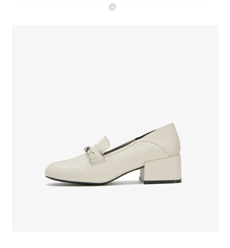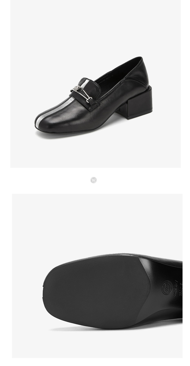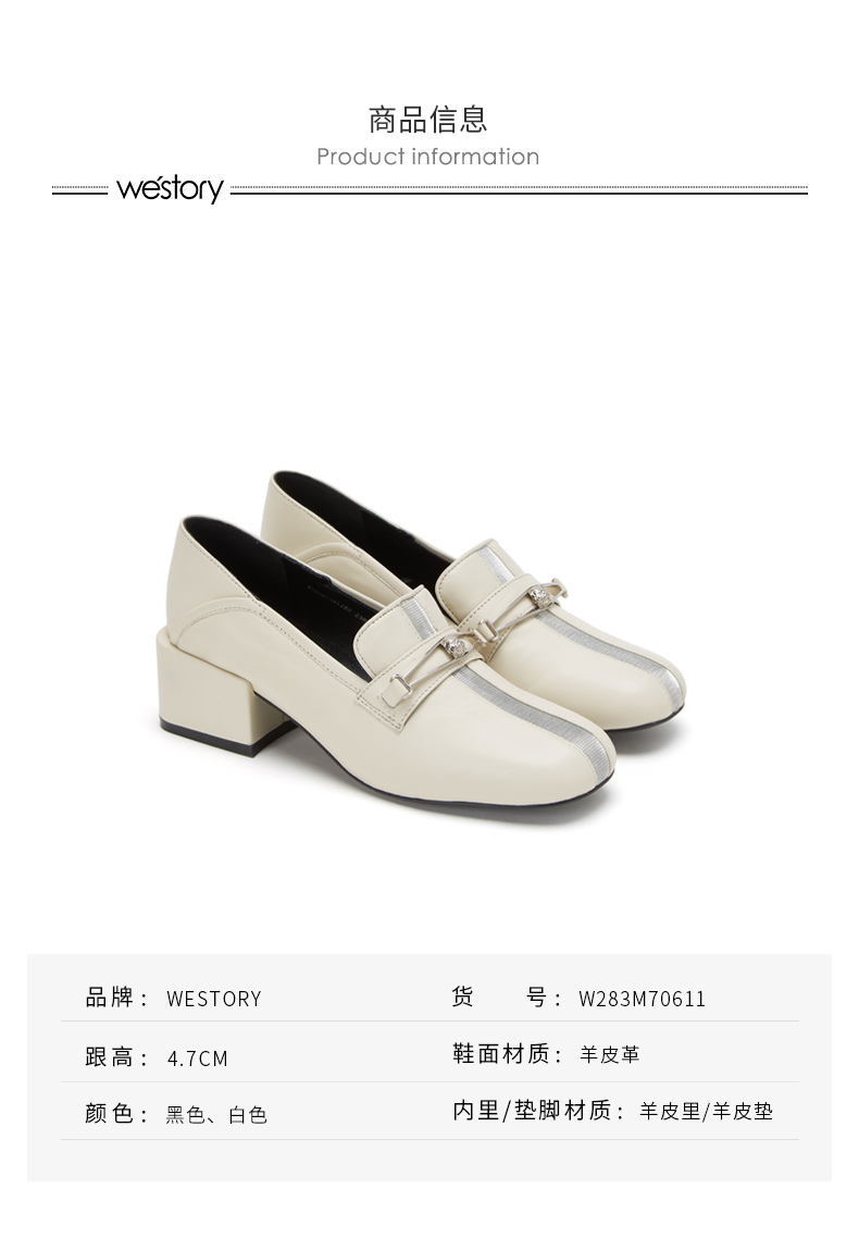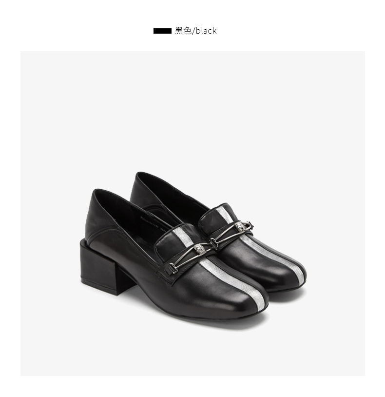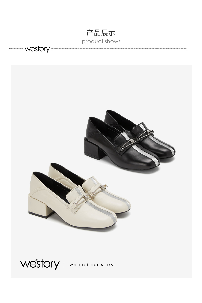 westory商场同款深口皮面单鞋金属扣带方头粗跟女鞋W283M70611