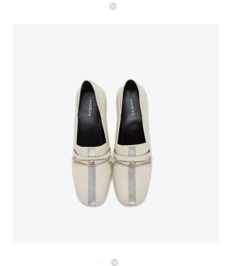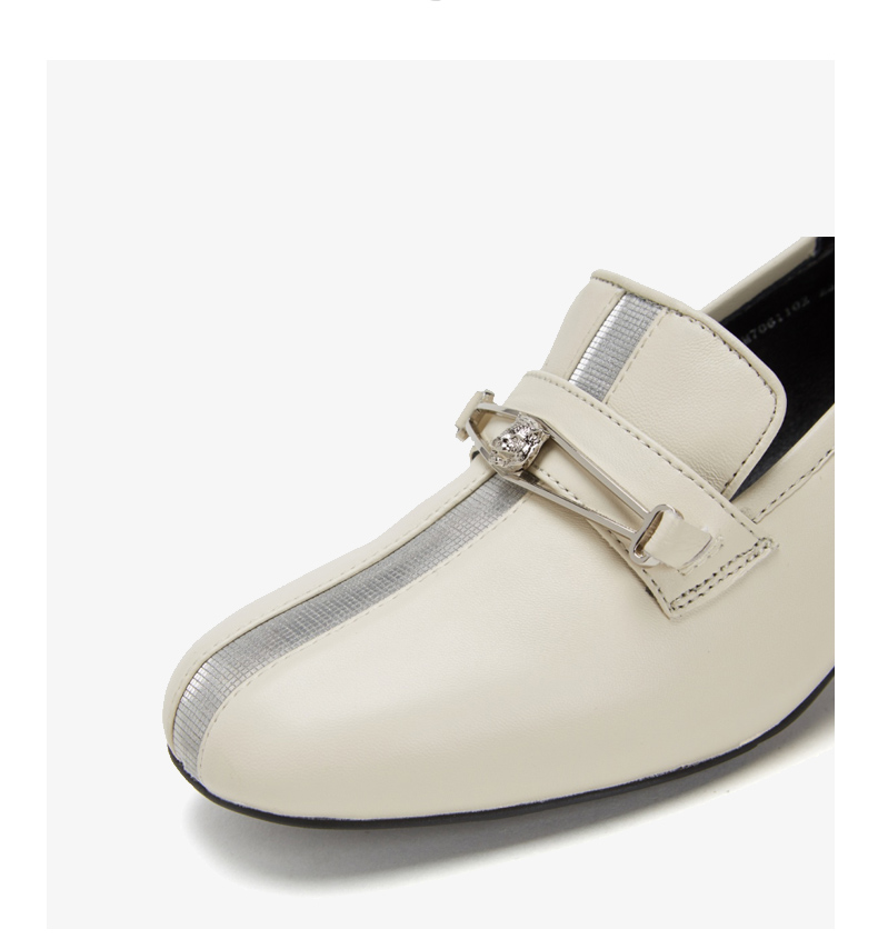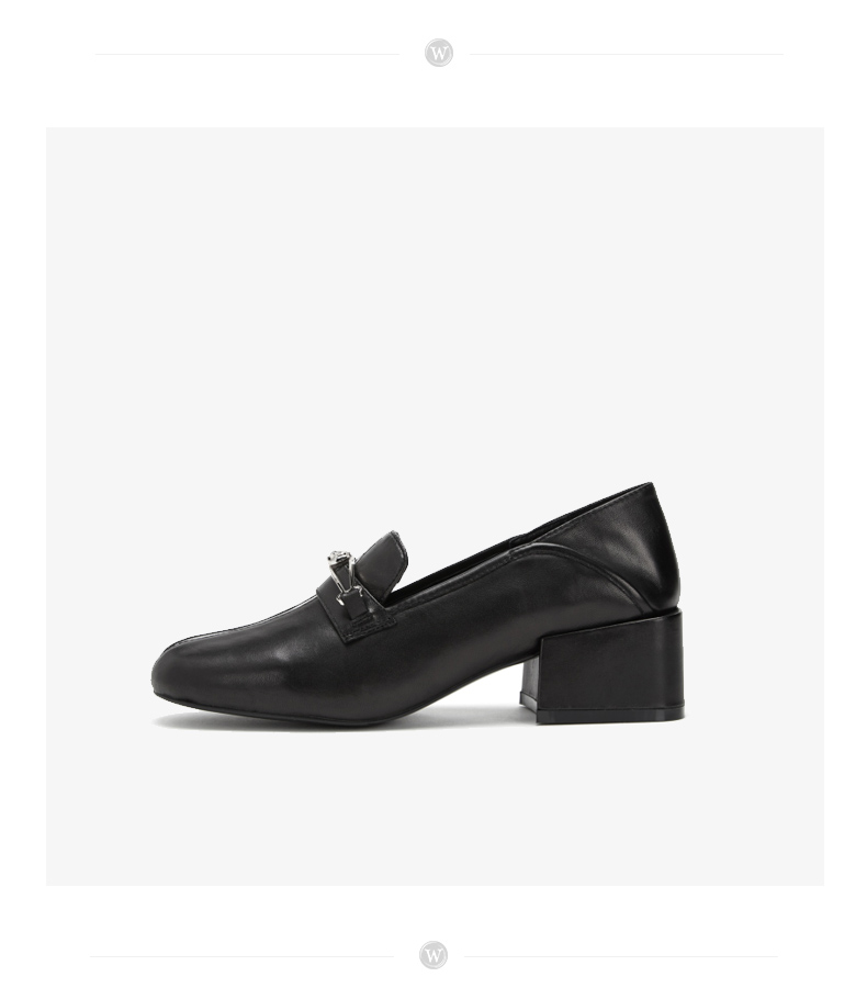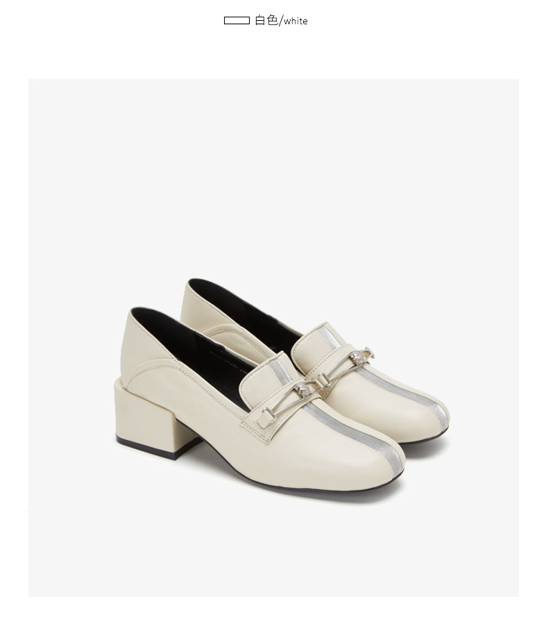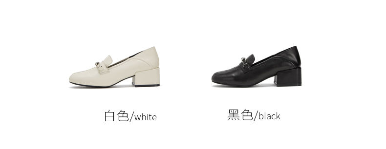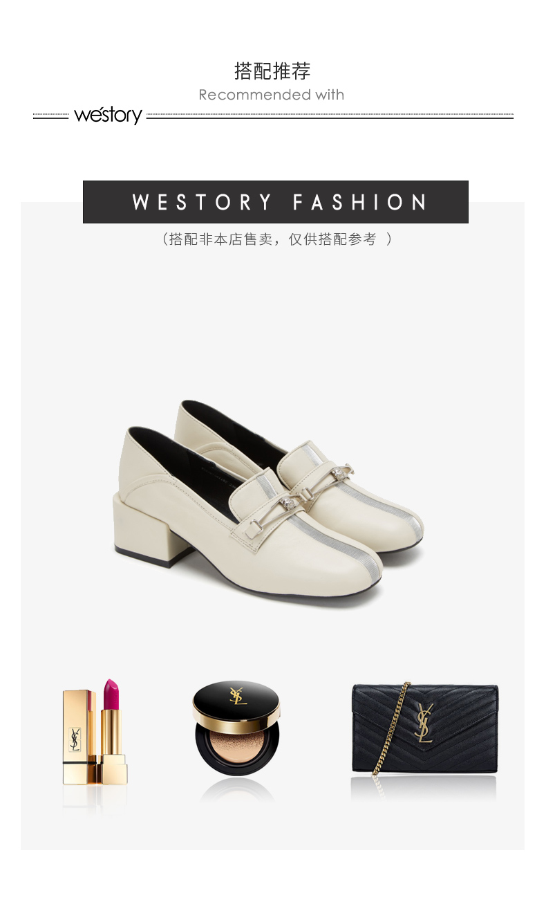 westory商场同款深口皮面单鞋金属扣带方头粗跟女鞋W283M70611