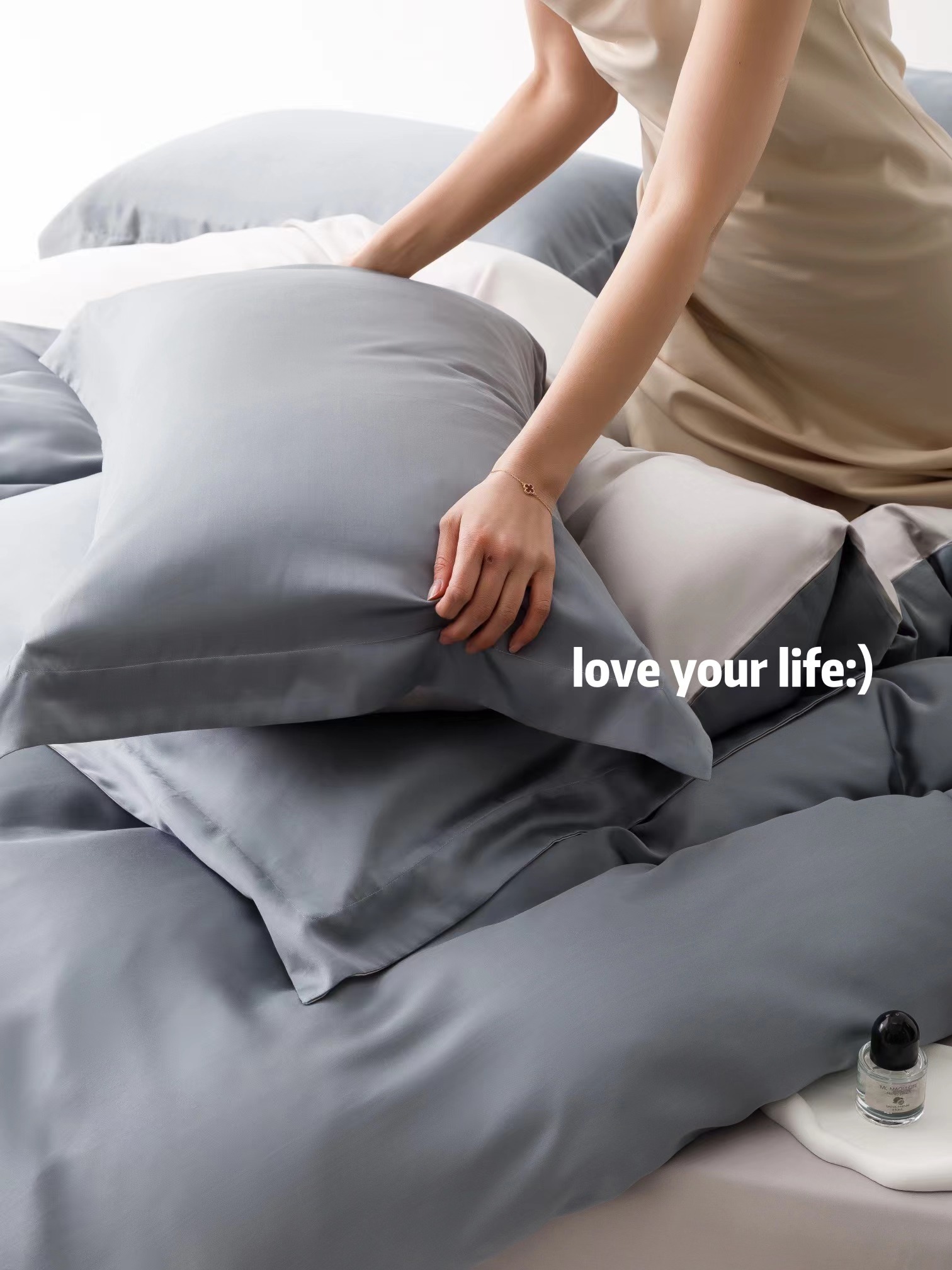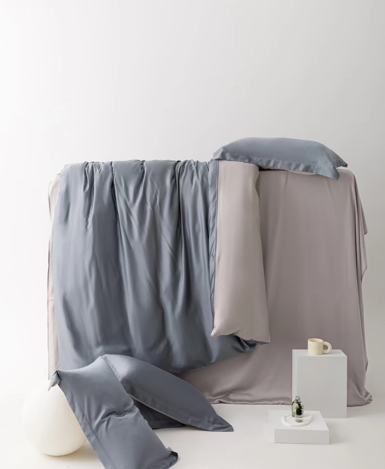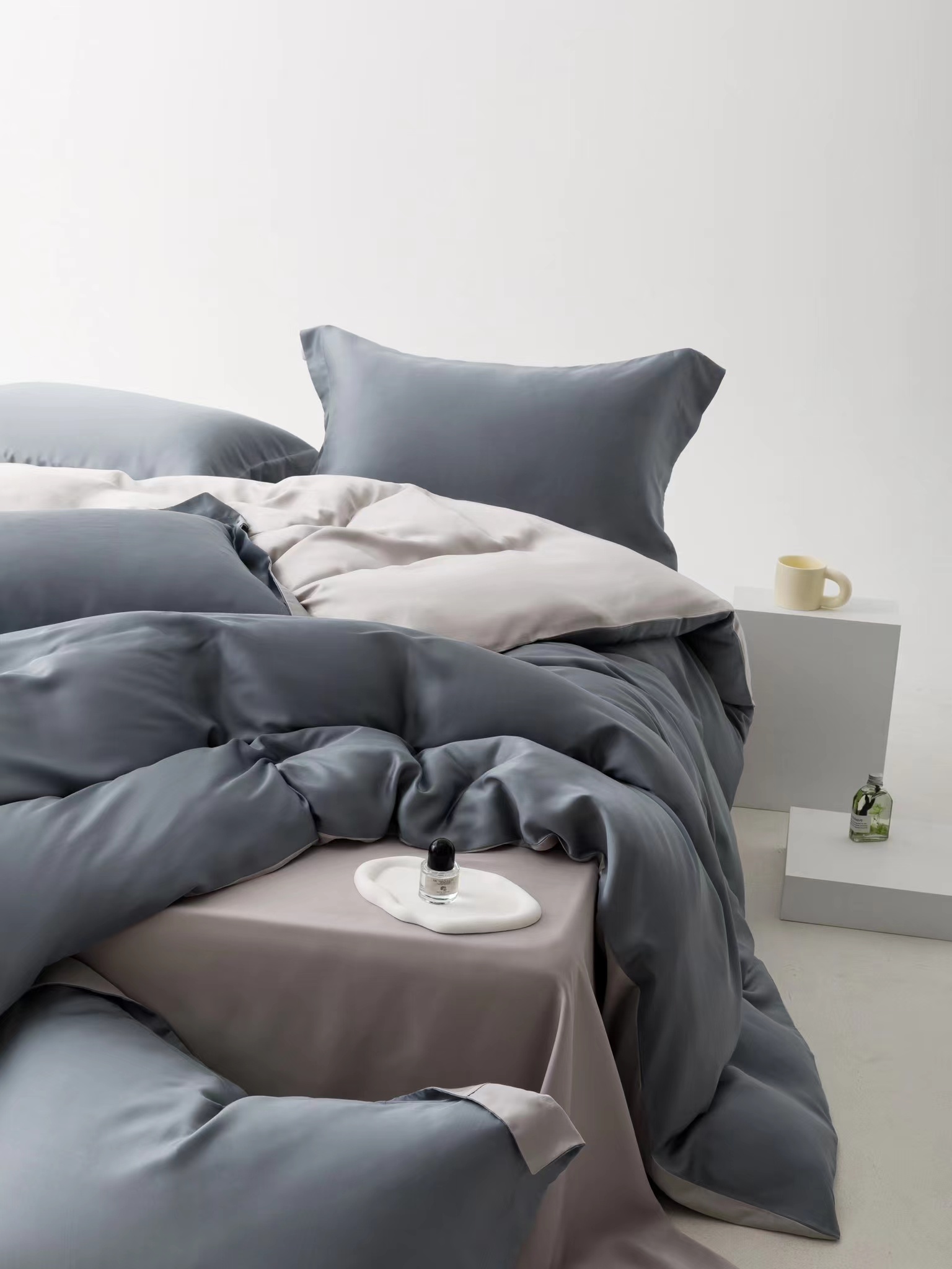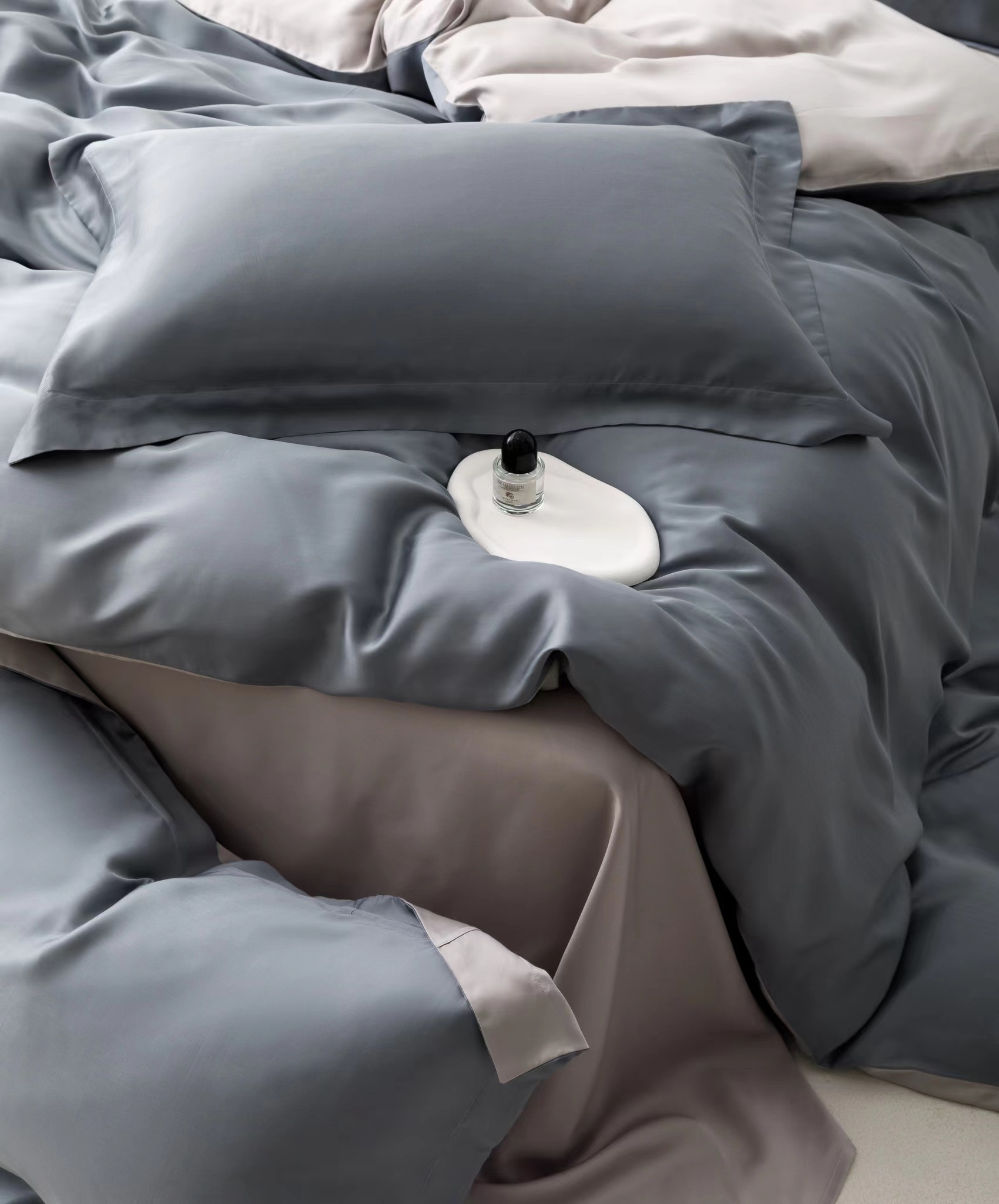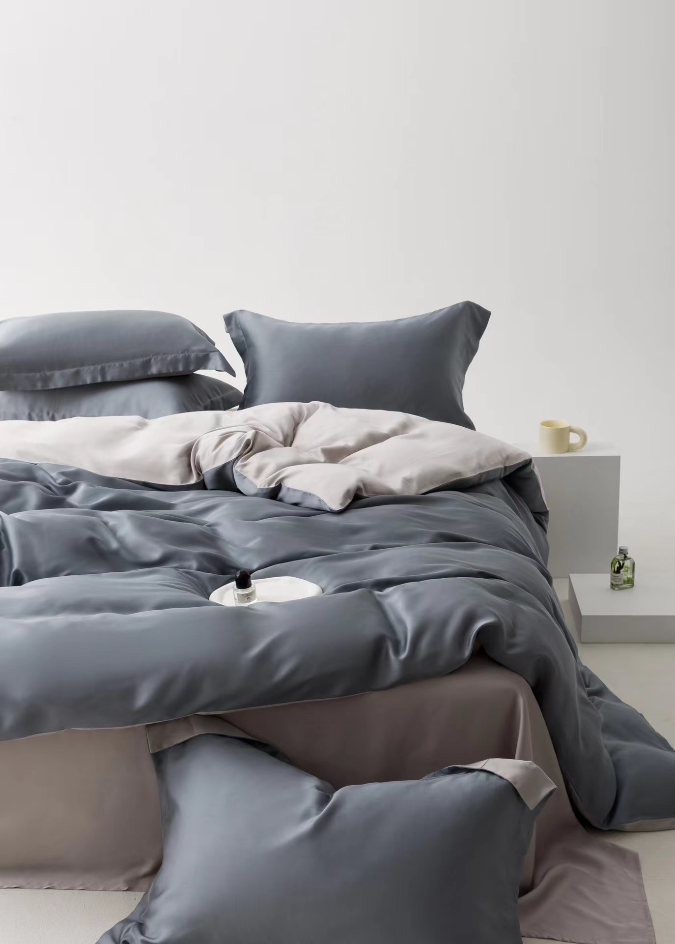 利路米夏季莱赛尔柔滑凉爽60S纯色天丝四件套魅影灰