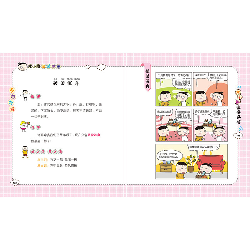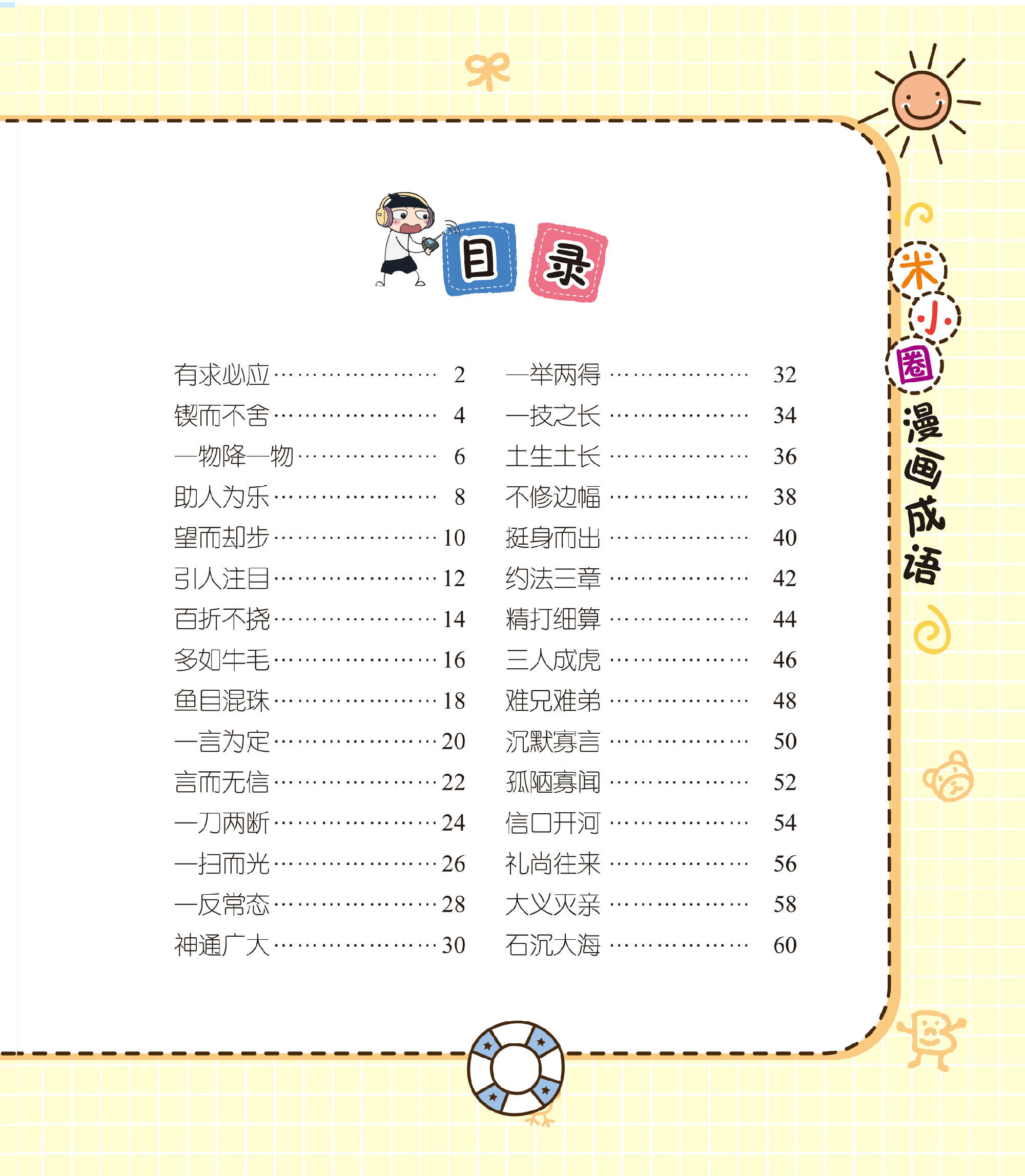 收录264个小学阶段常用成语,从成语释义、成语造句到近义词、反义词,再到成语多格漫画,多角度帮助小读者学习成语、记住成语进而运用成语。可爱的人物,幽默的漫画,易懂、准确的成语释义,让小读者和米小圈一起快乐学成语!另外,还有《米小圈漫画成语游戏·小蓝书》,看图猜成语、成语表情对对碰、成语寻宝记等多种成语游戏,边玩游戏边学成语,一起成为成语小达人吧!