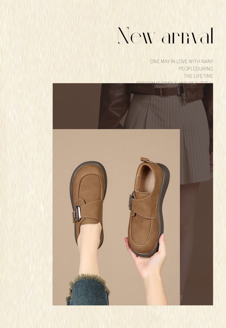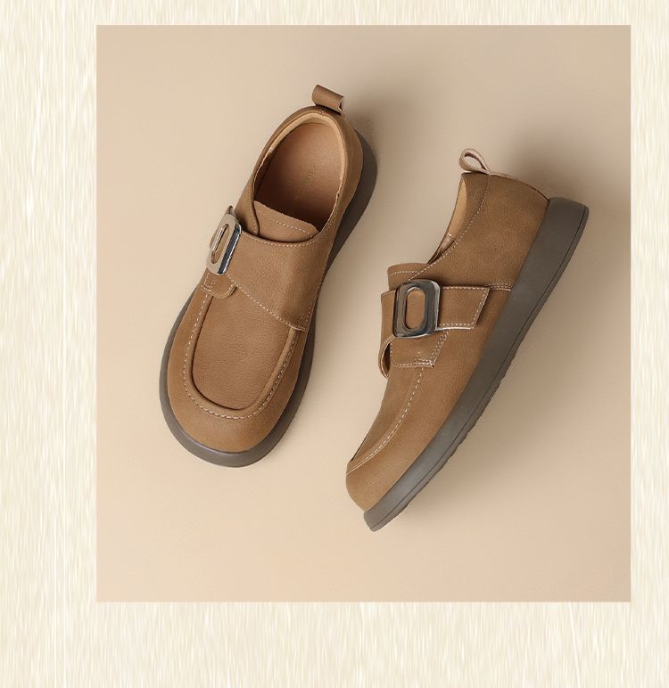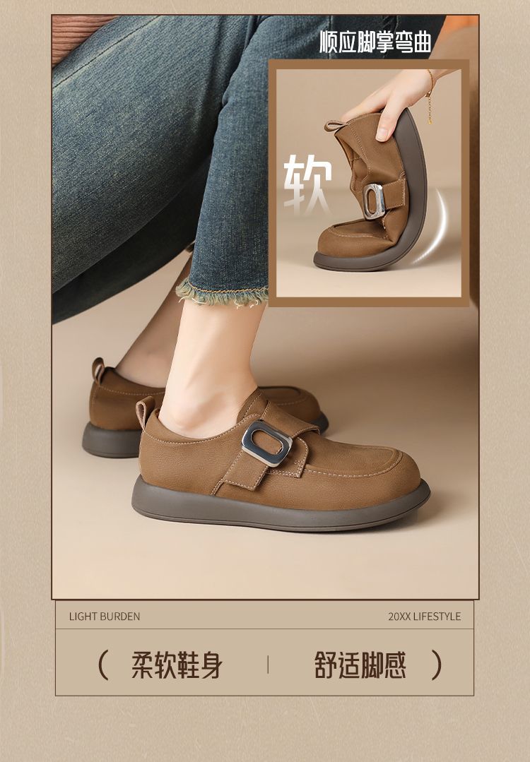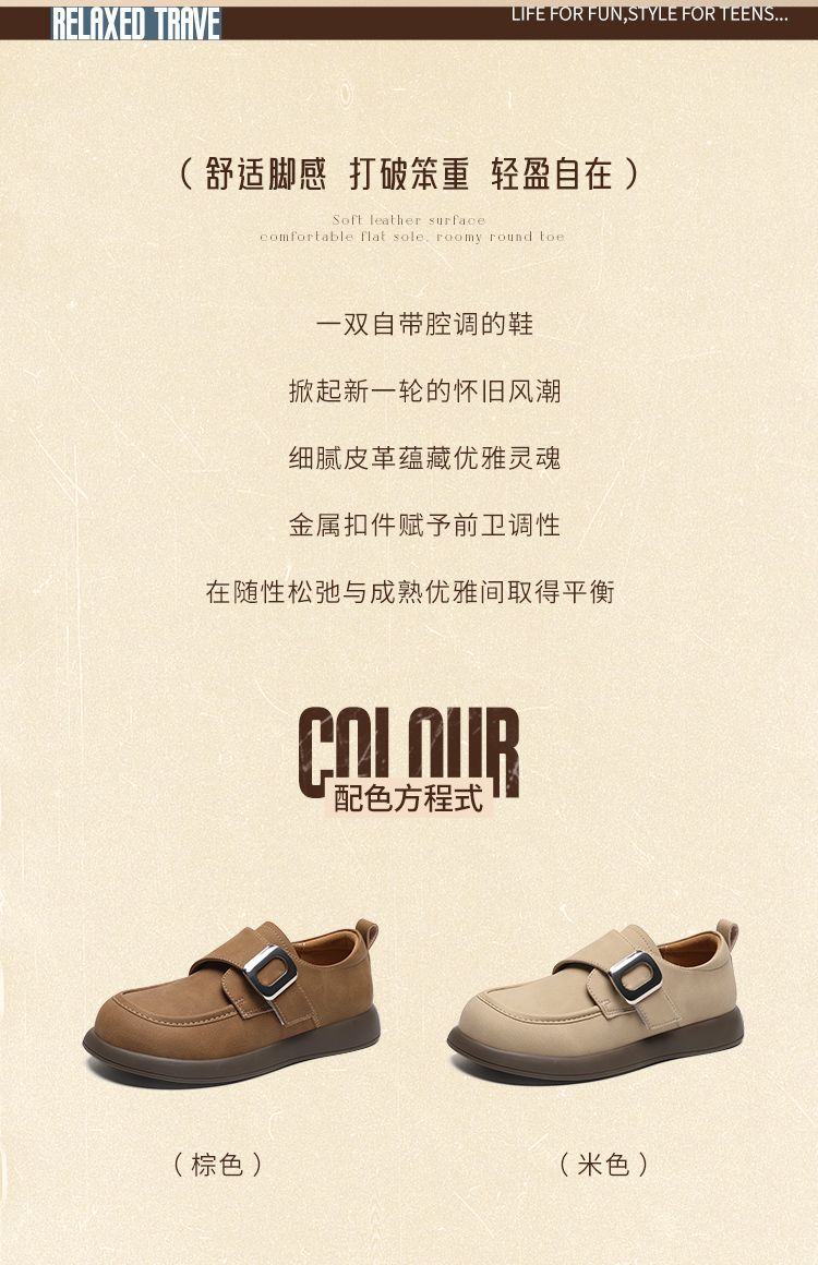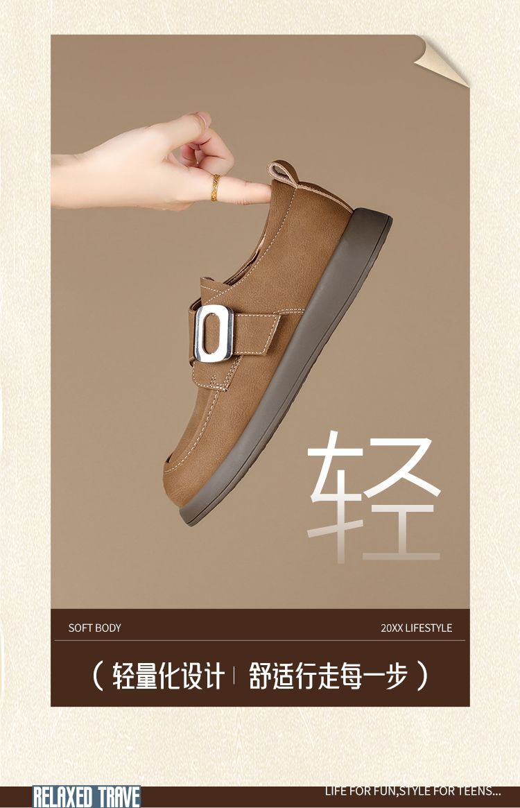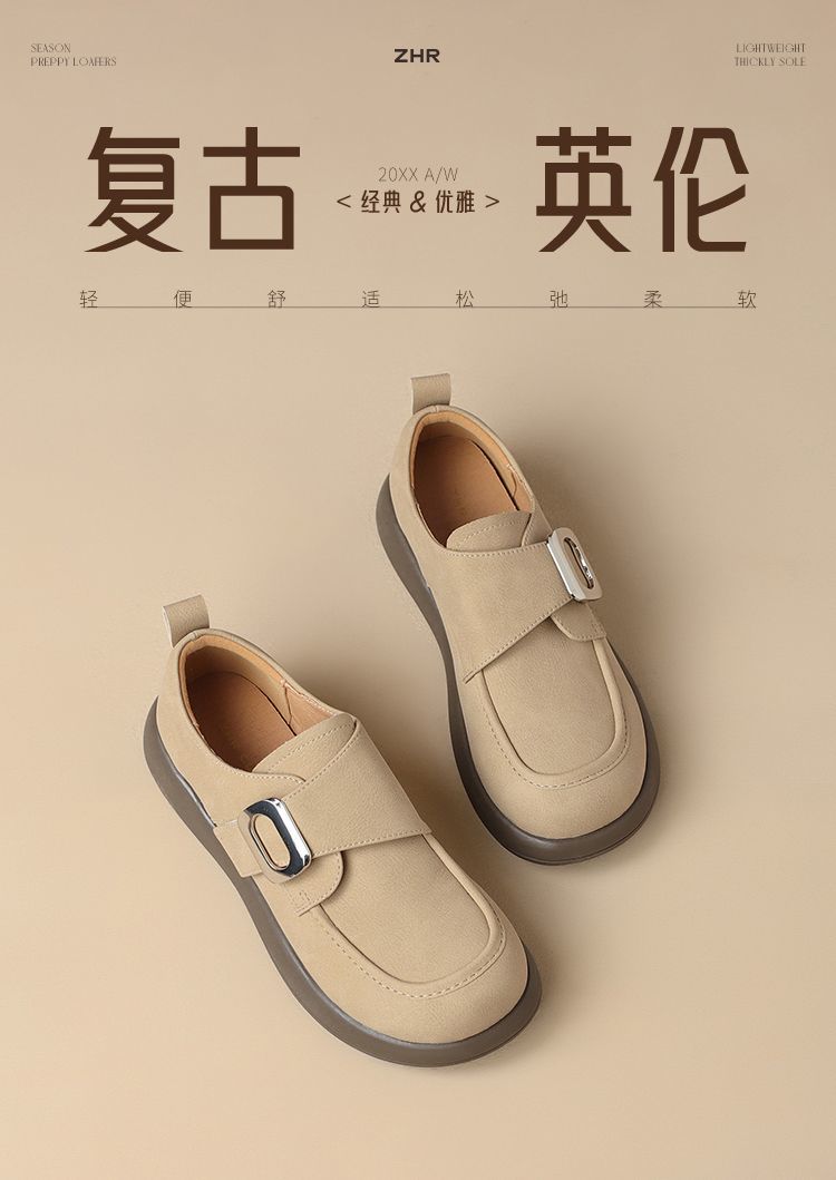ZHR复古魔术贴搭扣乐福鞋女2026新款时尚百搭轻便通勤勃肯风单鞋