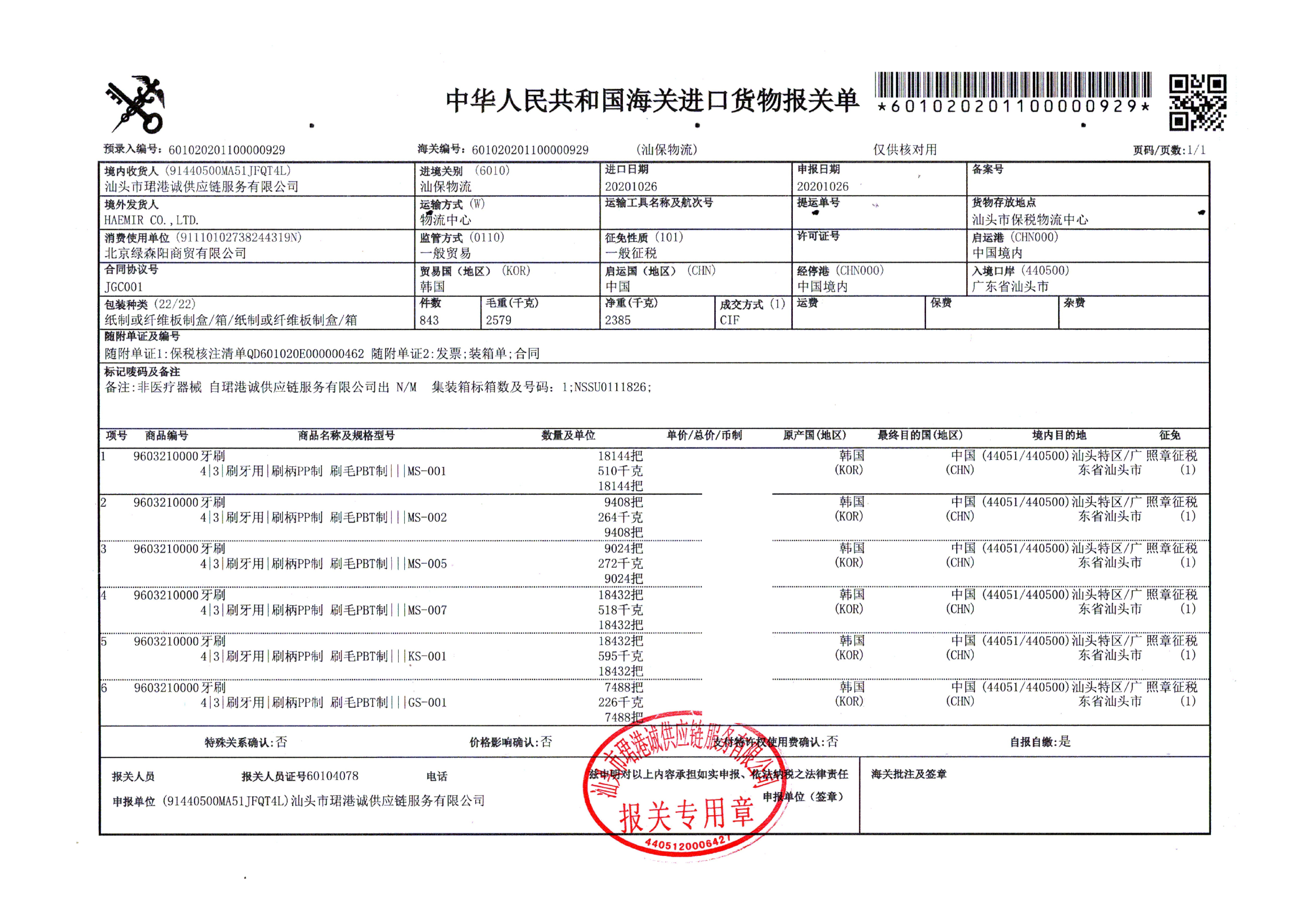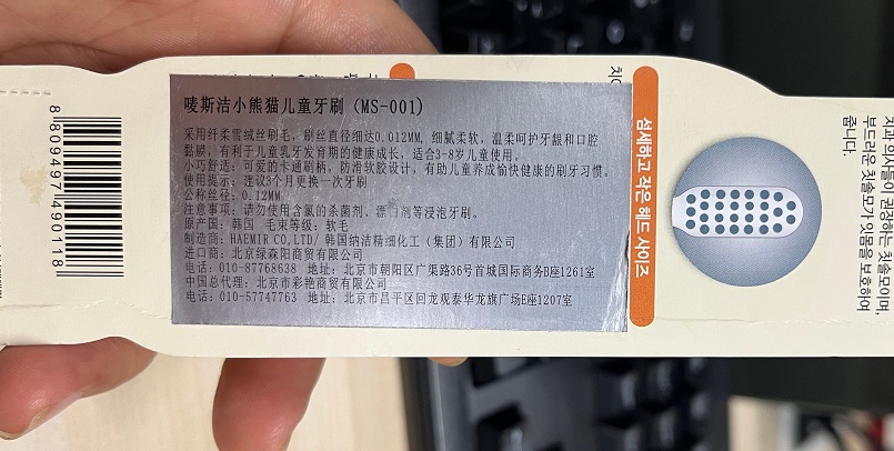 唛斯洁小熊猫儿童牙刷1支