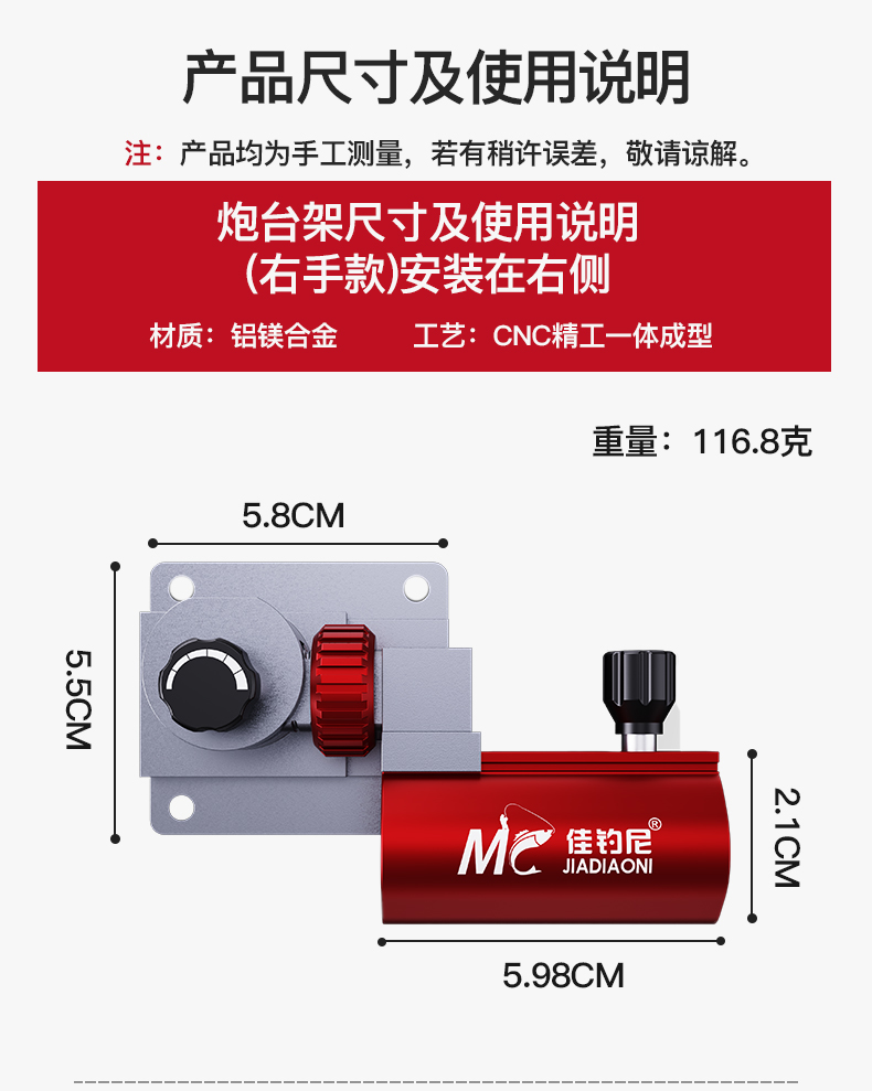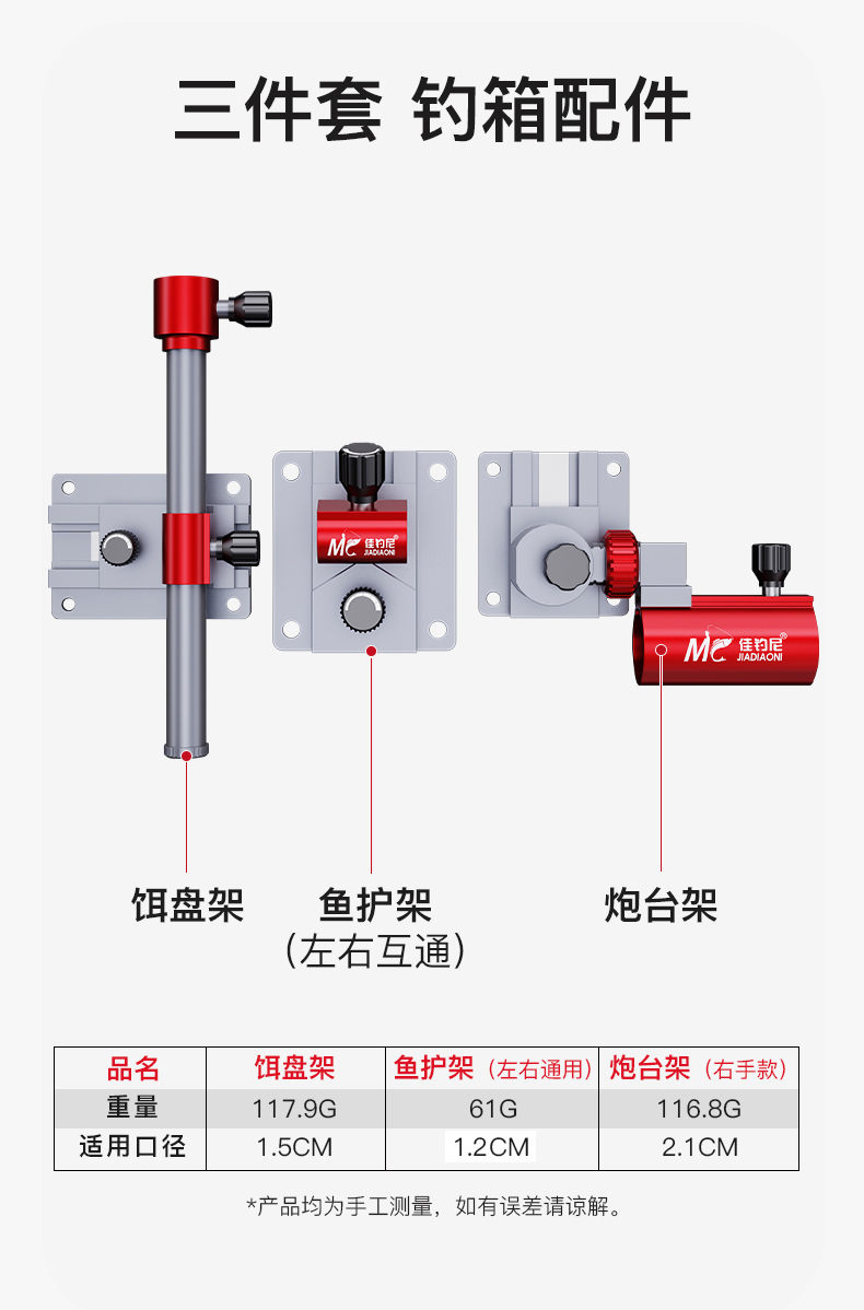佳钓尼钓箱配件多功能加厚铝合金三件套可拆卸炮台鱼护架拉饵盘架