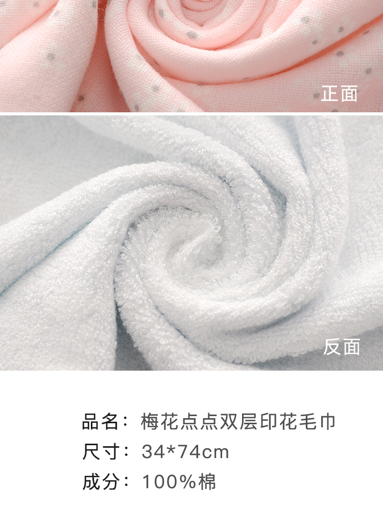 (乡村振兴商品)梅花点点双层印花毛巾(随机发货)34*74*3 商品图4