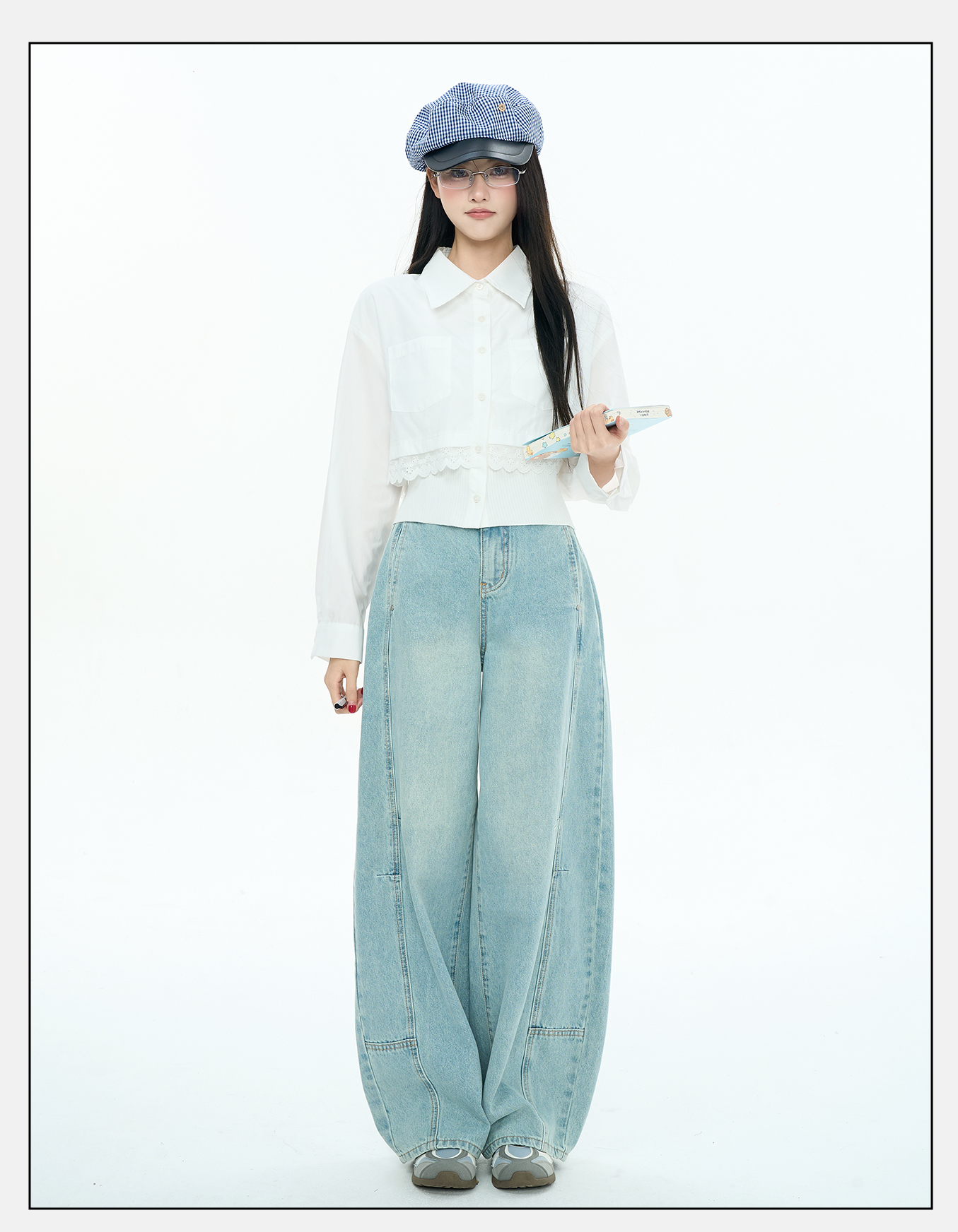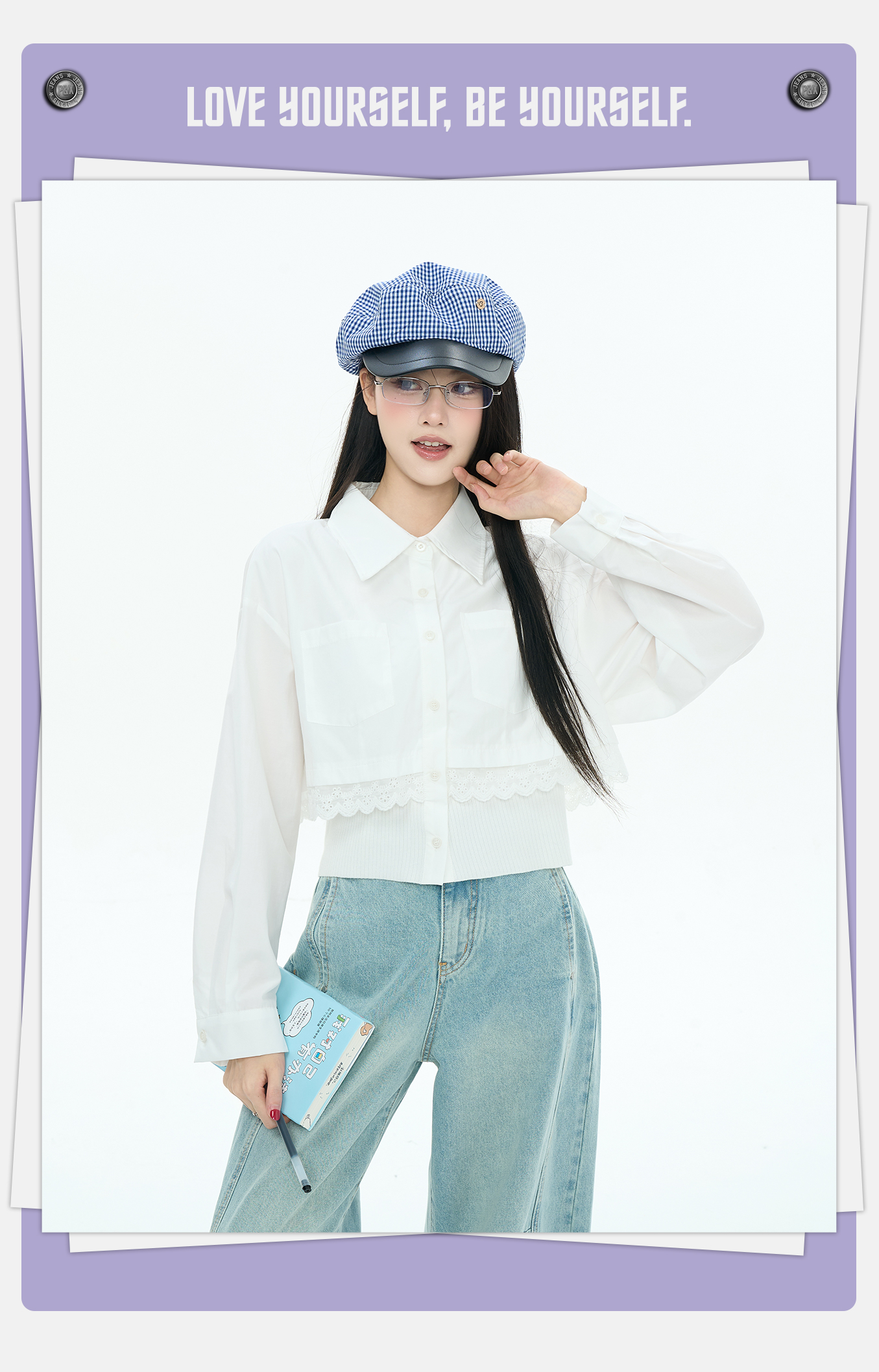 P&X设计师女装2025秋季长袖休闲常规梭织短款衬衫825305264 白色