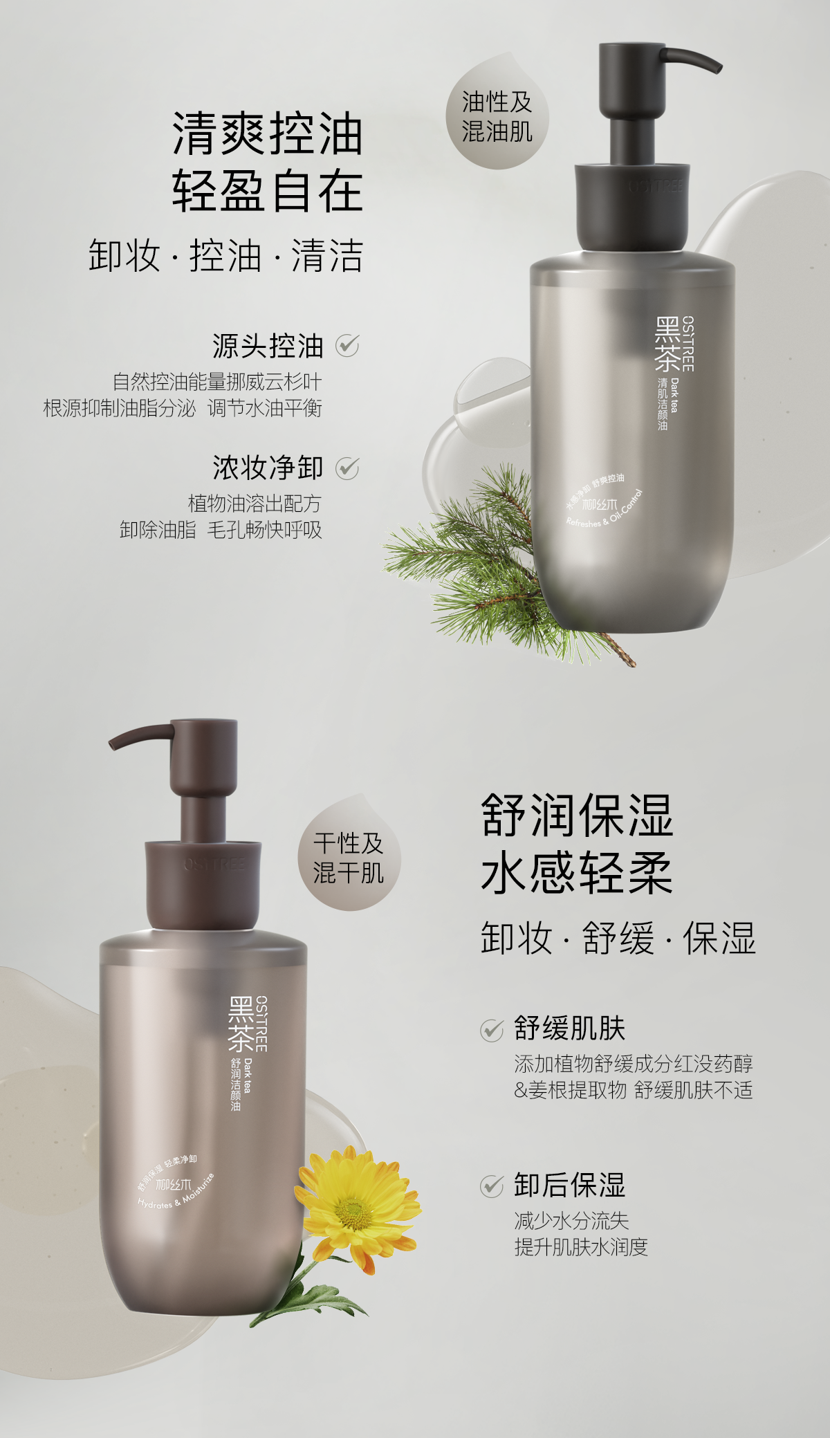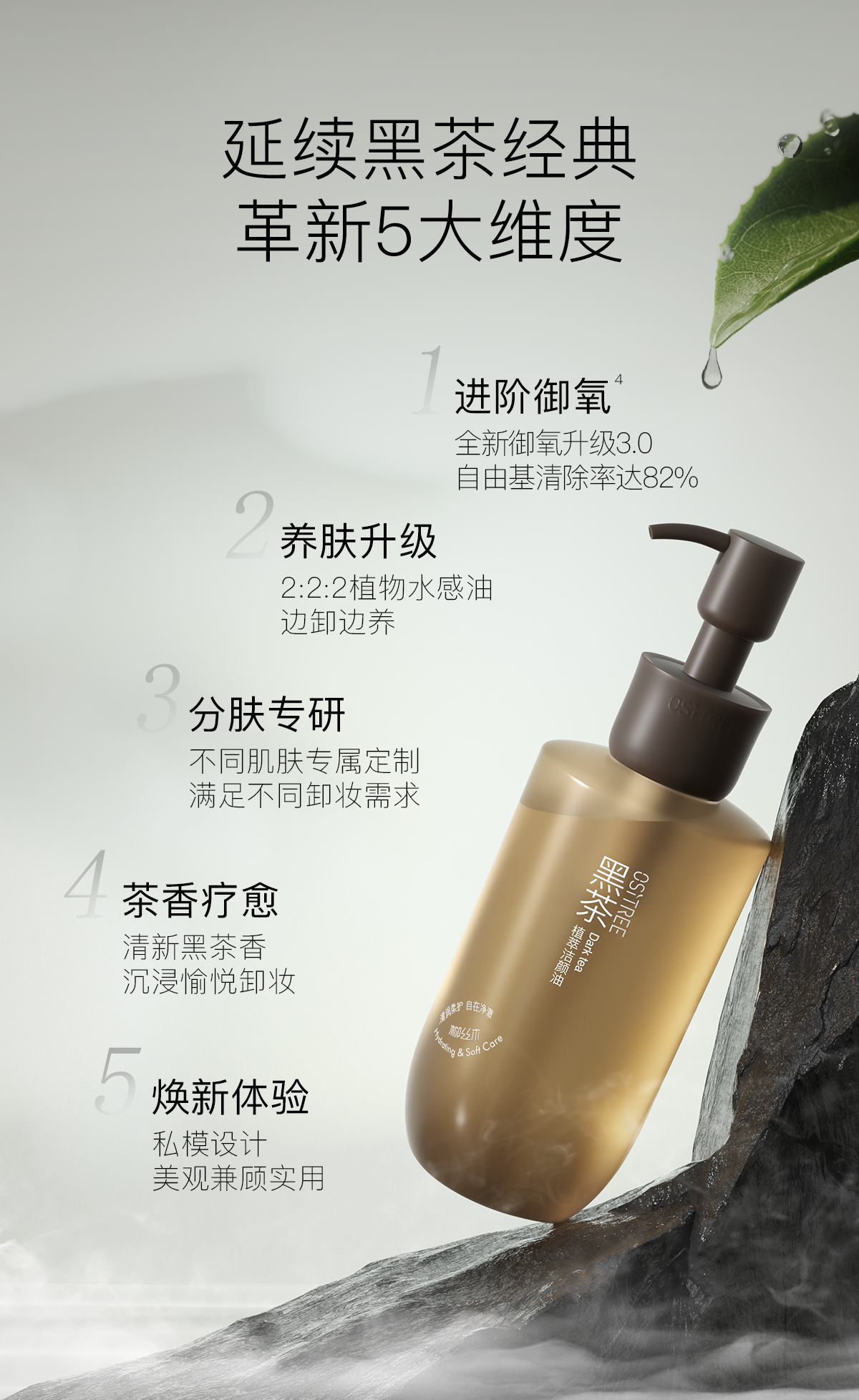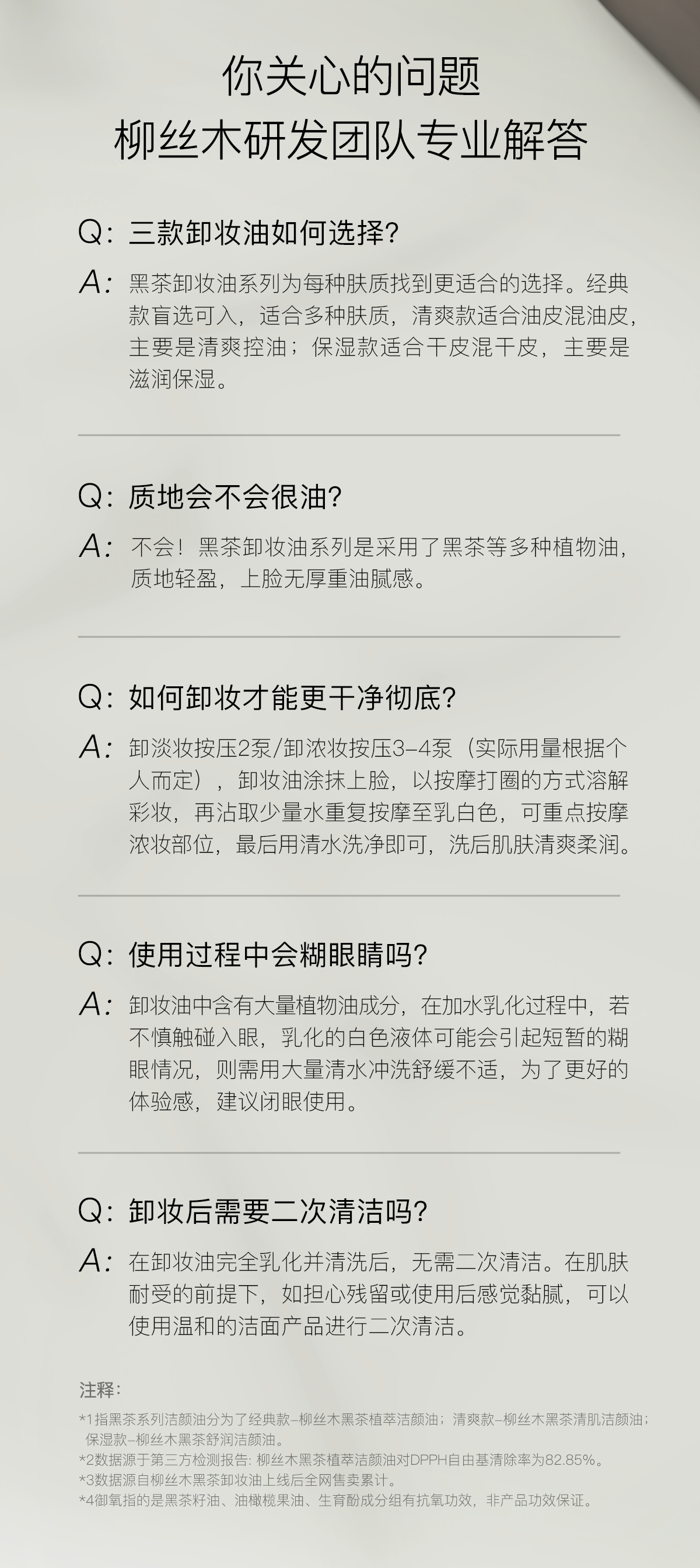 柳丝木新升级三代黑茶植萃卸妆油天然不刺激清爽水润抗氧浓妆净澈