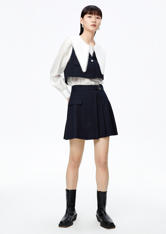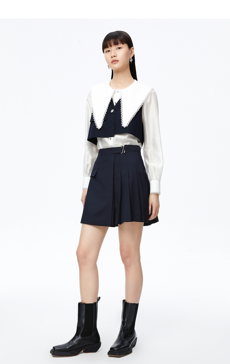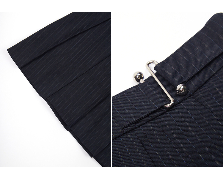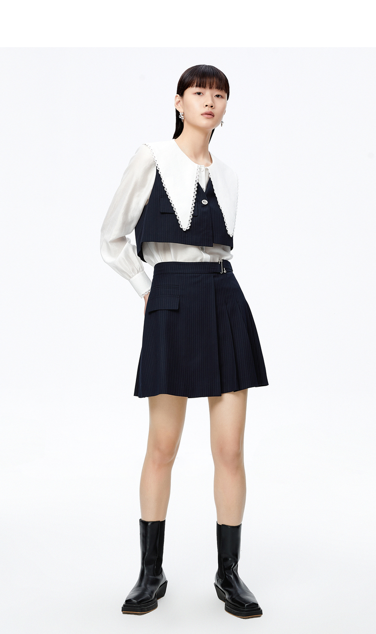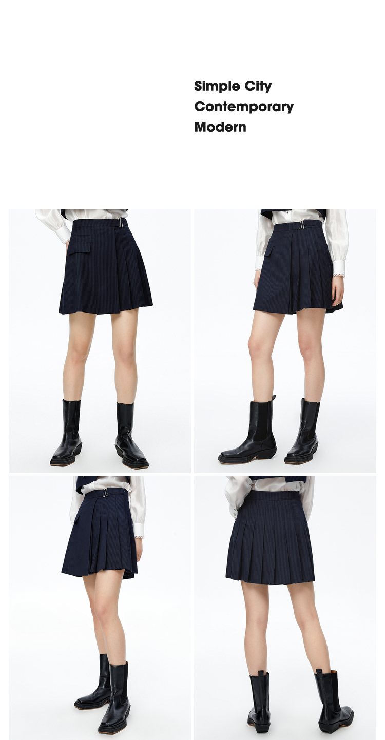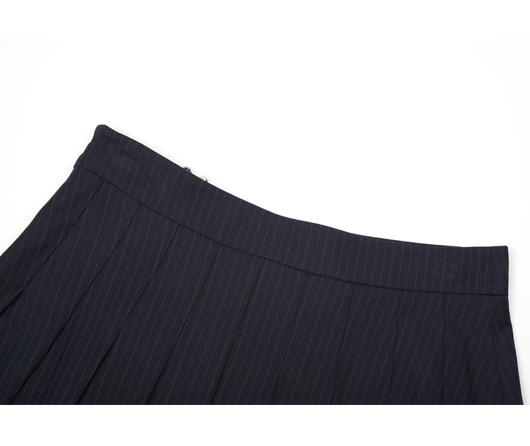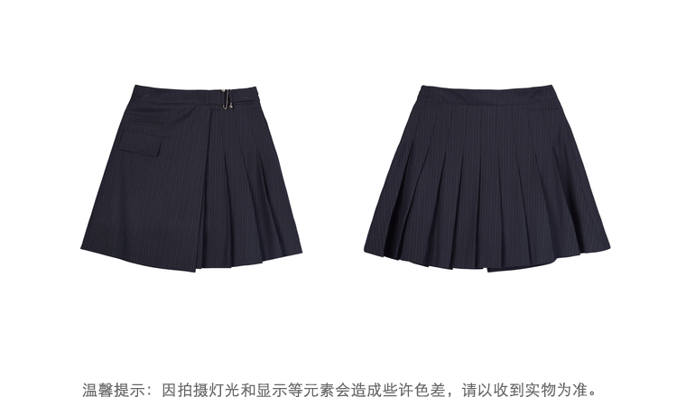 NEELLY纳俪高腰A字条纹百褶半身裙时尚学院风百搭垂感遮肉短裙女N22081E01058