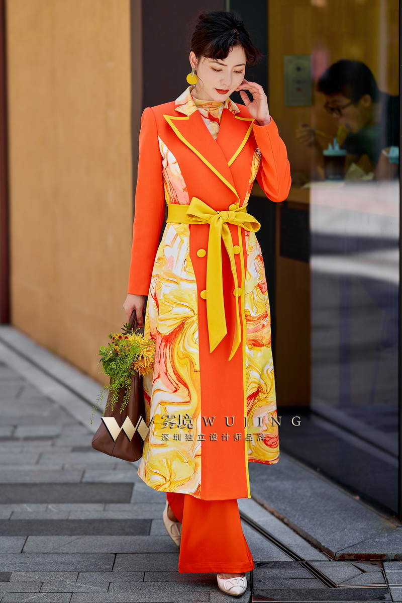 1202070 烟岚云秀 高端TR厚斜纹,定制双面缎印花外套 雾境