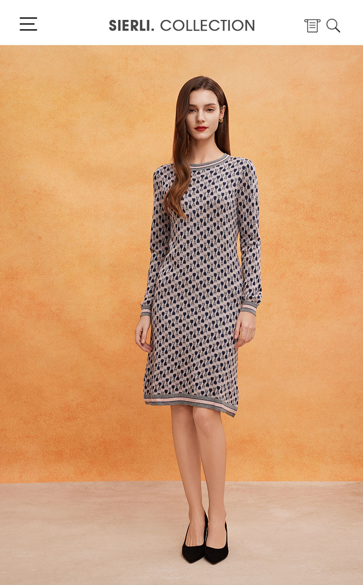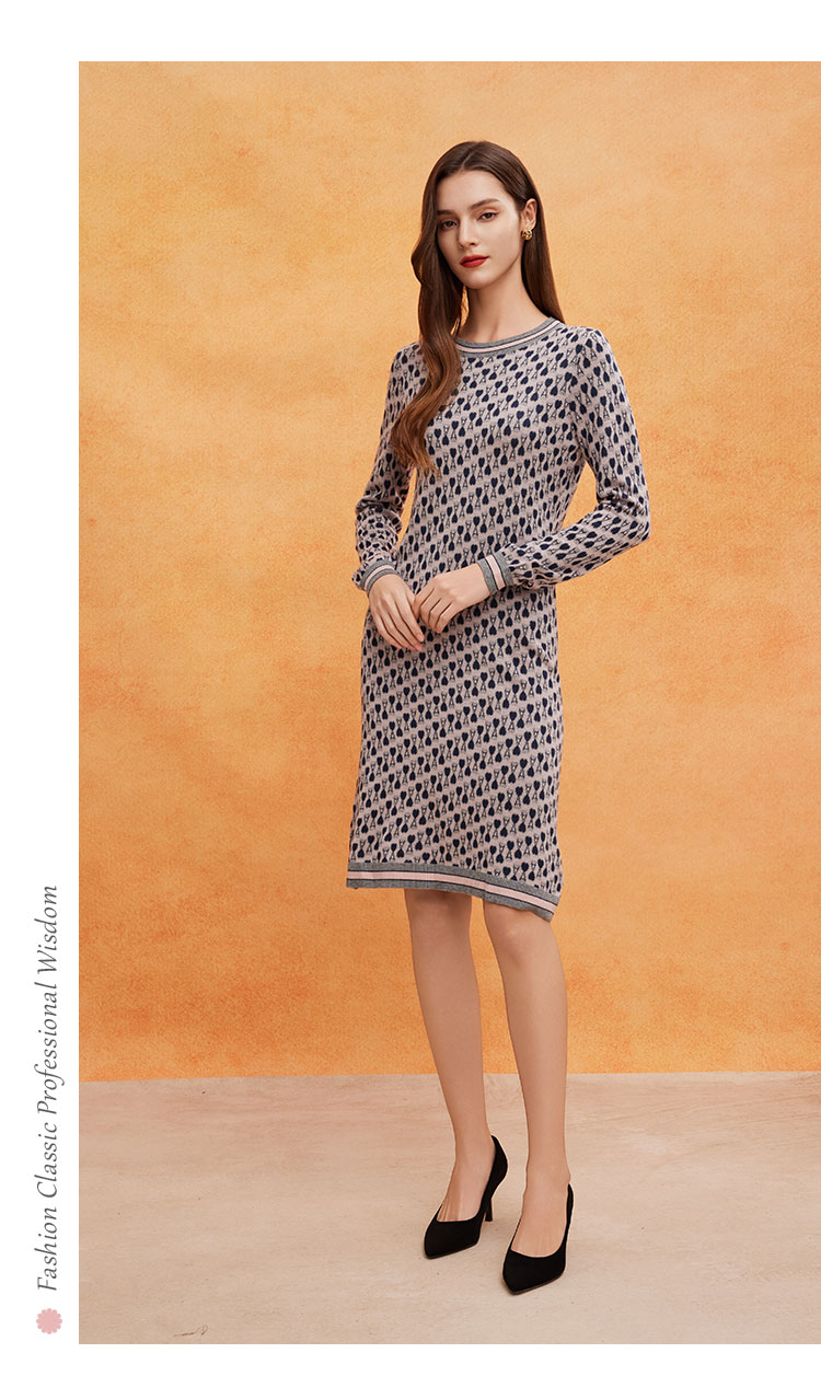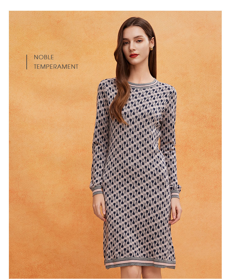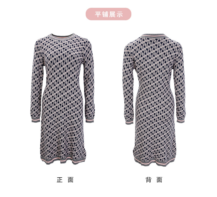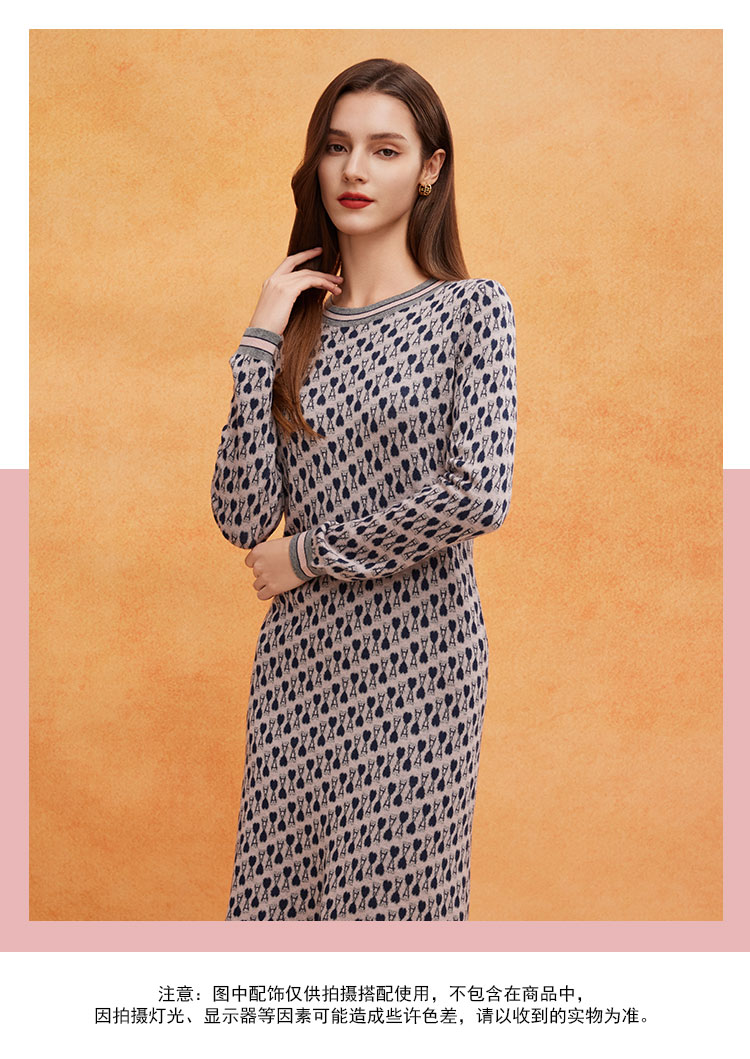 QE61A瑟俪(斯尔丽高端)舒适柔软低圆领撞色提花毛衣针织连衣裙