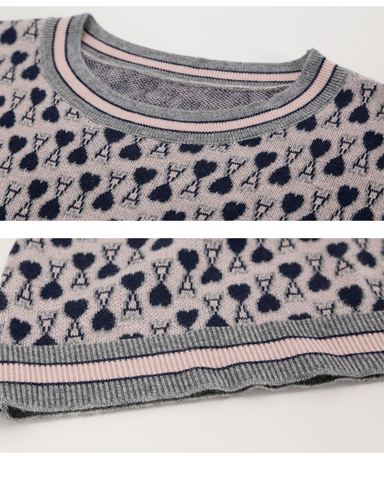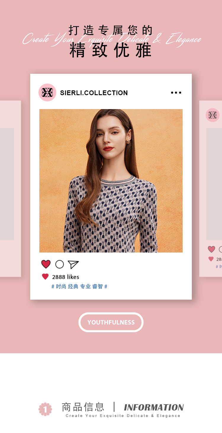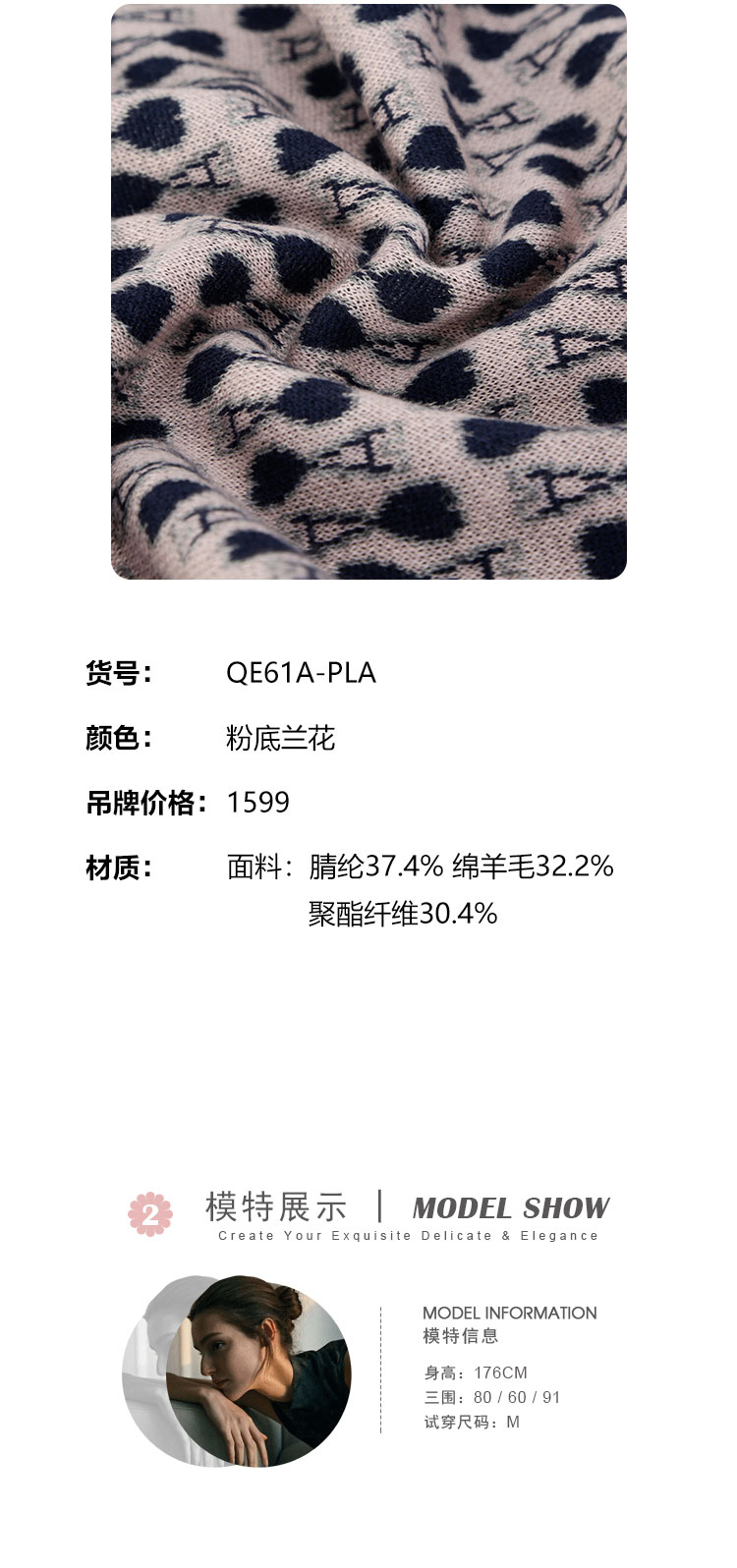 QE61A瑟俪(斯尔丽高端)舒适柔软低圆领撞色提花毛衣针织连衣裙