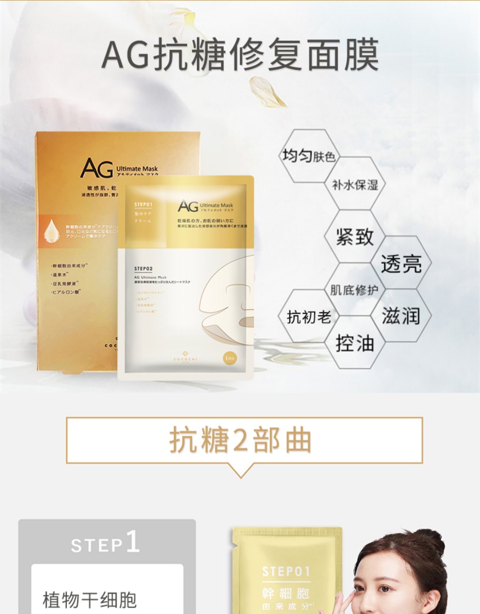 日本cocochi修护保湿AG抗糖面膜补水亮白基础保湿修护