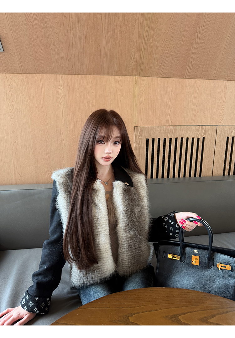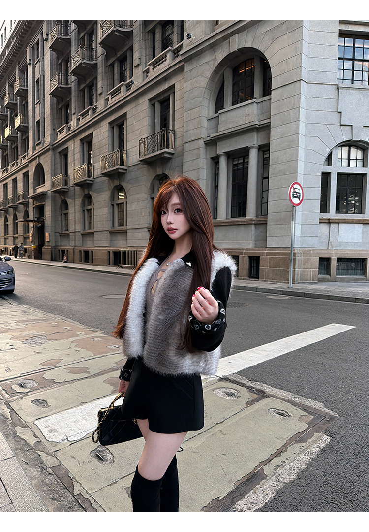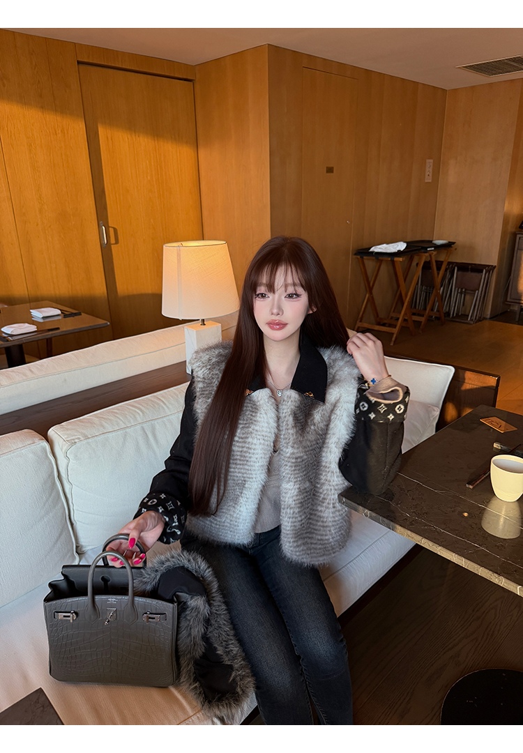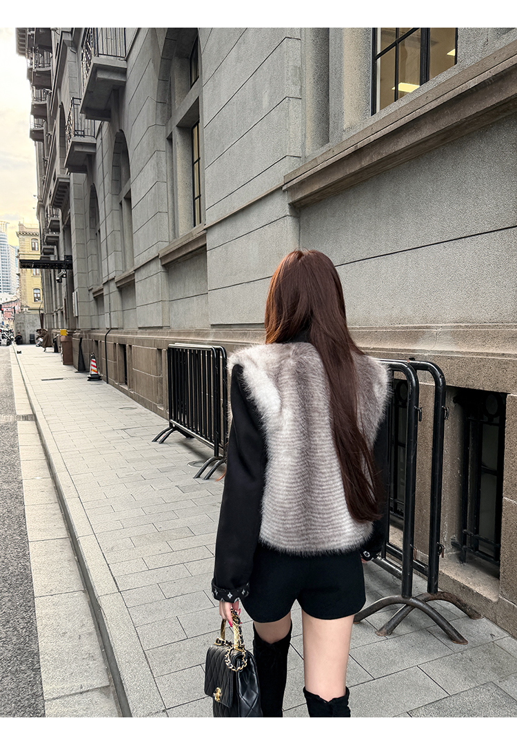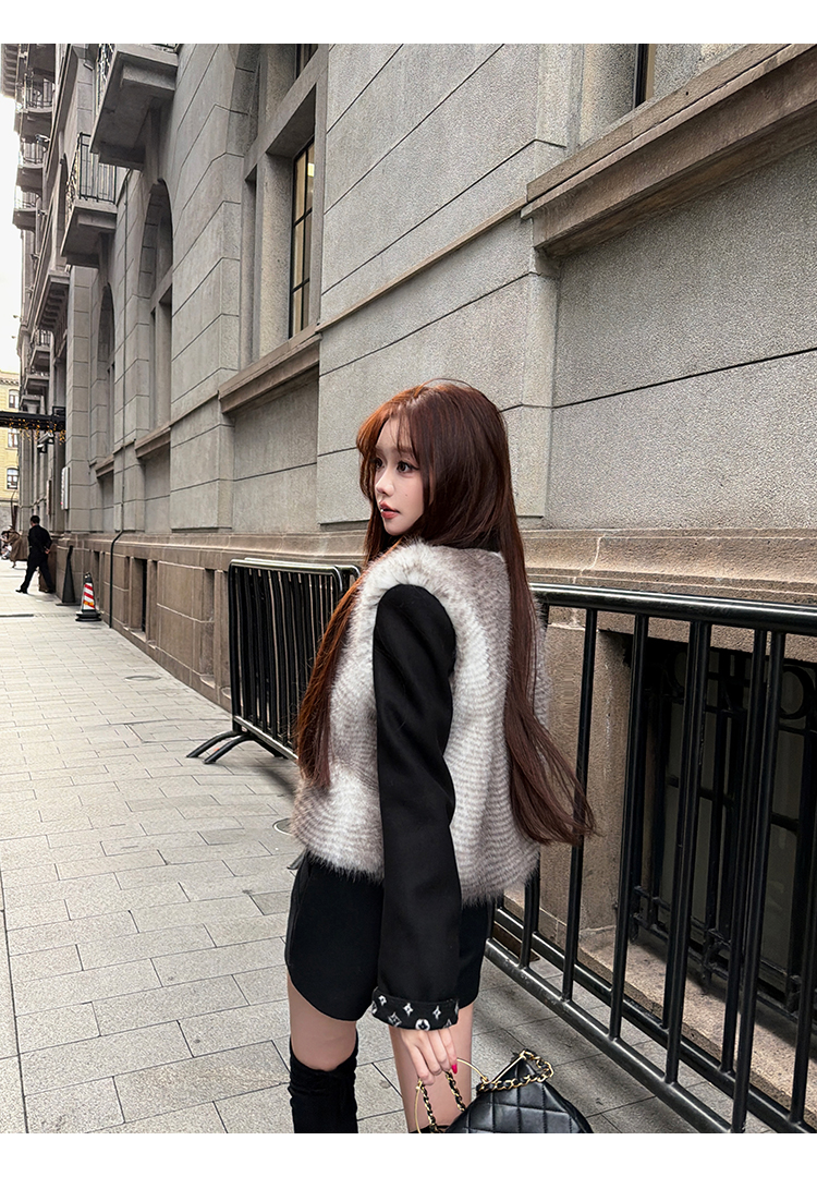 LINCHAOZHANG 【广岛之恋】LW250156 环保毛拼接外套