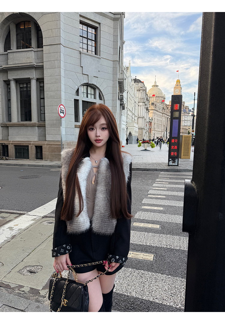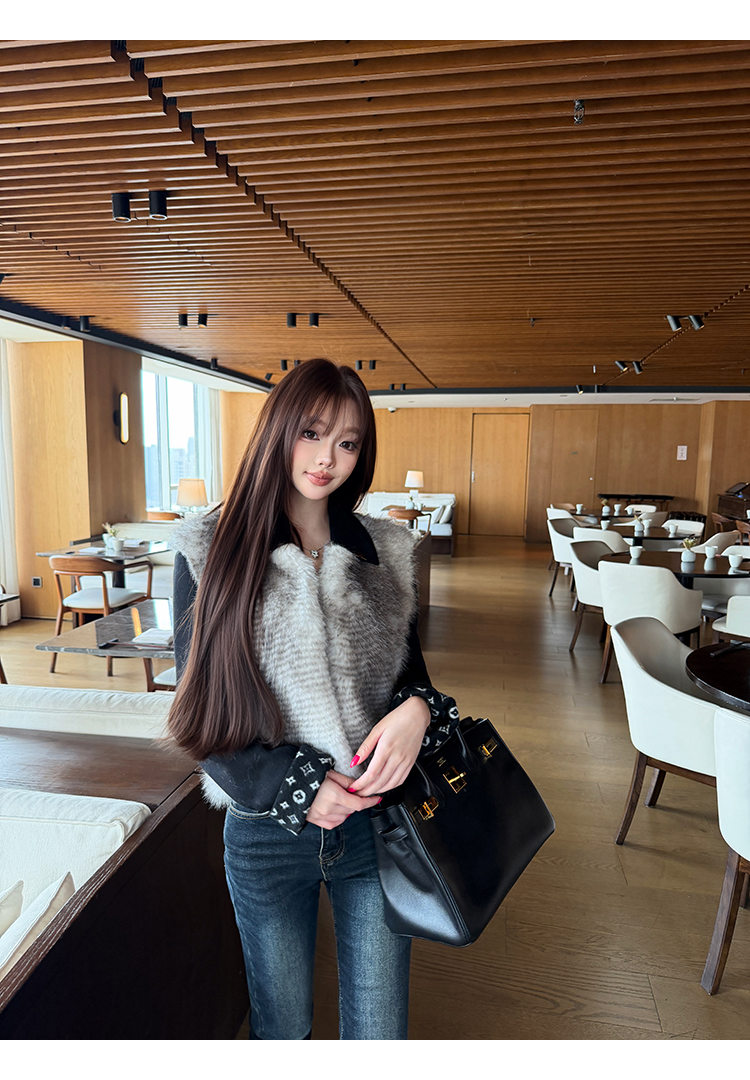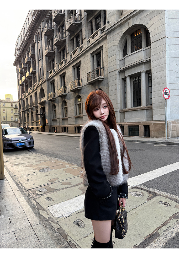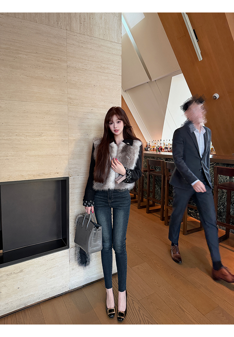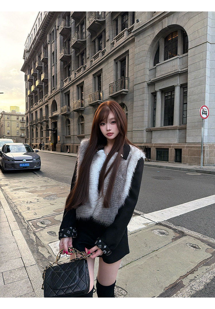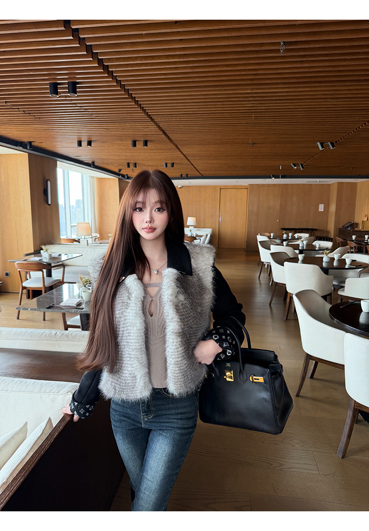 LINCHAOZHANG 【广岛之恋】LW250156 环保毛拼接外套