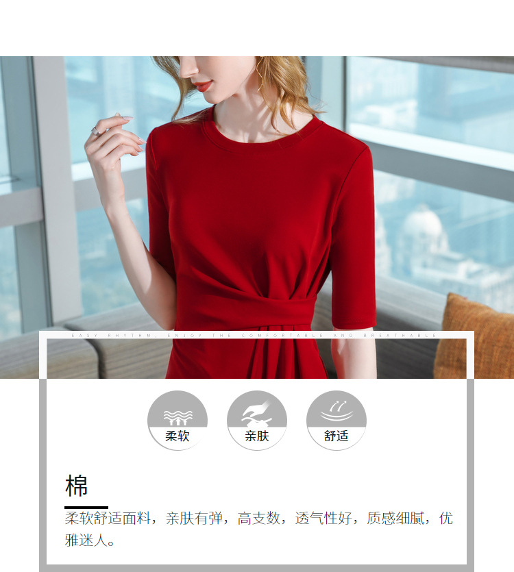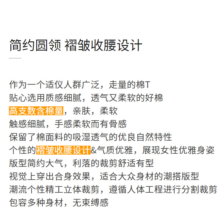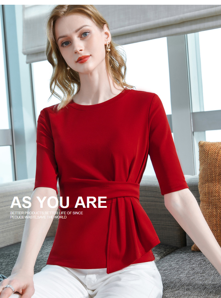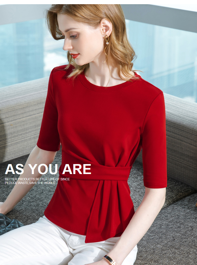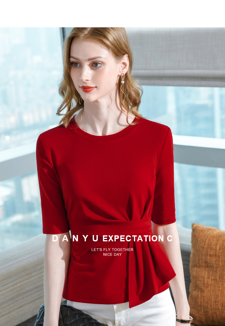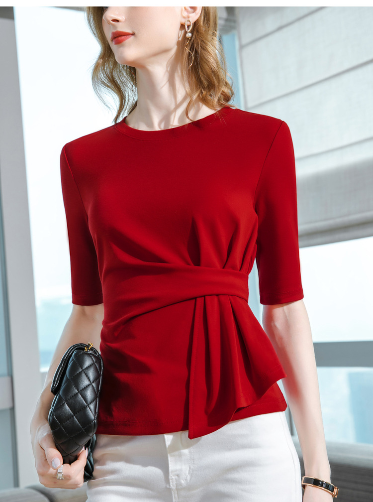 中袖t恤,纯色圆领半袖棉设计感收褶高级感上衣SG-T2X0409