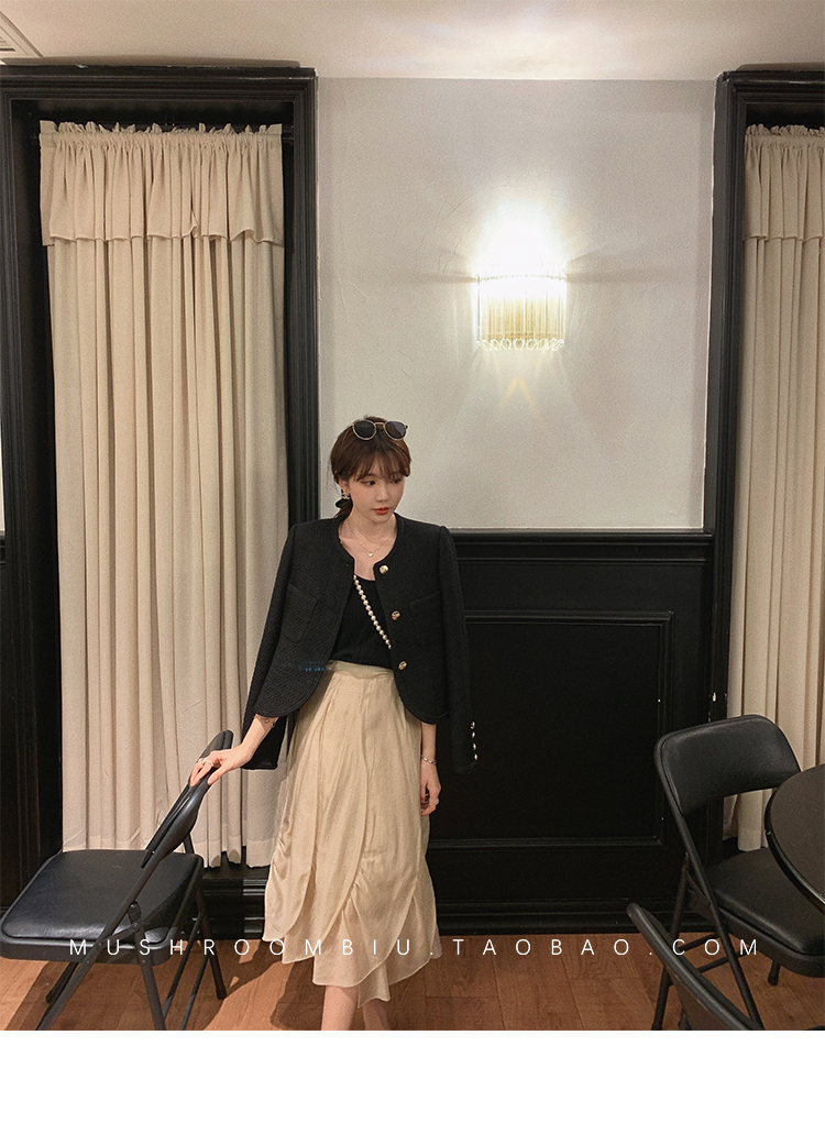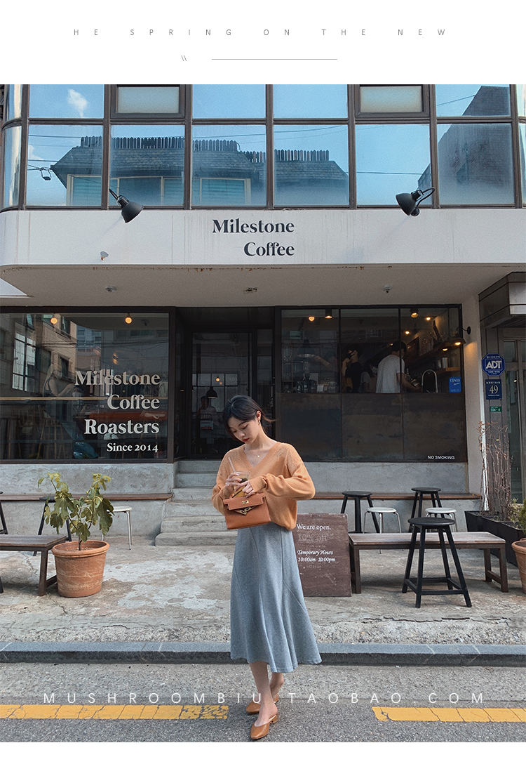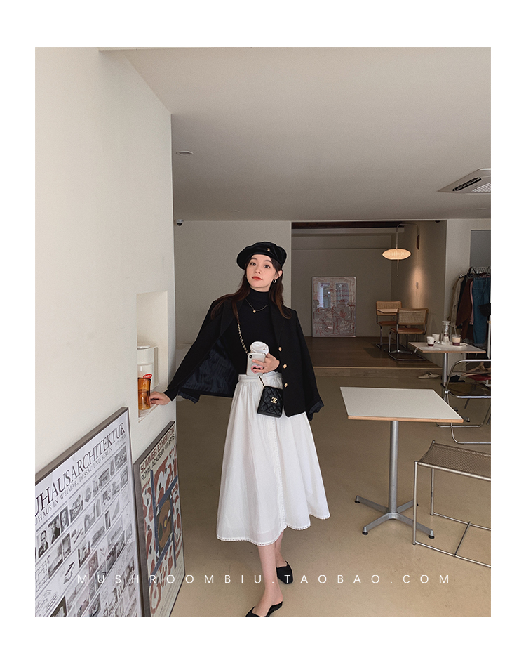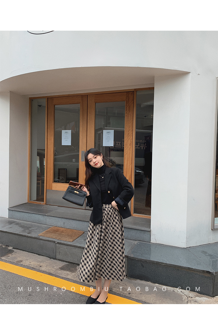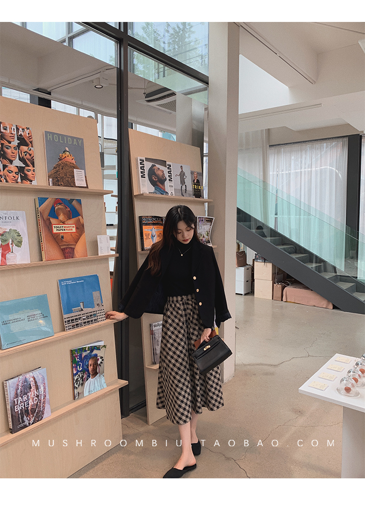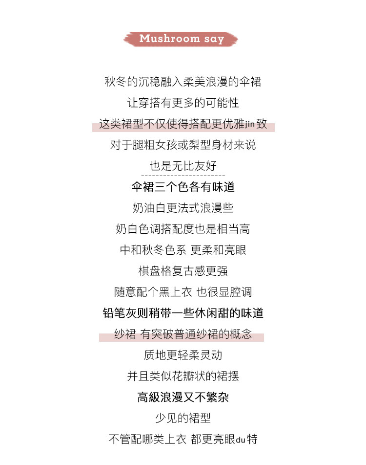 金蘑菇菇XS/S码【 请吃饭的漂亮姐姐】中长款秋装气质遮胯显瘦高腰伞裙