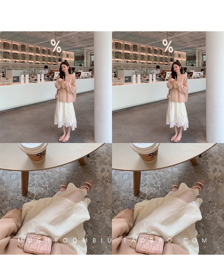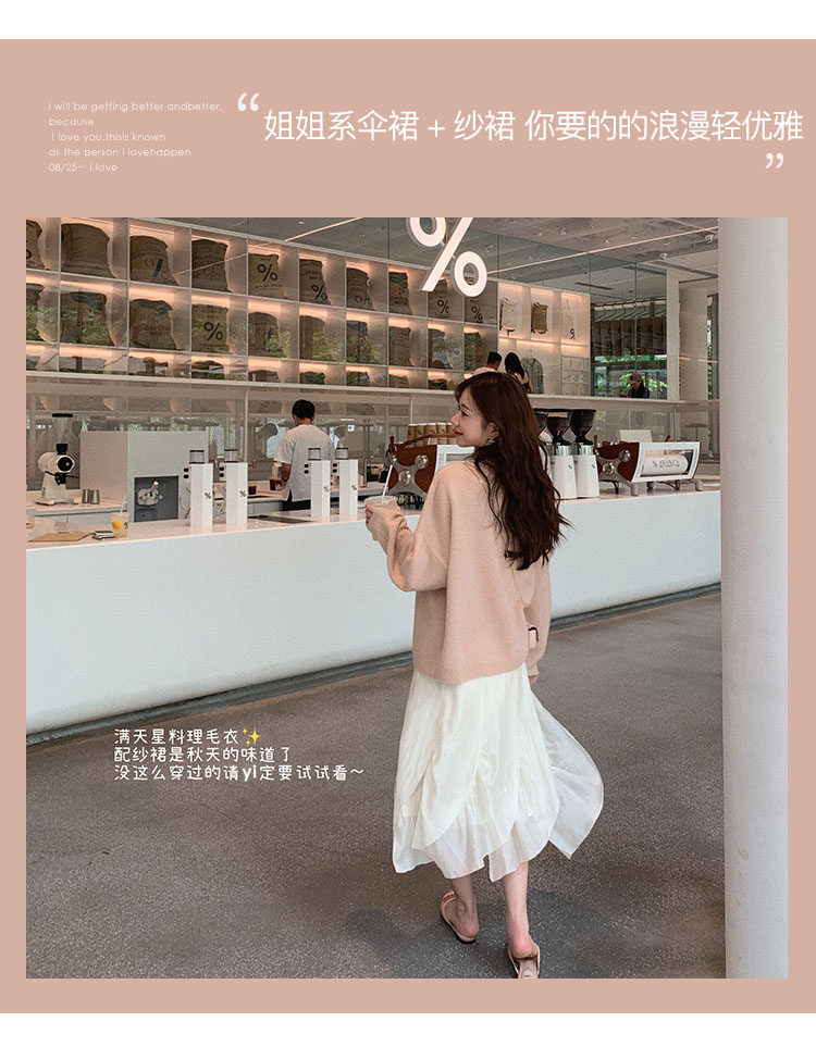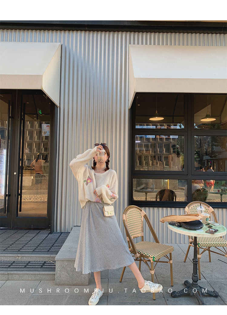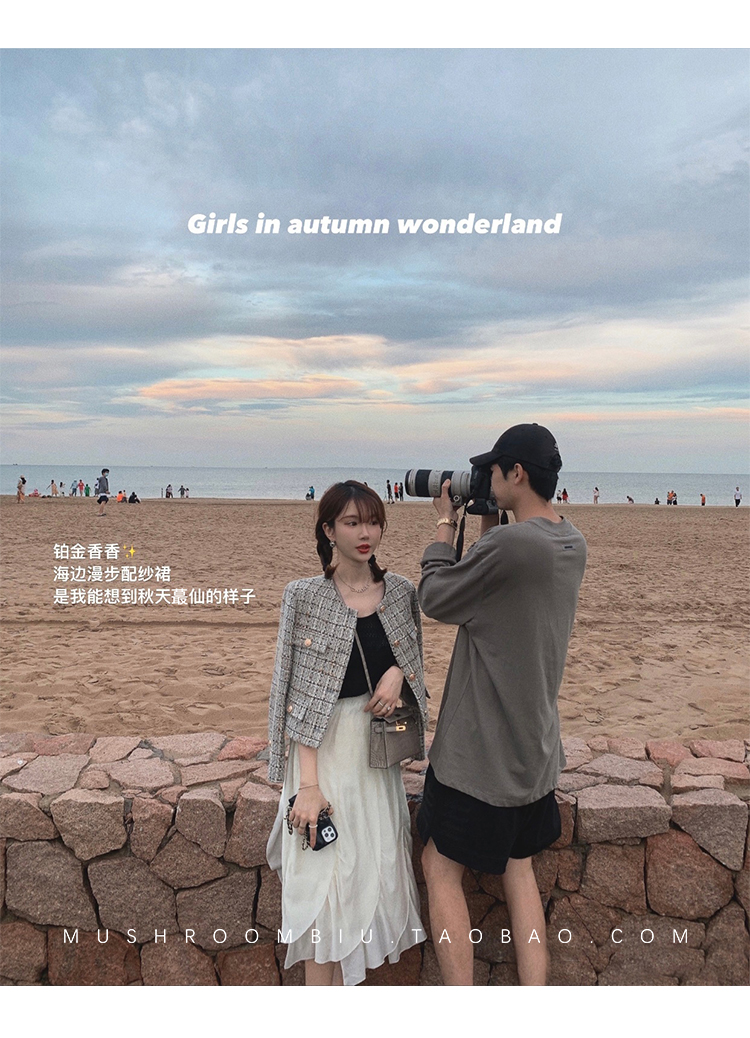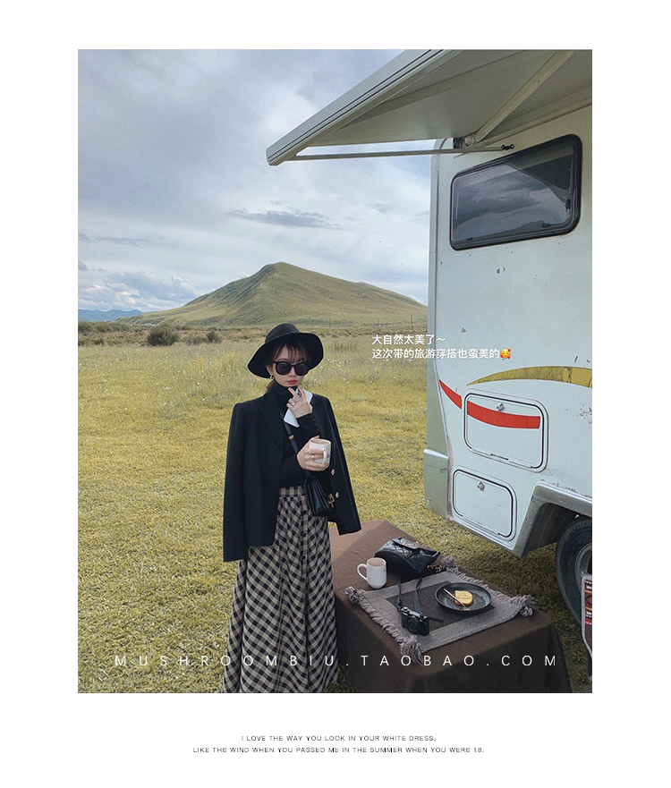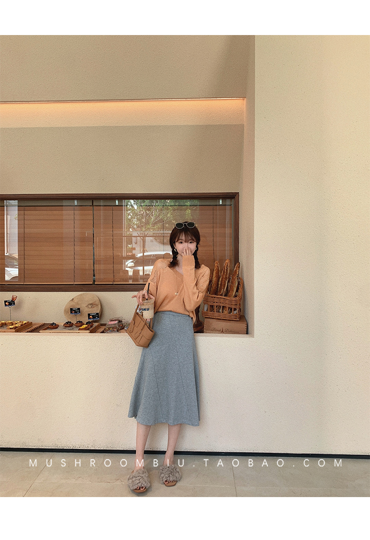 金蘑菇菇XS/S码【 请吃饭的漂亮姐姐】中长款秋装气质遮胯显瘦高腰伞裙