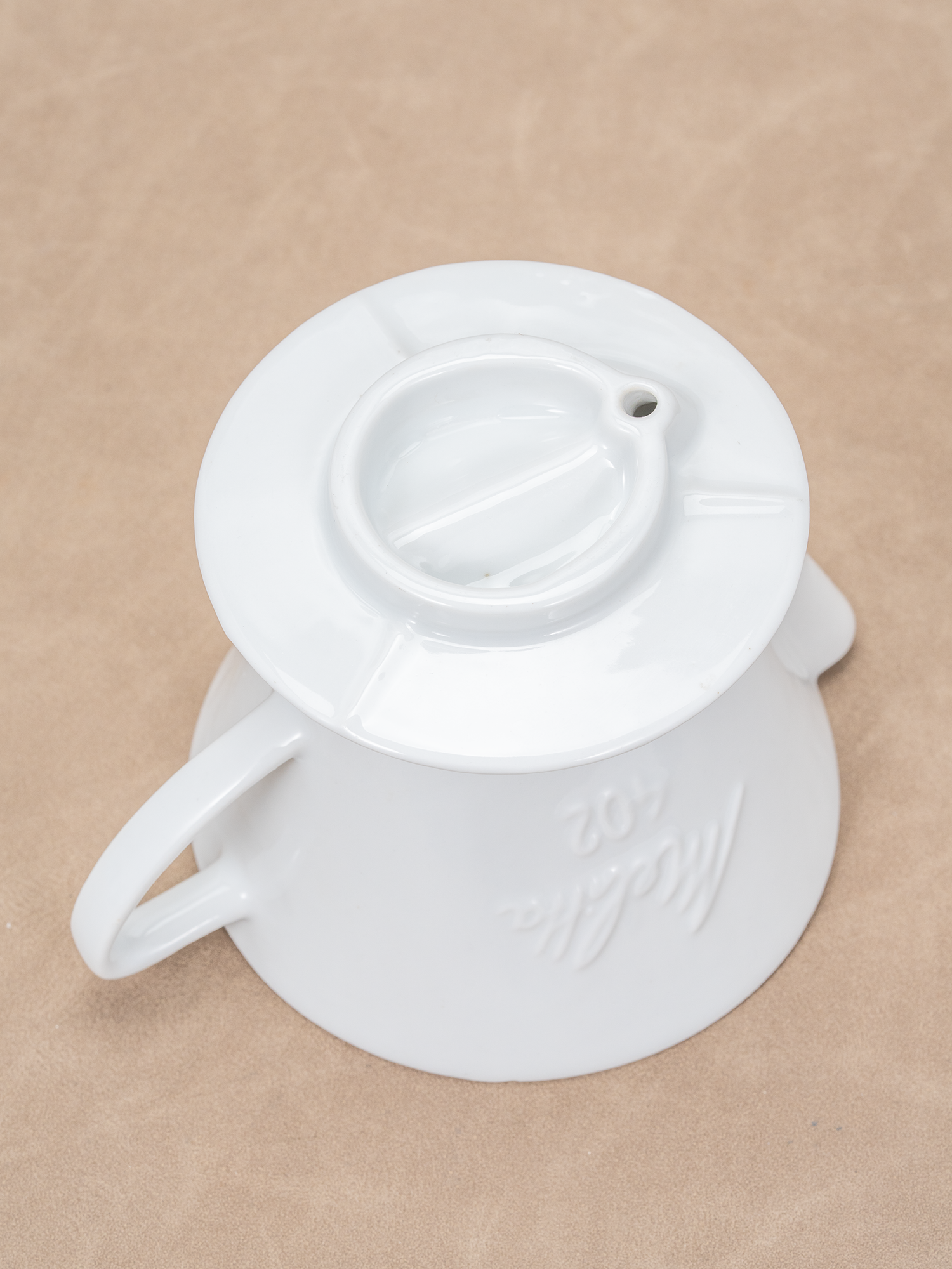 此款咖啡滤杯,为 Melitta 梯形陶瓷滤杯,生产于1960s 的德国,至今约65年历史,有正常使用痕迹,整体品相良好。