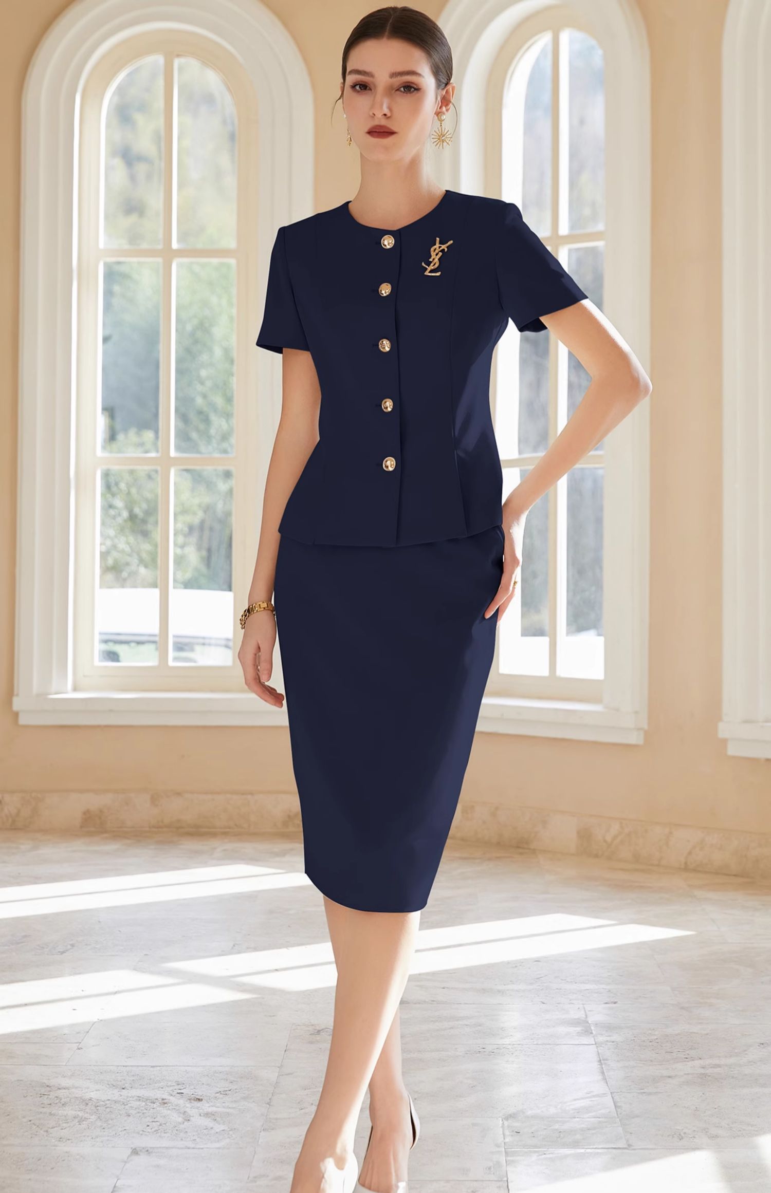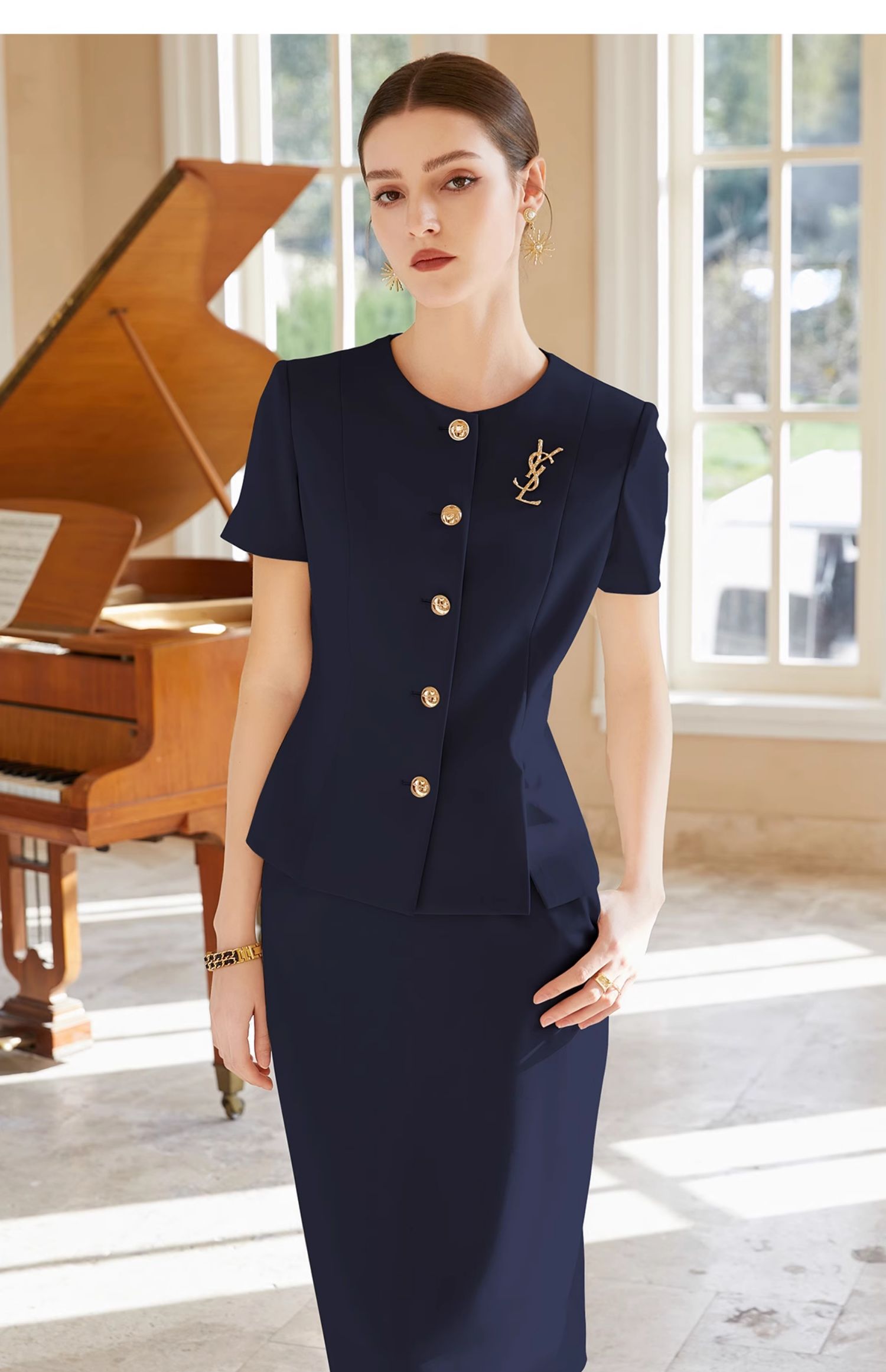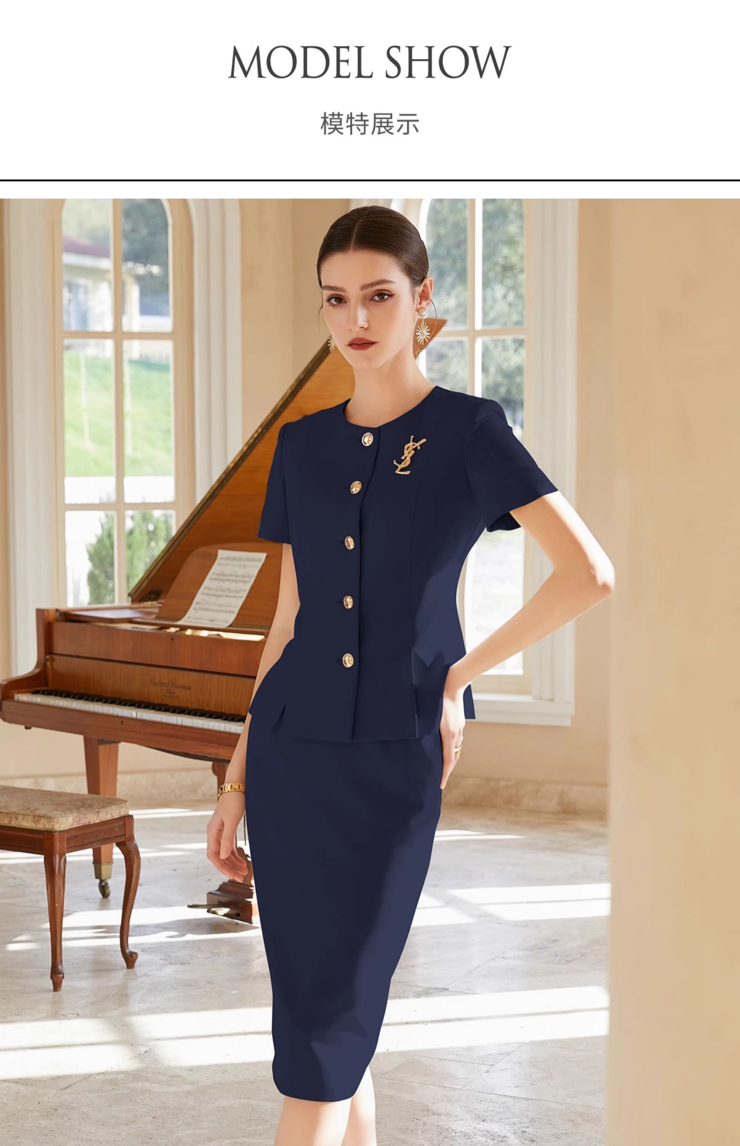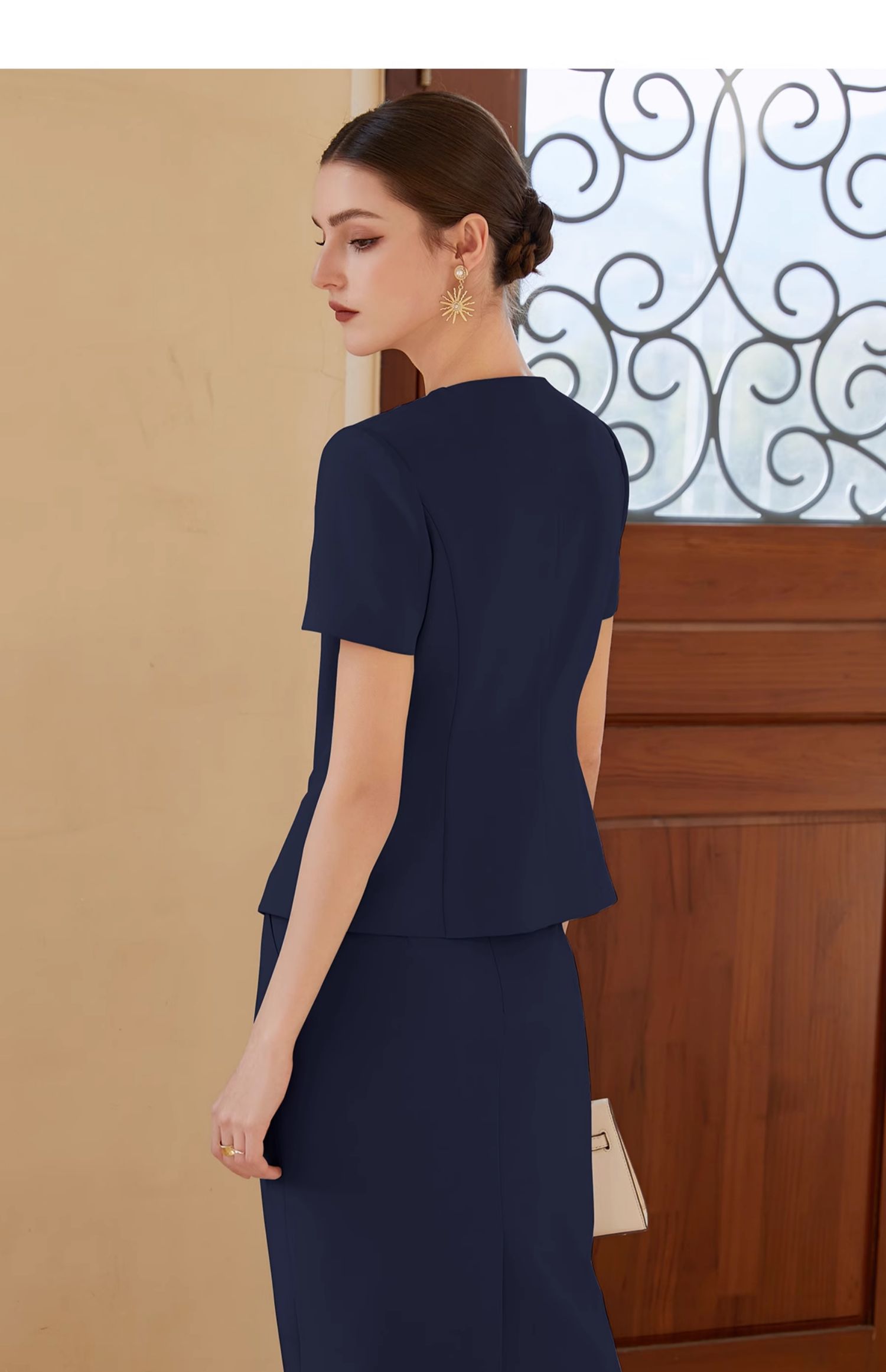 IWY/藏青色西装半裙女短袖售楼部工装气质干练酒店接待职业裙装CS1999