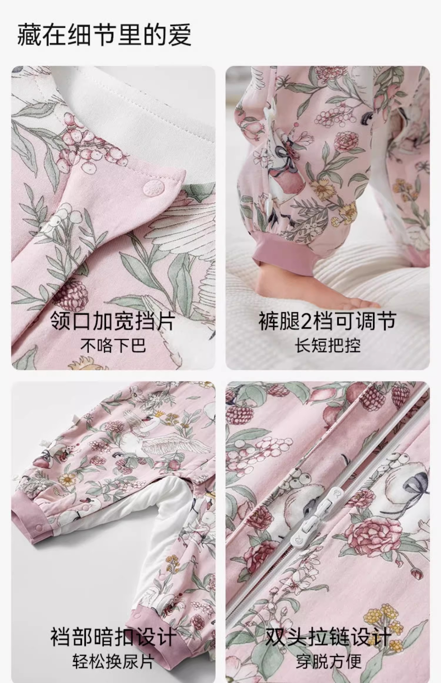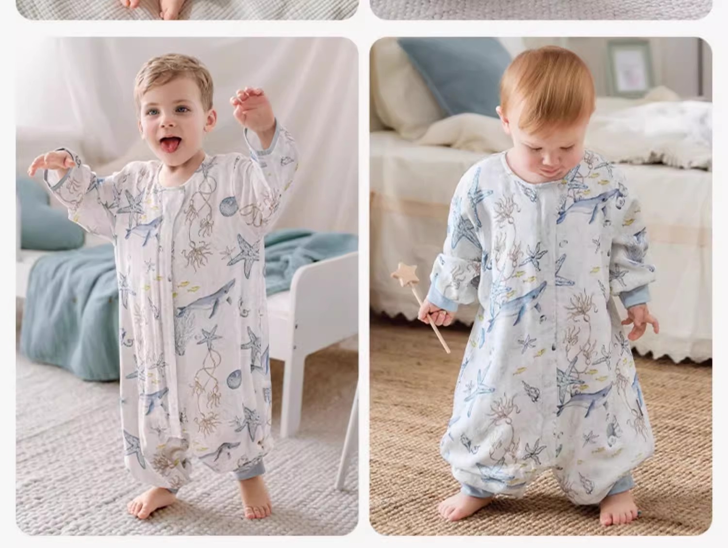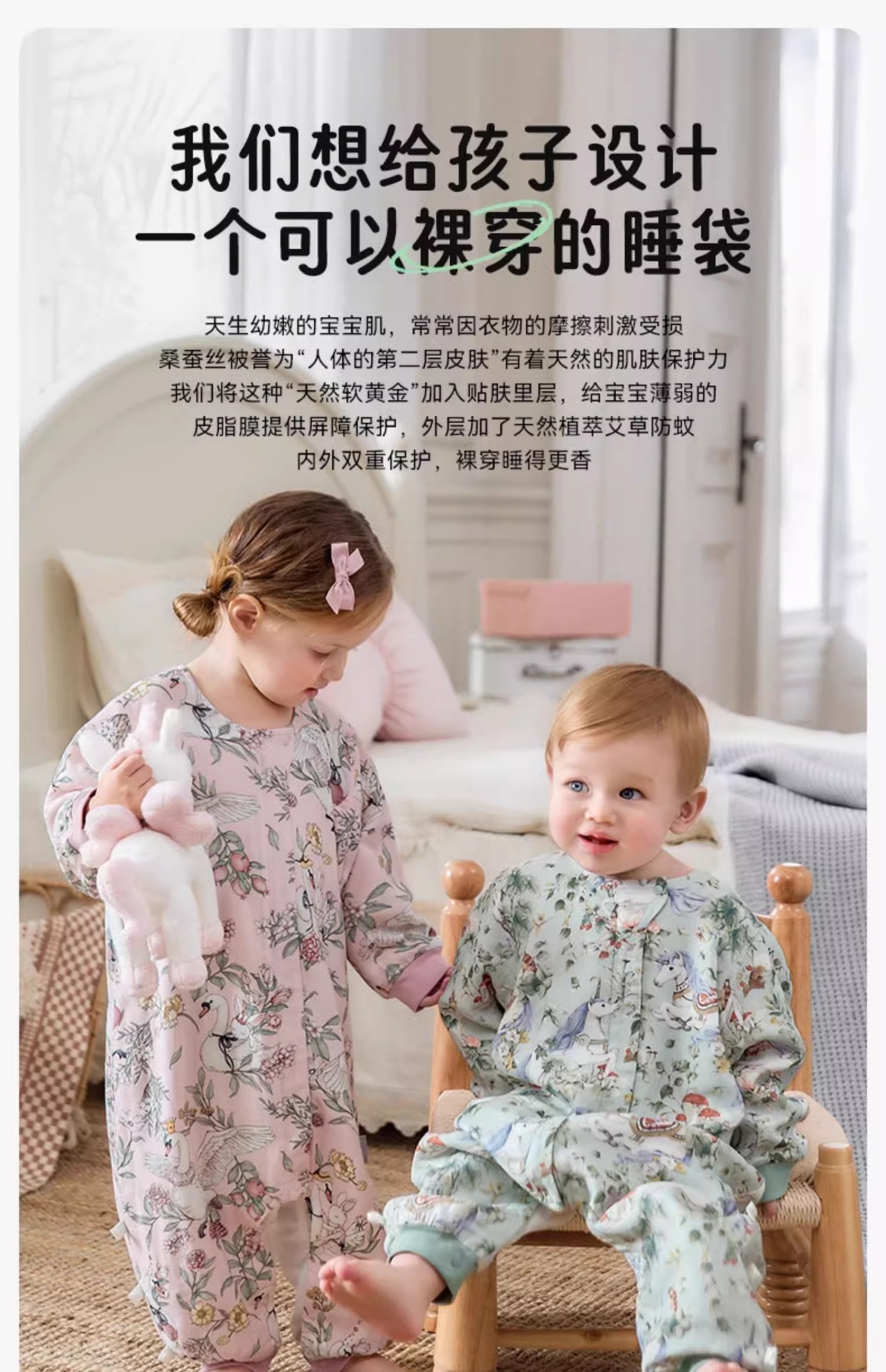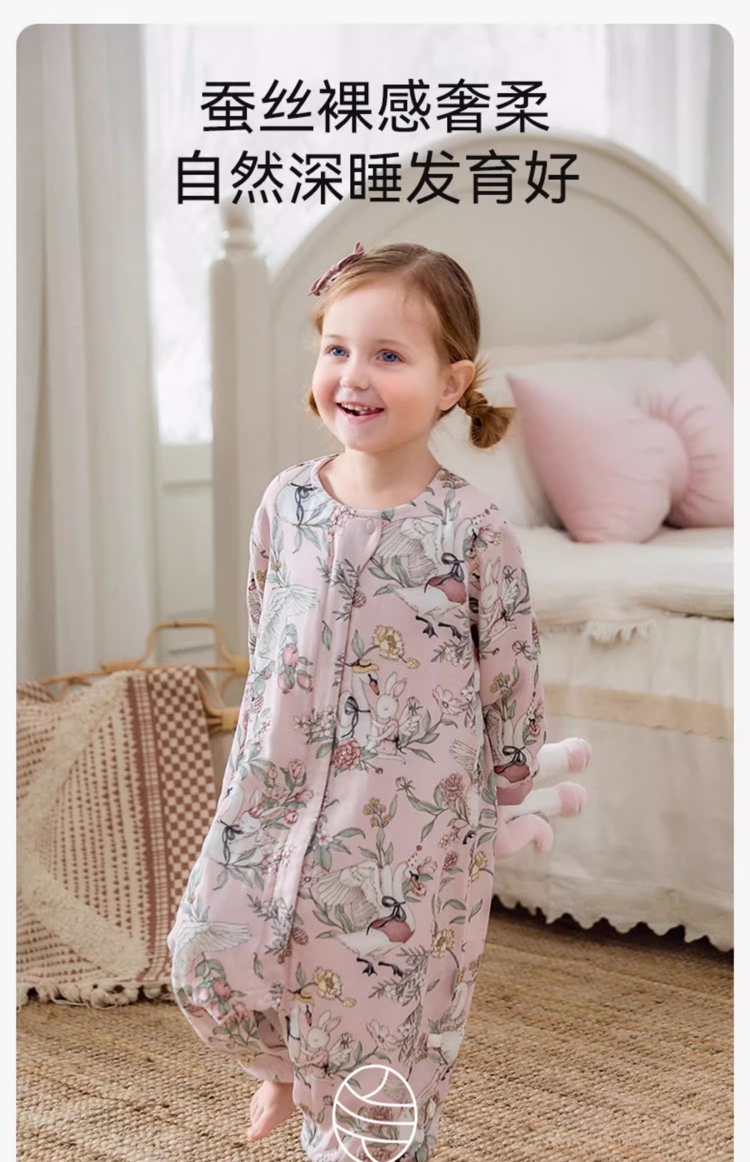 【季末清仓】EMXEE嫚熙婴童桑蚕丝长袖四层分腿睡袋