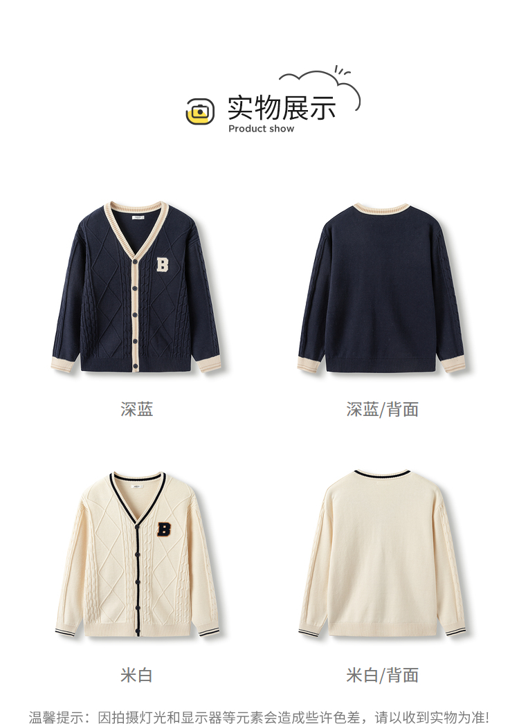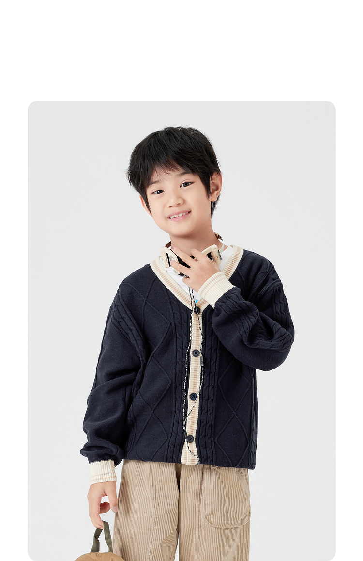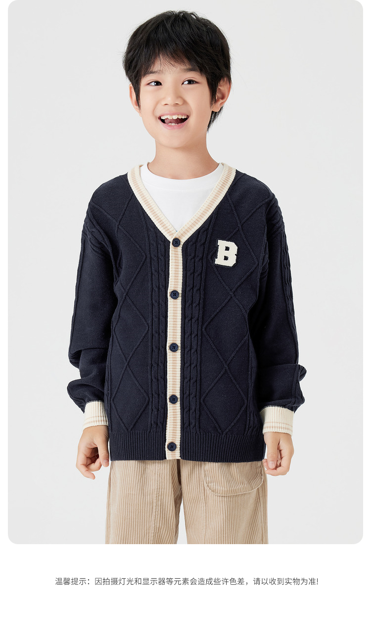 巴拉巴拉童装男童开衫毛衣儿童秋装学院风针织衫中大童百搭简约潮