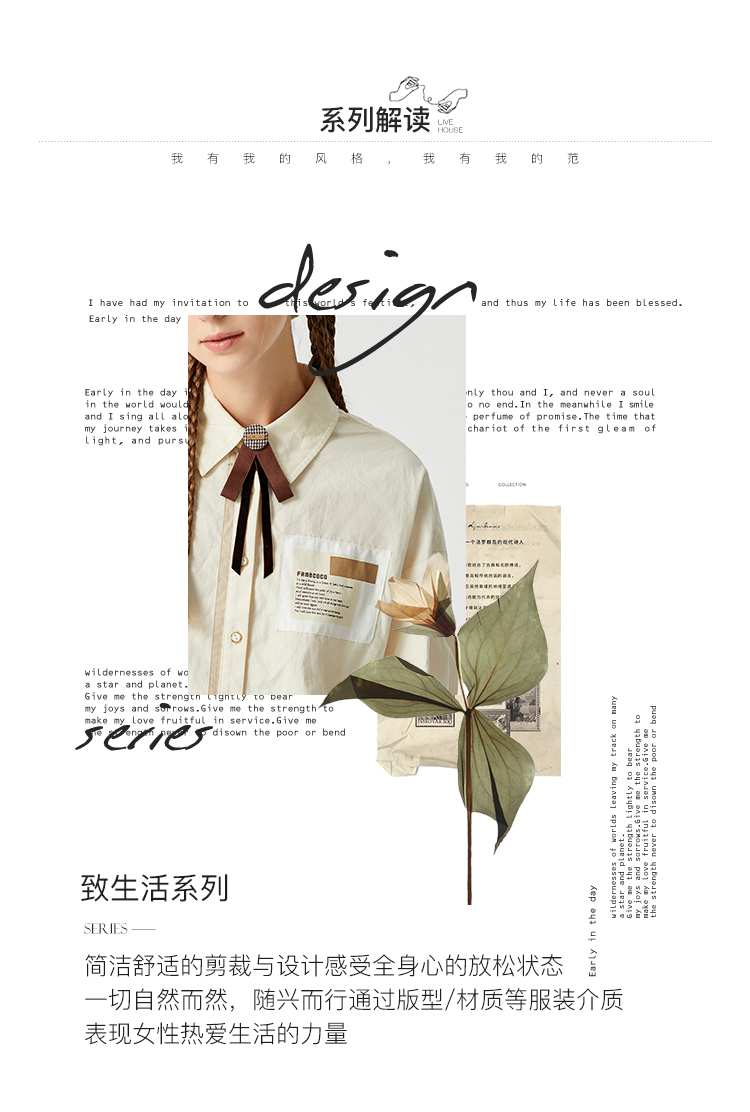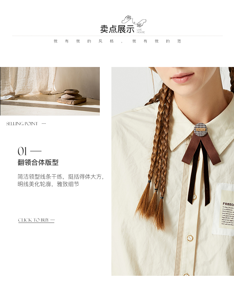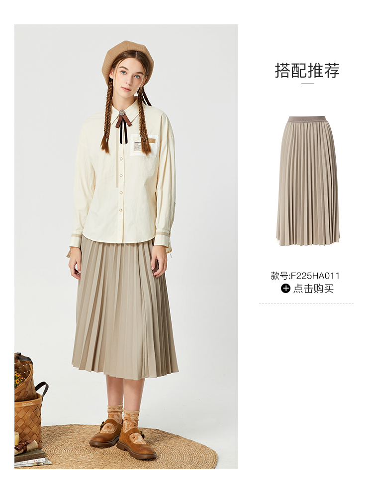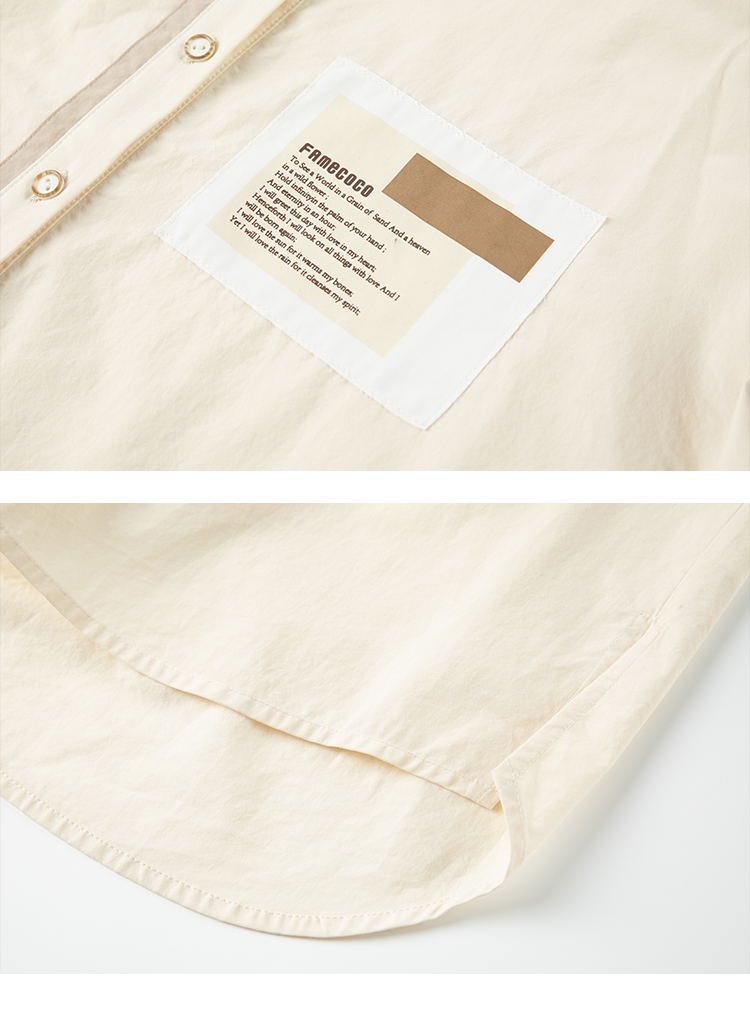 Famecoco范可儿贴布polo领衬衫女卡其色长袖早秋撞色拼接衬衣纯棉F225BH013